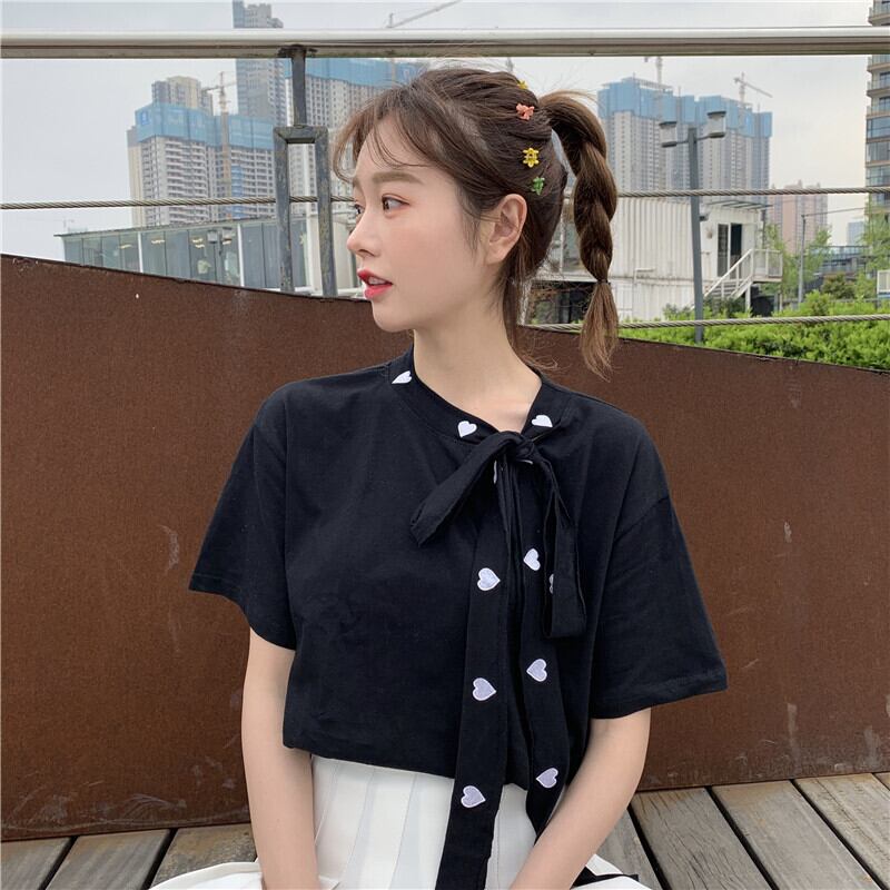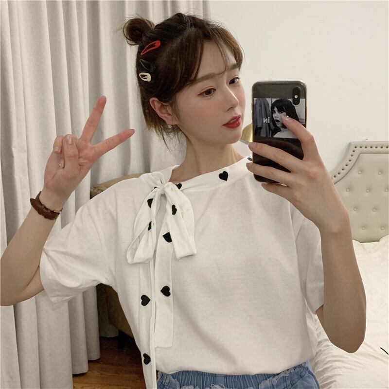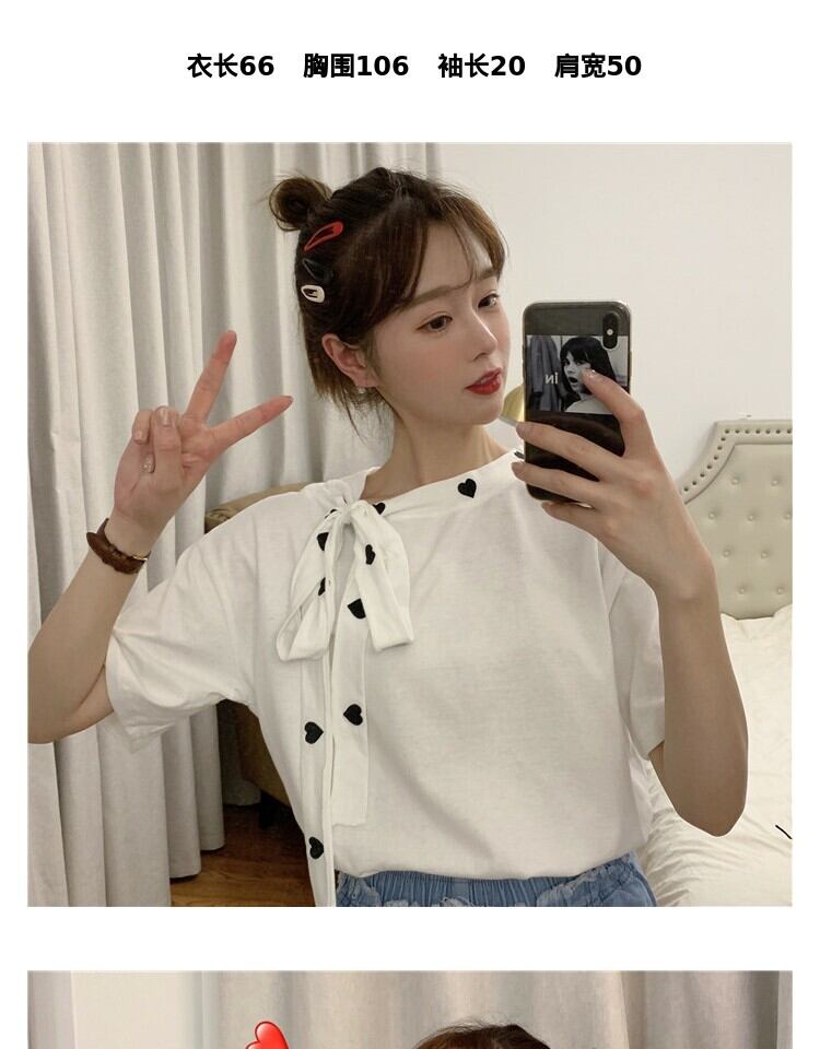 ホワイトTシャツ シャツ サマーレースルーズ薄手トップス レッド 刺繍 大人ガーリー スウィート キュート カジュアル 夏物 萌量不足37762197749