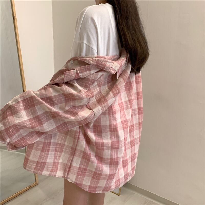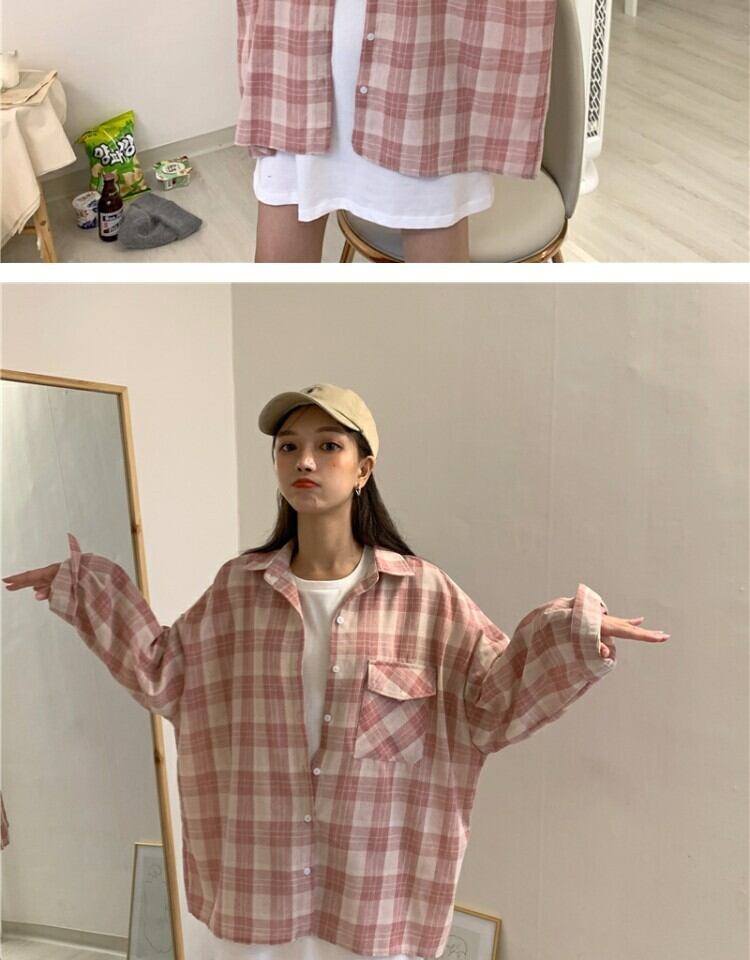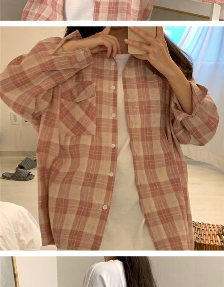 スプリングルーズ格子柄シャツ レッド 春物 萌量不足41240636775