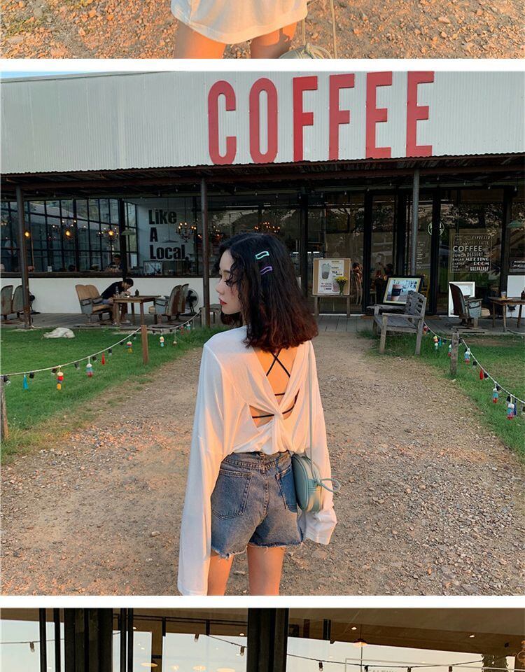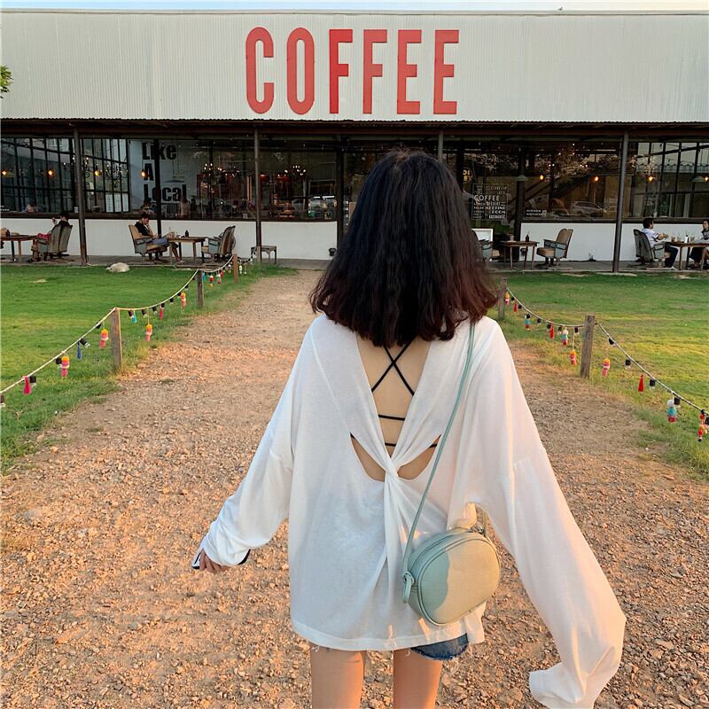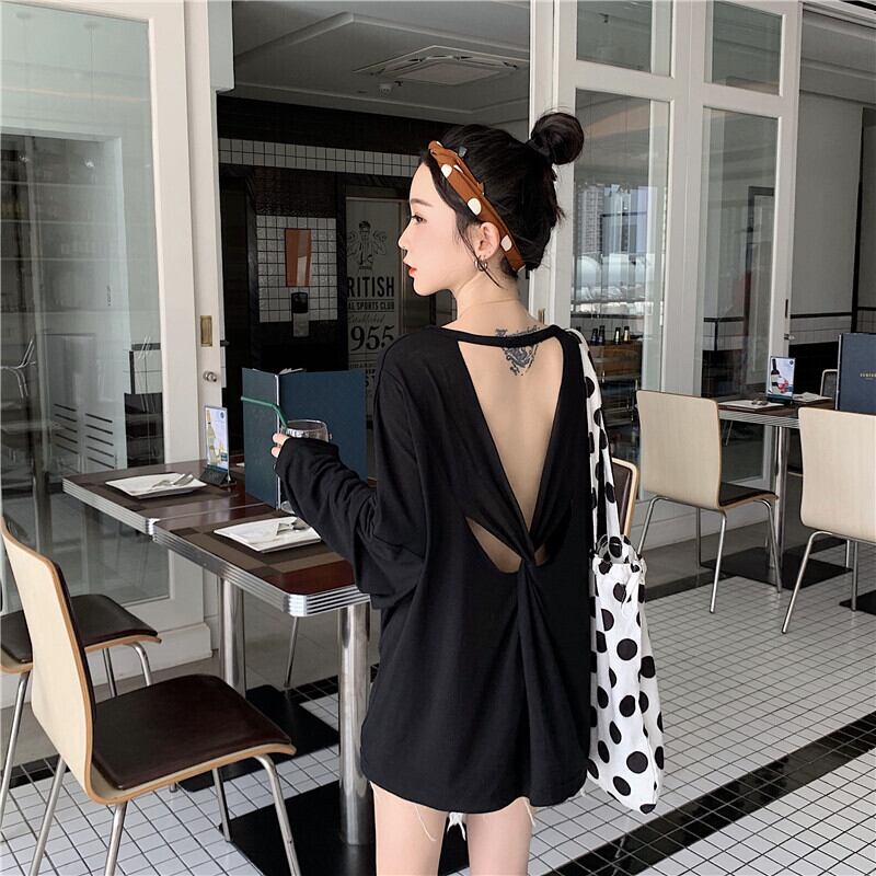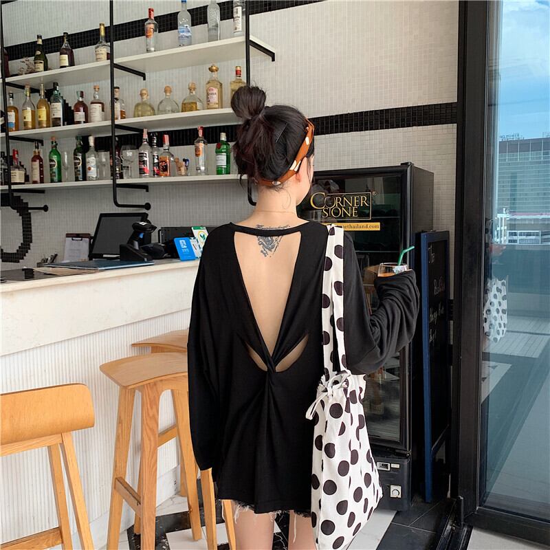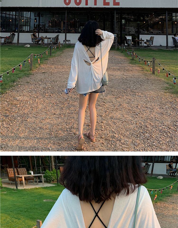 Tシャツ スプリングスタイルクロスバックホルタールーズ薄手トップス ロング 春物 萌量不足91938303181