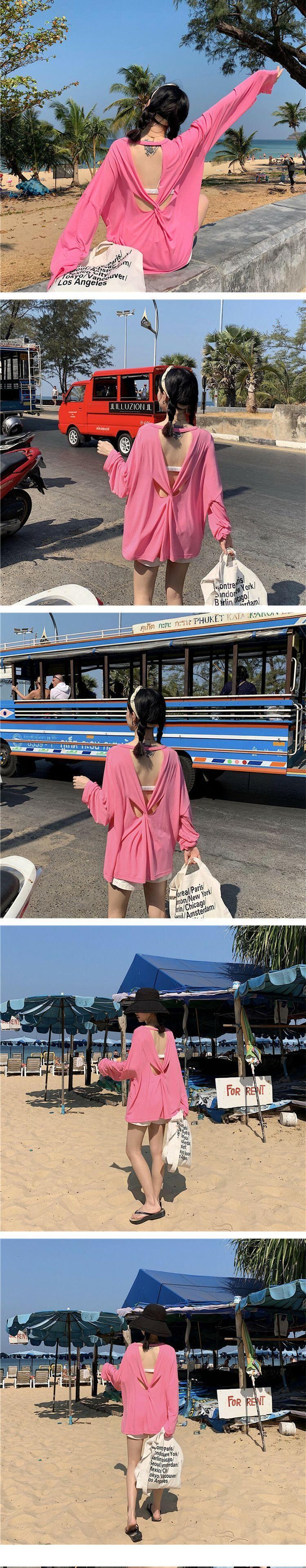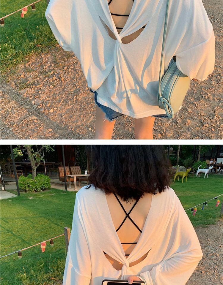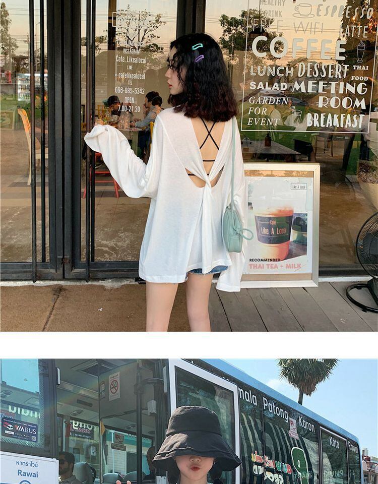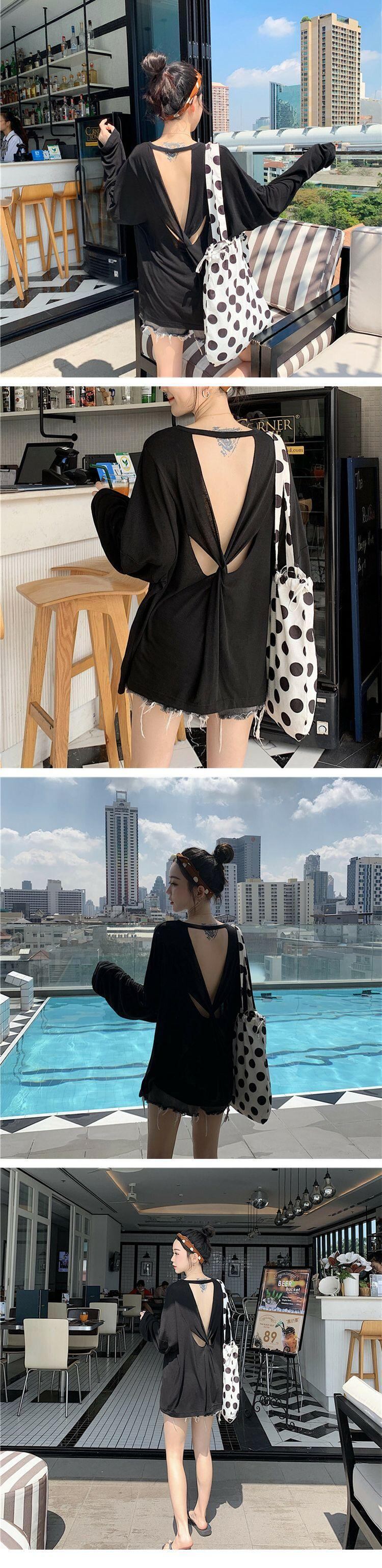 Tシャツ スプリングスタイルクロスバックホルタールーズ薄手トップス ロング 春物 萌量不足91938303181