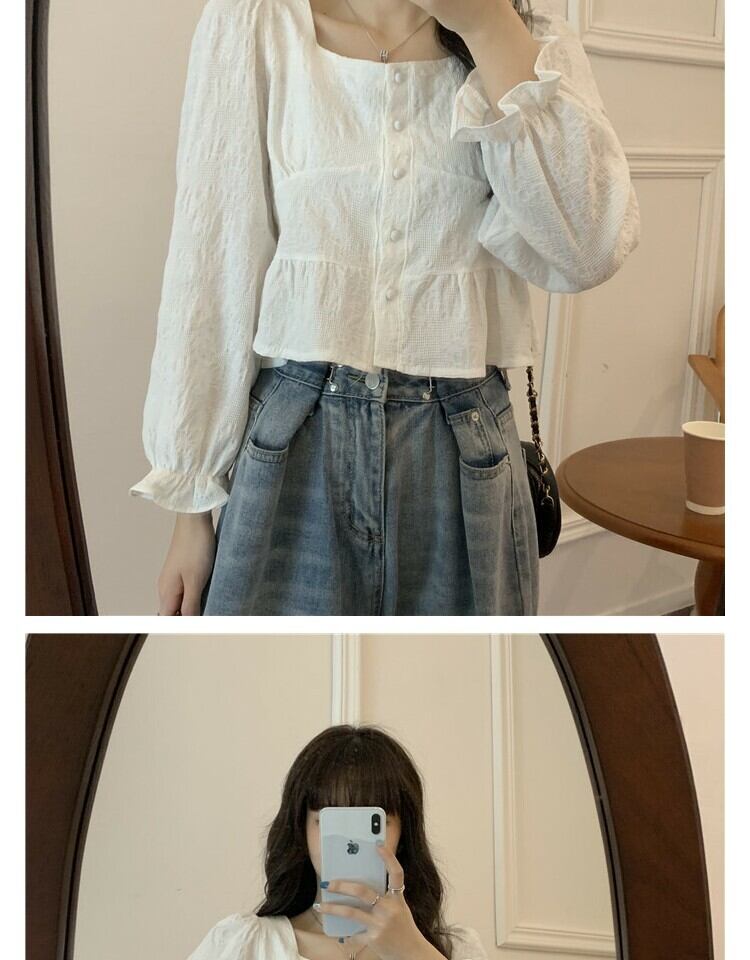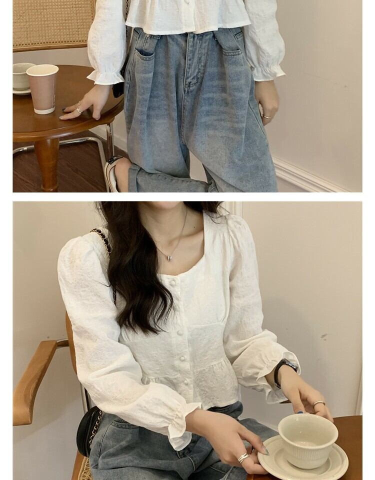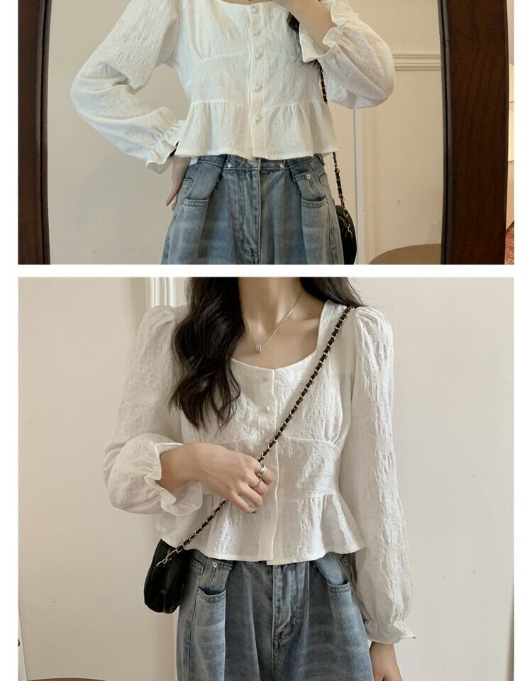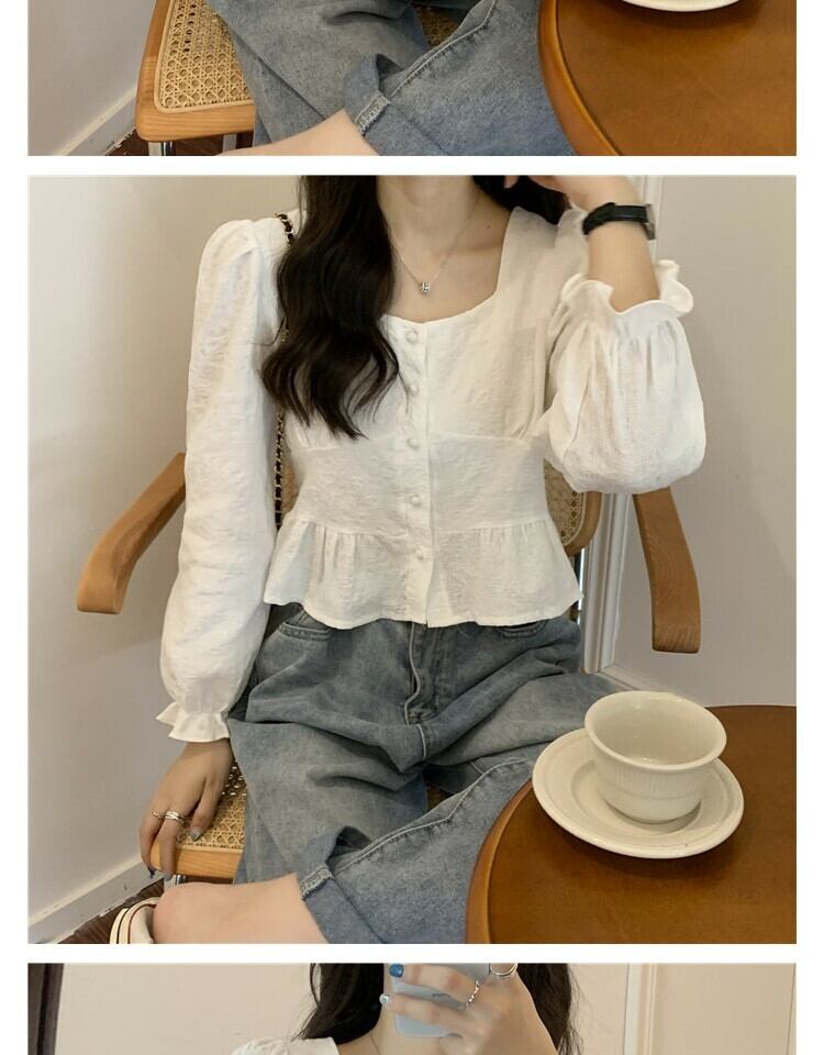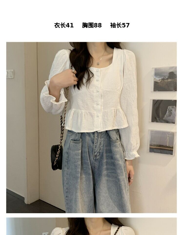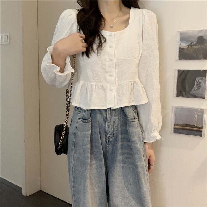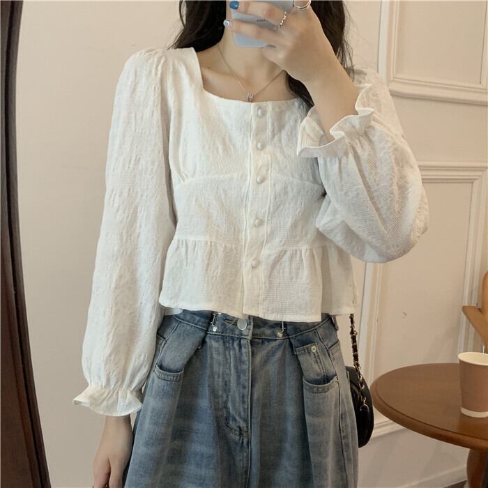 ホワイトシャツ スプリングカラーブラウス スリーブ 大人ガーリー スウィート キュート カジュアル 春物 スクウェア 萌量不足79977170516