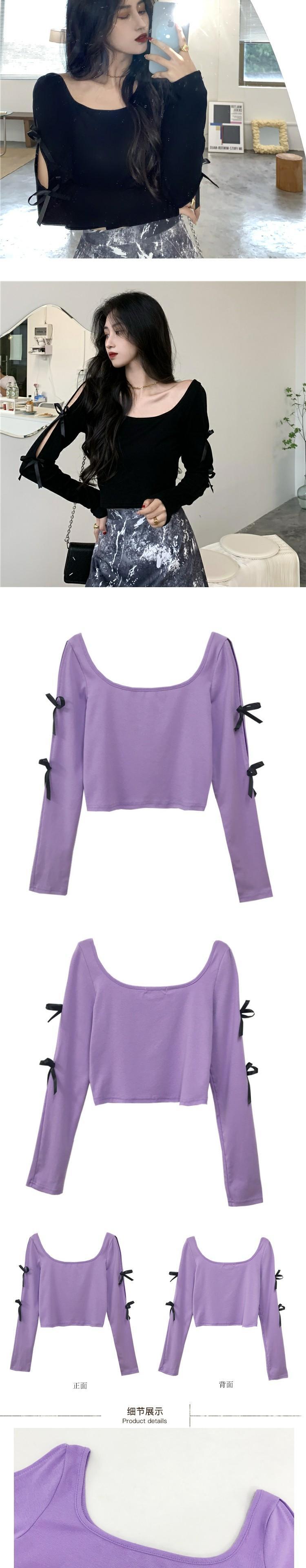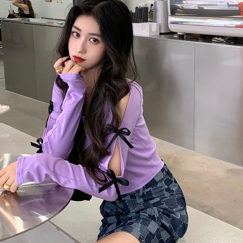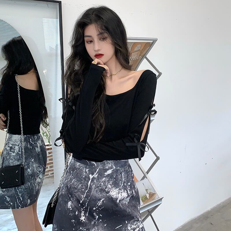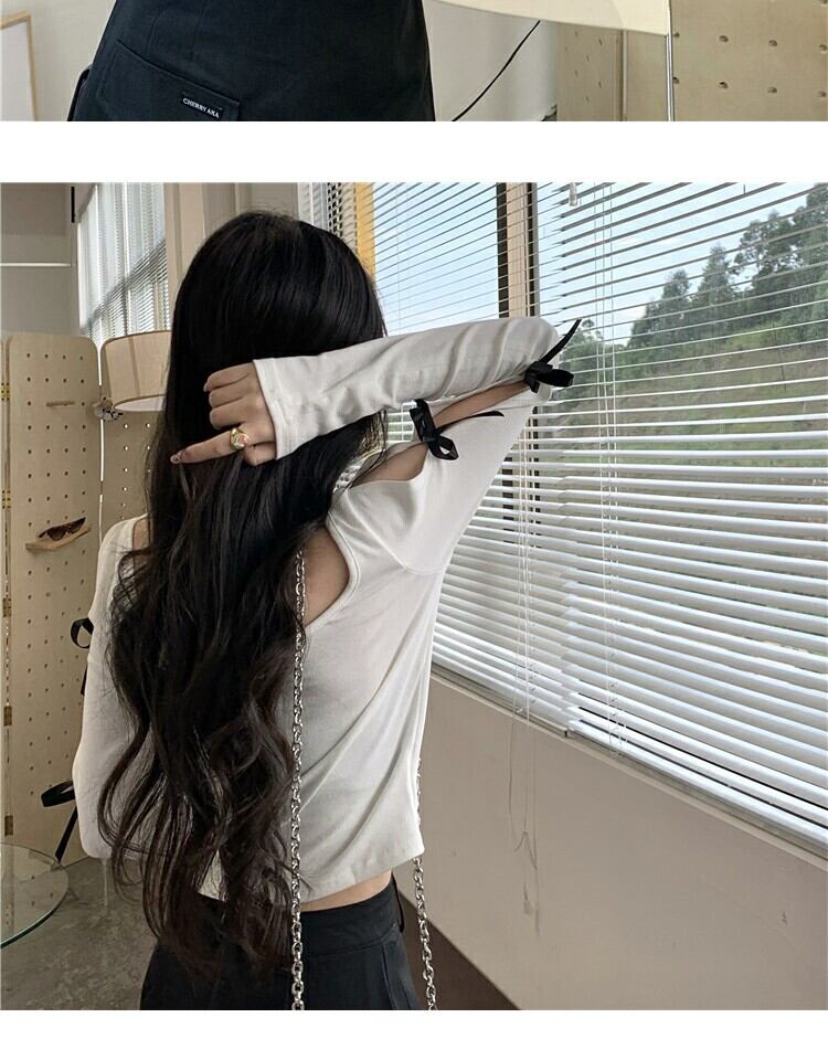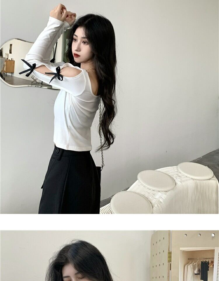リボンホワイトTシャツ シャツ レディーススプリングトップス ロング 春物 オフショルダー 萌量不足30140785125