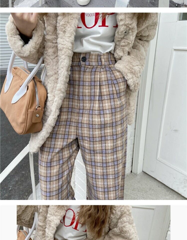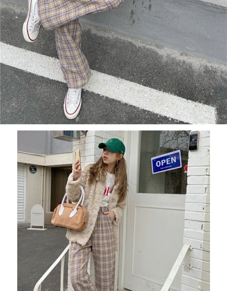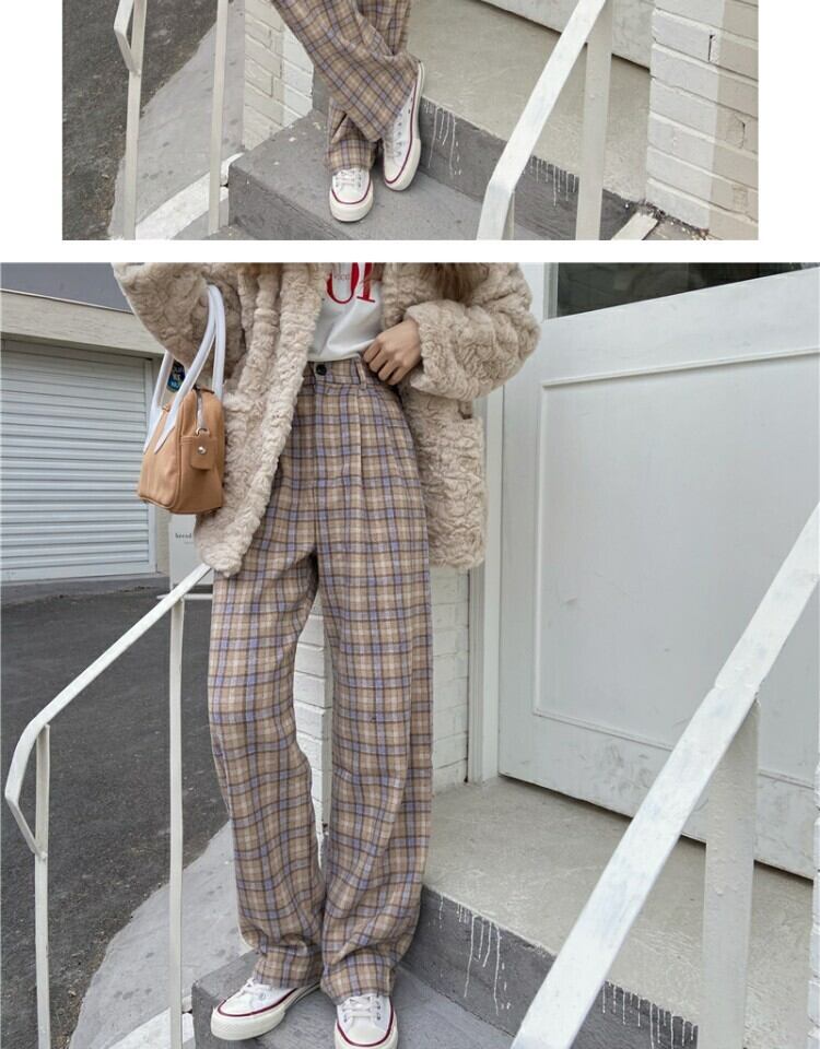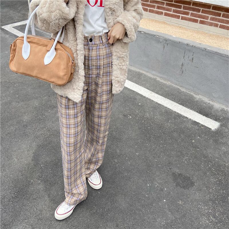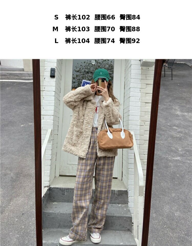 格子柄カジュアルパンツ スプリングハイウェスト薄手スタンダードスタイルスリム レトロ 春物 萌量不足74143470305