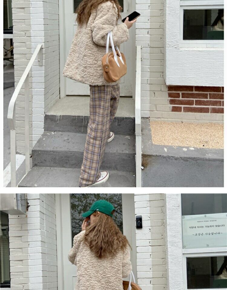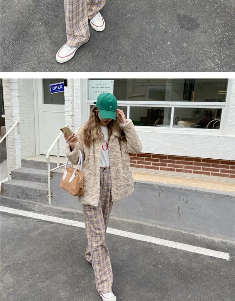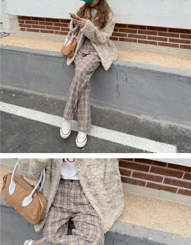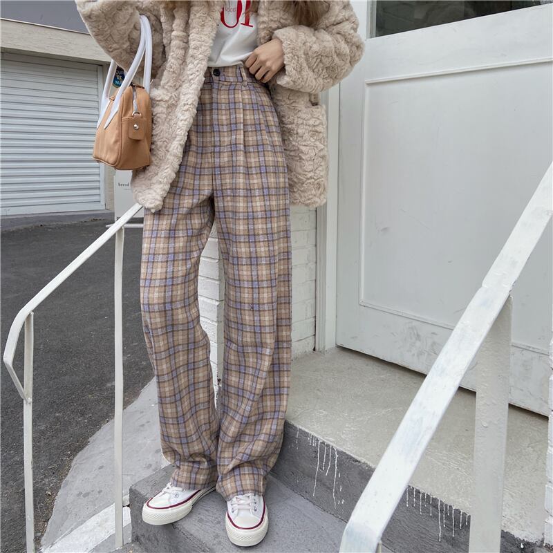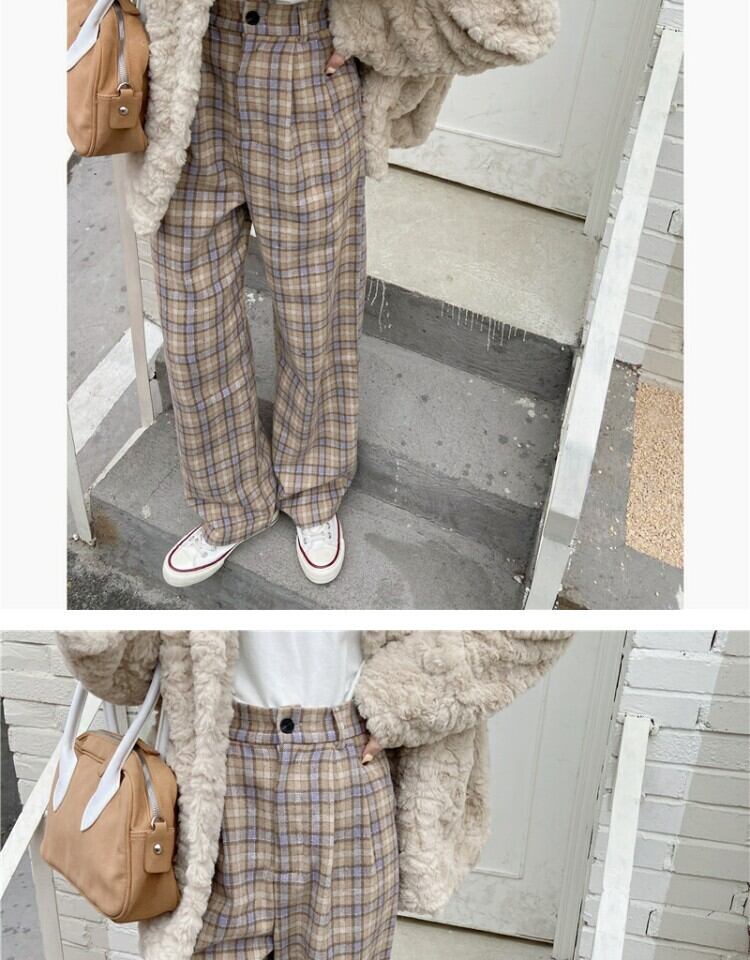 格子柄カジュアルパンツ スプリングハイウェスト薄手スタンダードスタイルスリム レトロ 春物 萌量不足74143470305