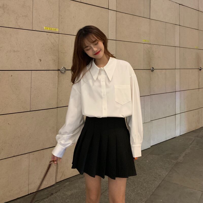 スタイルホワイトシャツ ルーズスプリングトップス ロング 春物 萌量不足42983774791