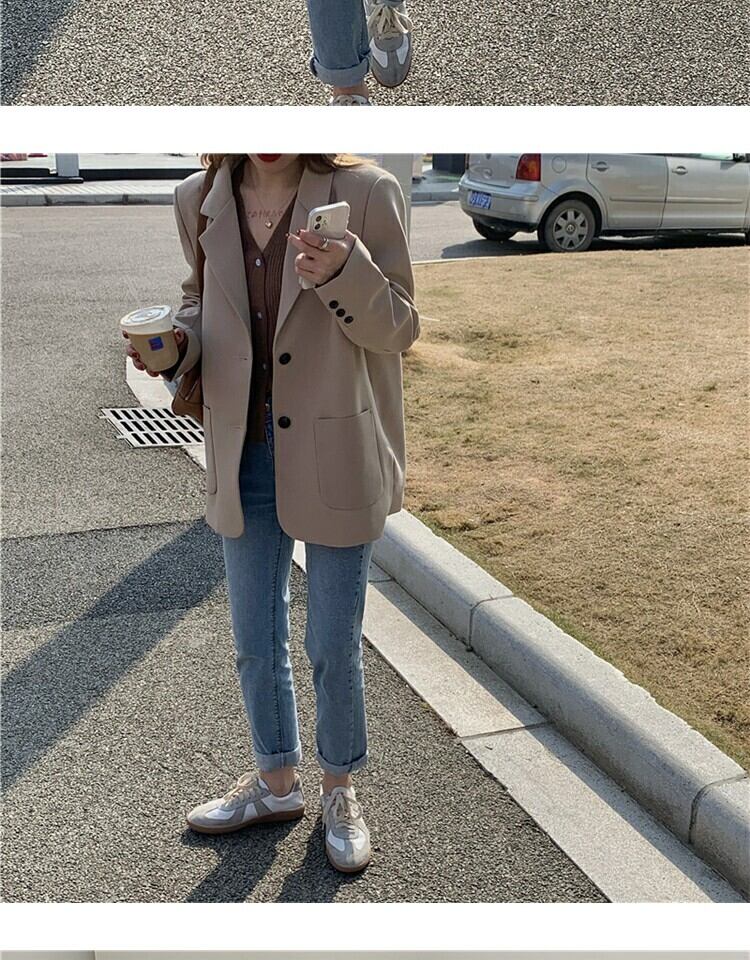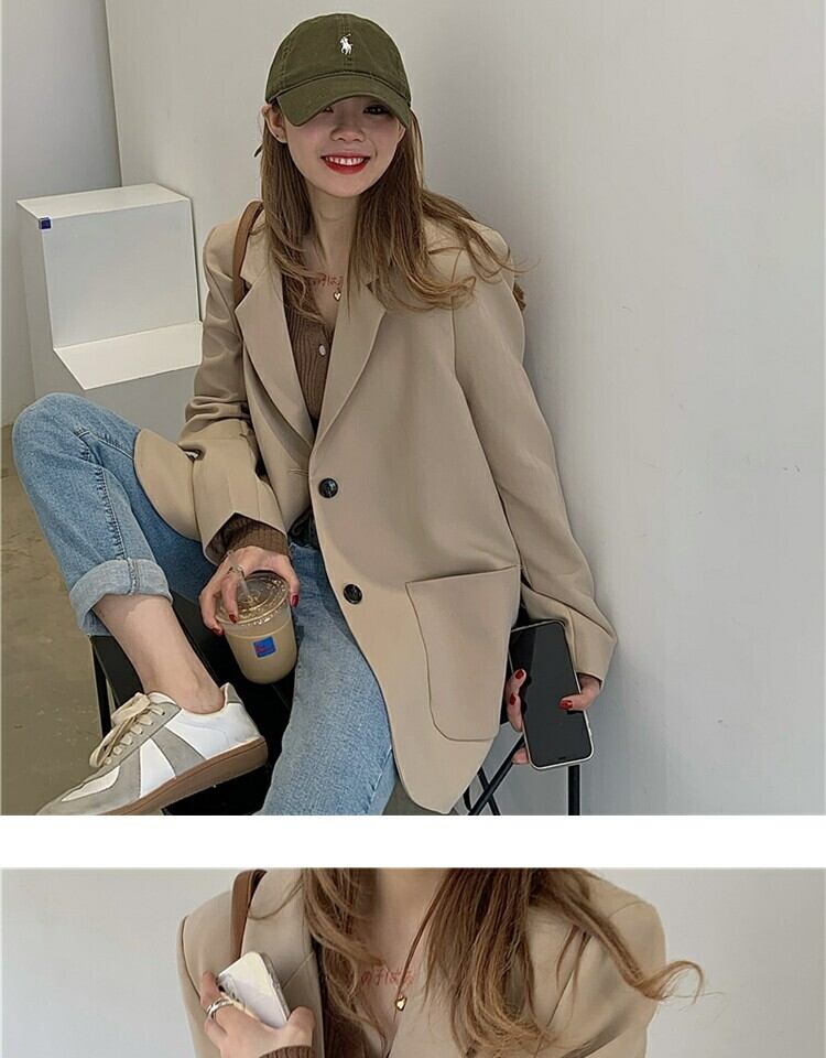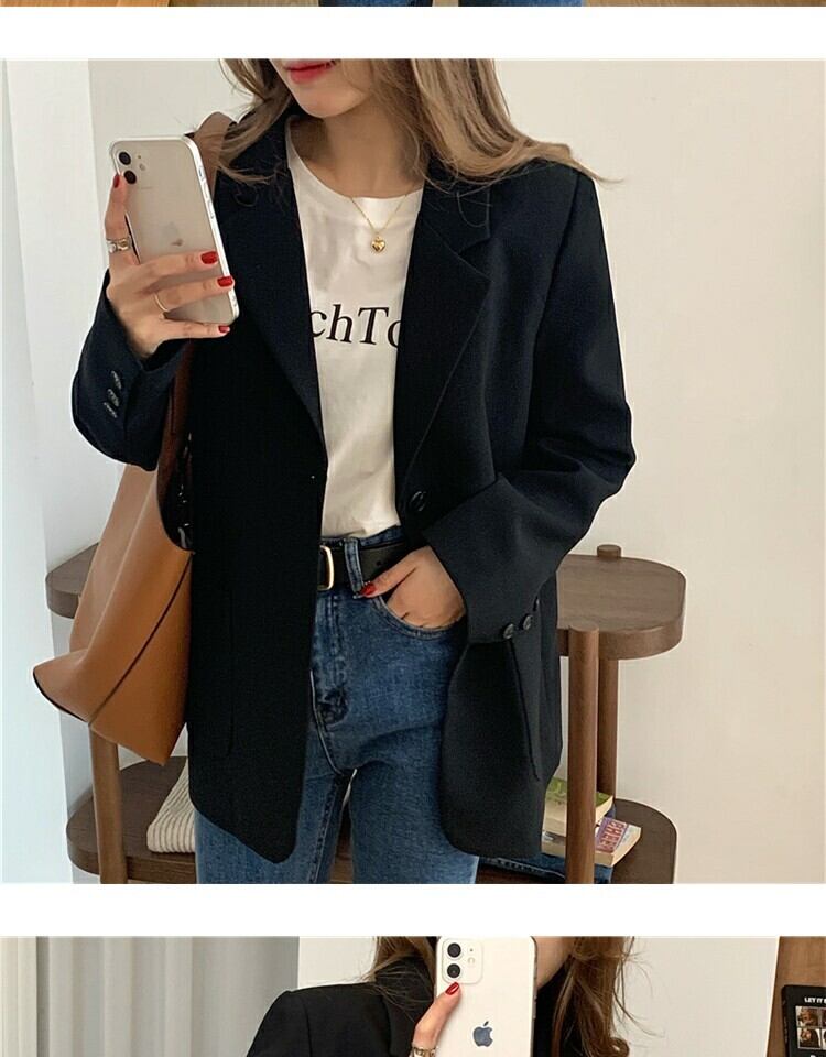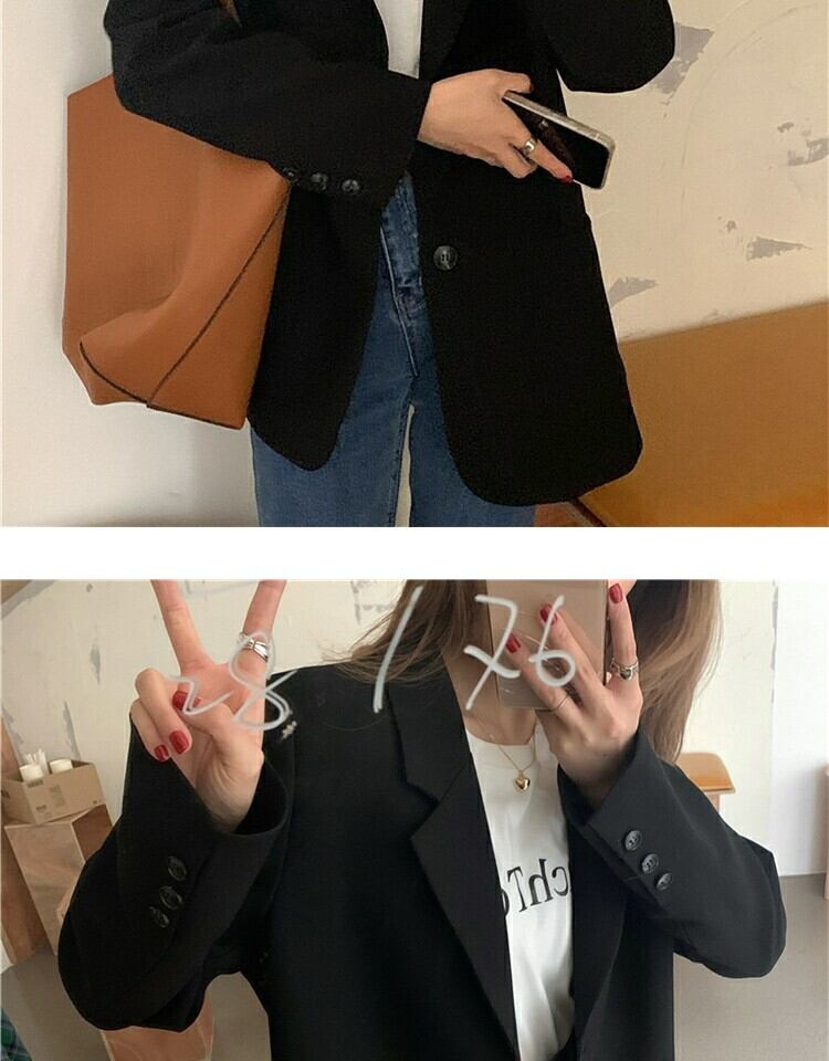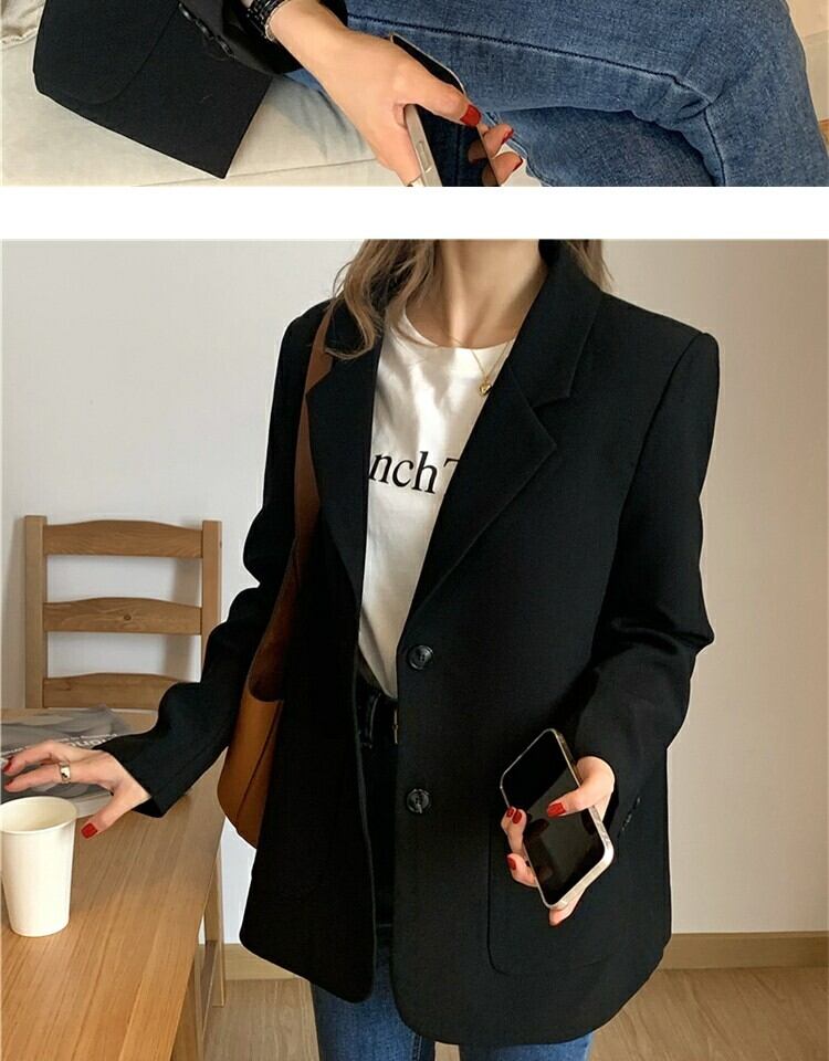 ブラックジャケット スプリングスタンダードスタイルルーズトップス ロング レトロ 春物 萌量不足16849473932
