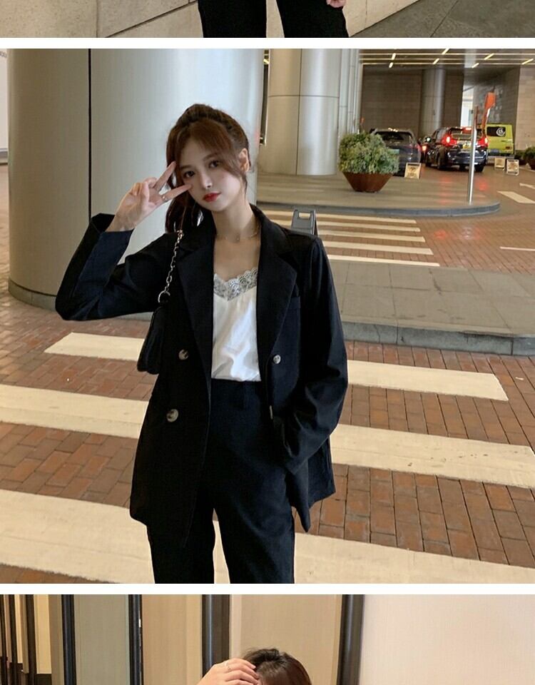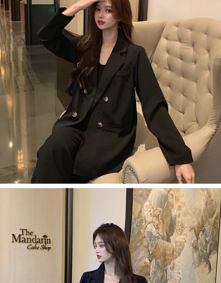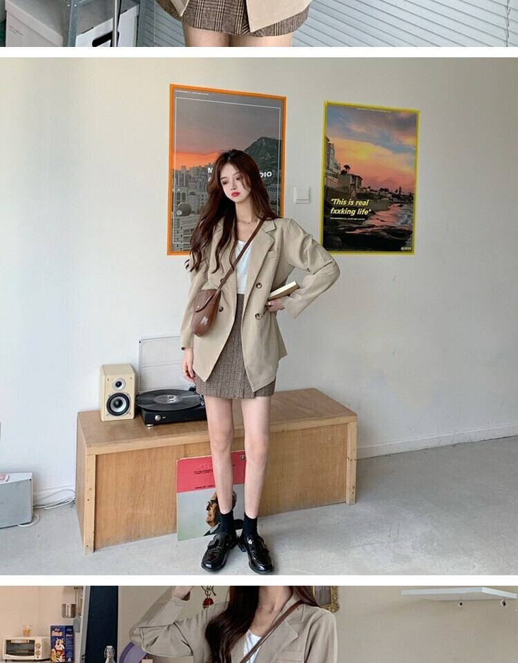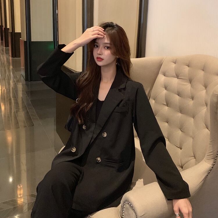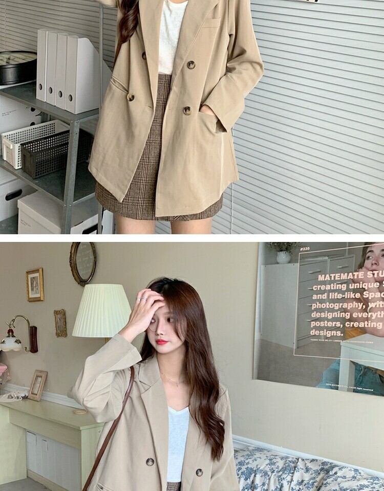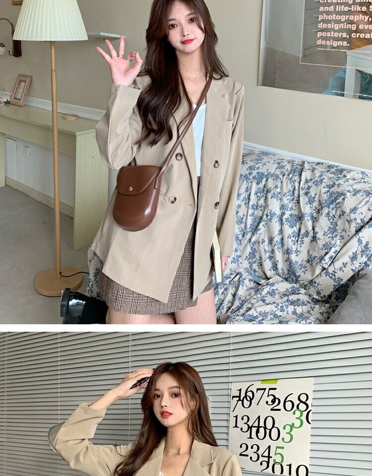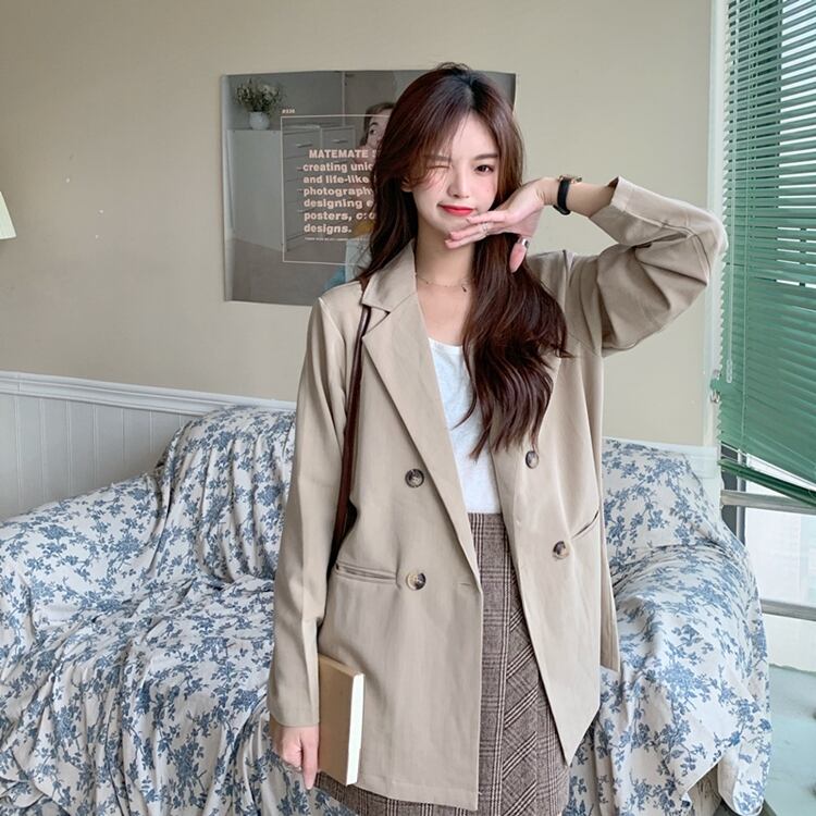 スタイルソリッド カラーダブルブレストルーズ薄手ジャケット スプリング 春物 ソリッドカラー 萌量不足4385256559