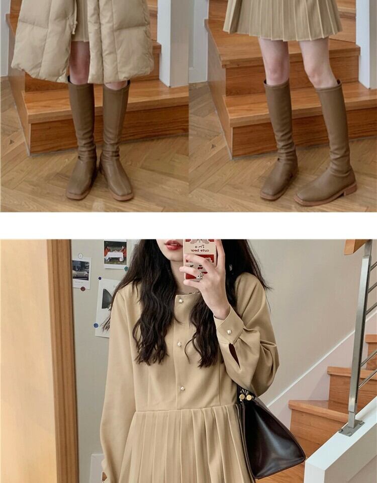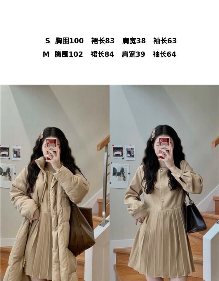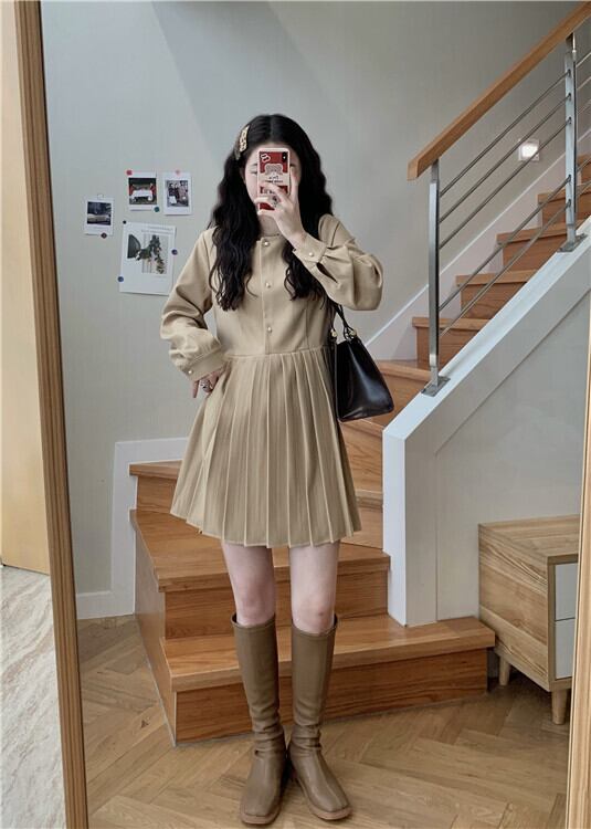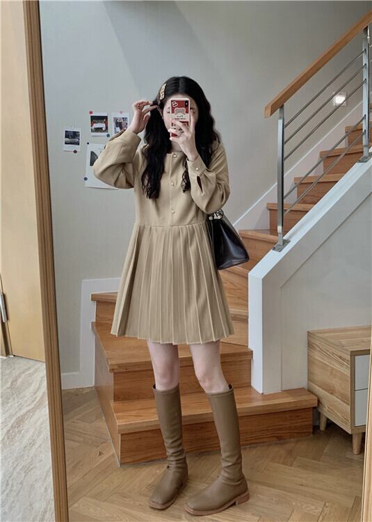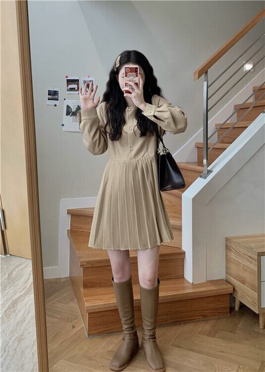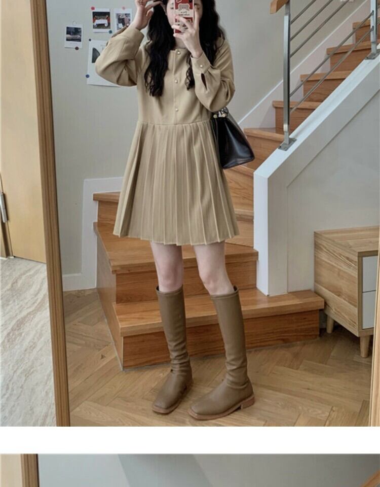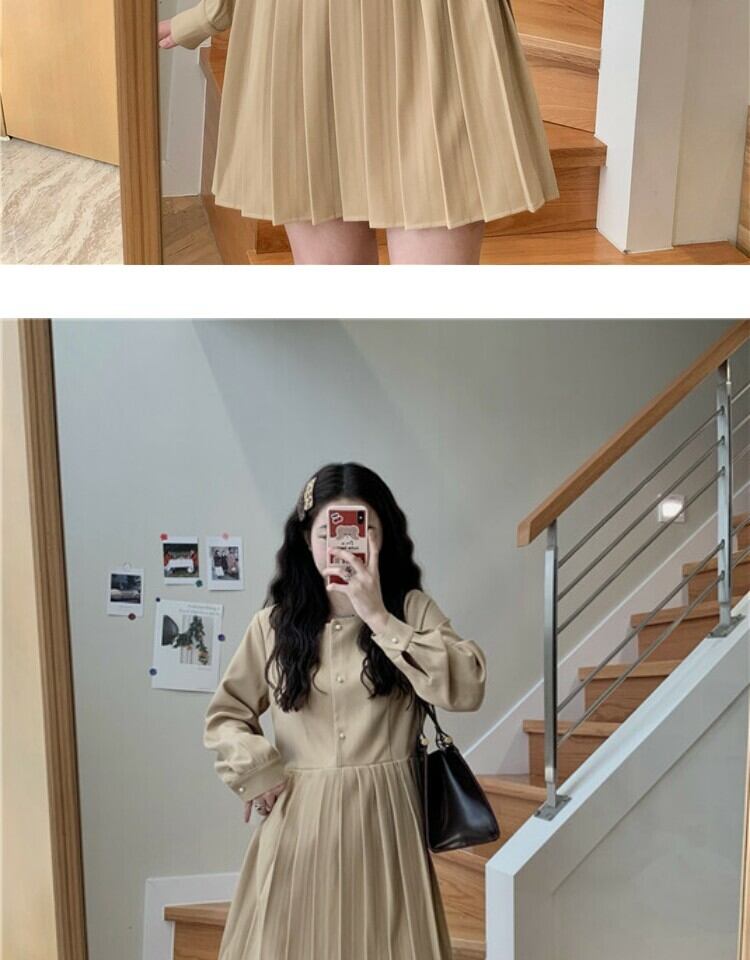 スタンダードプリーツドレス スプリングスタイルハイウェストスカート ロング レトロ 春物 萌量不足33308870557