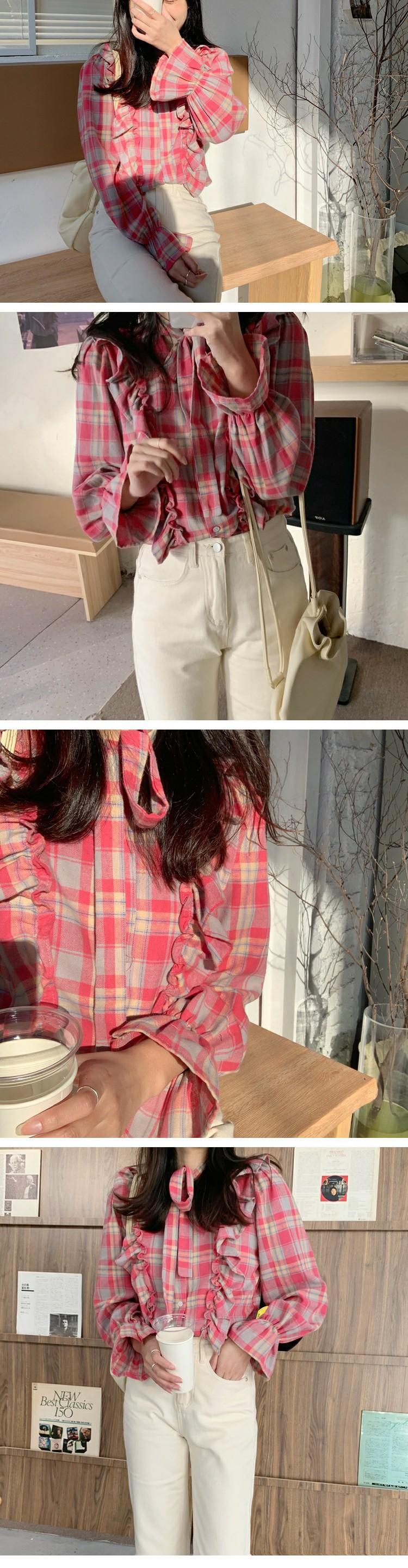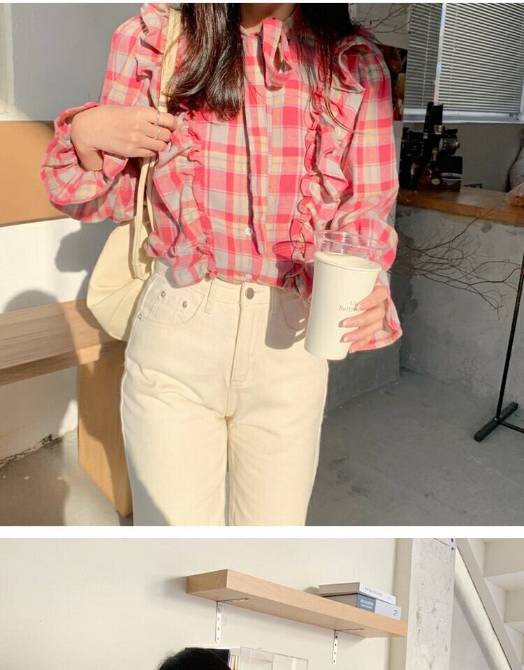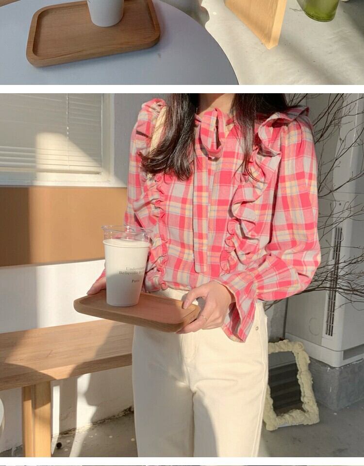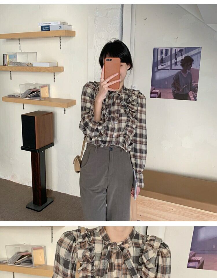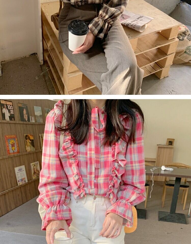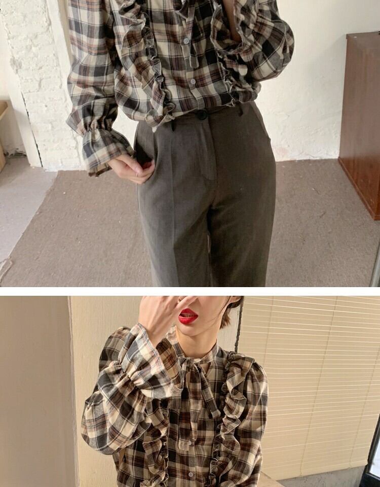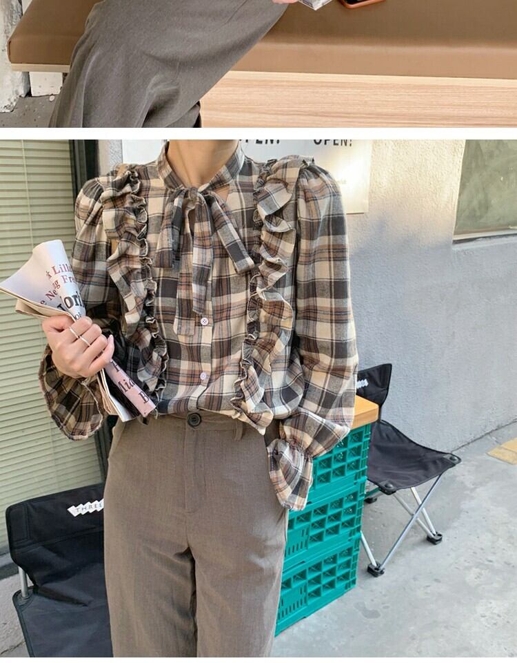 シャツ スプリング格子柄スタンダードスリムトップス レトロ 大人ガーリー スウィート キュート カジュアル 春物 萌量不足18262512552