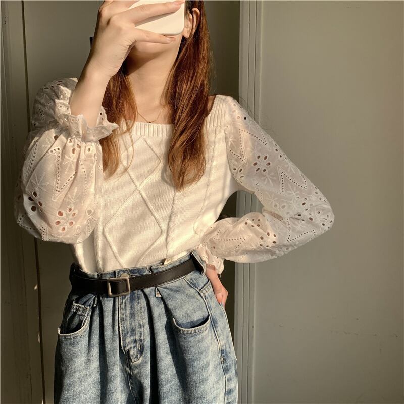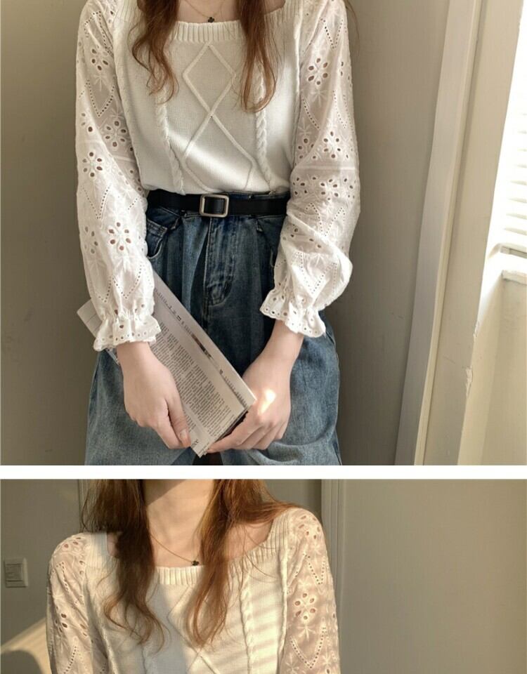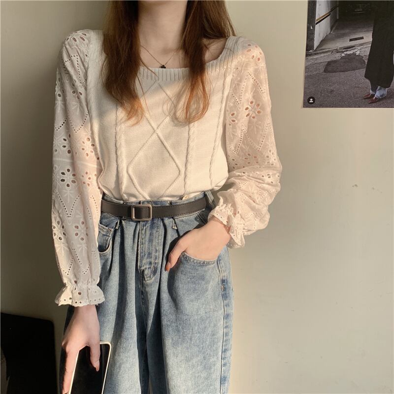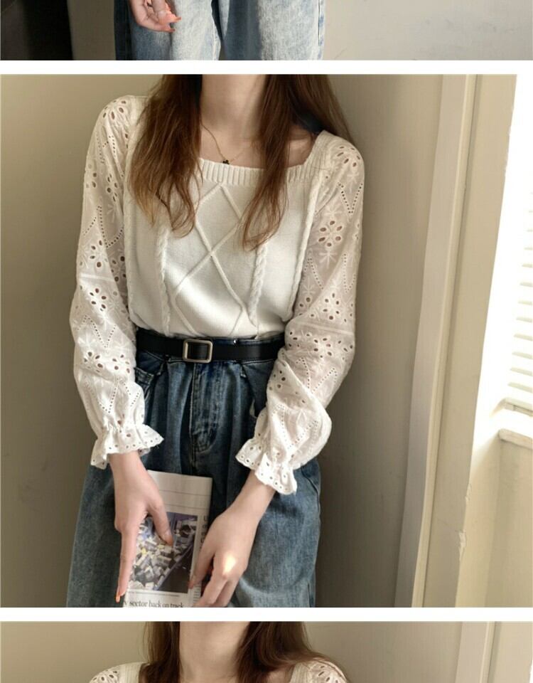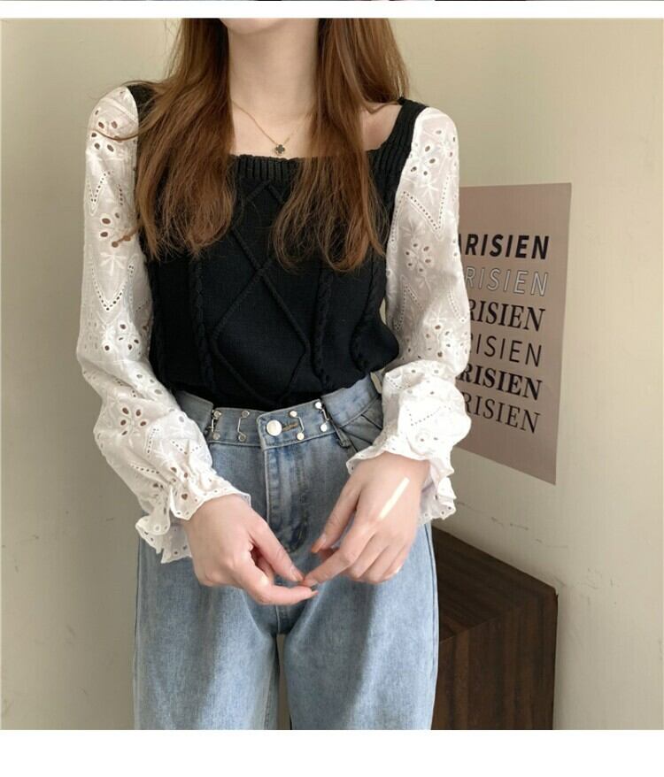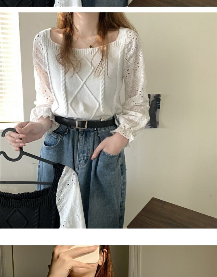 ニットトップス レディーススリムスプリングシャツ ロング 春物 ステッチ 萌量不足45092296825