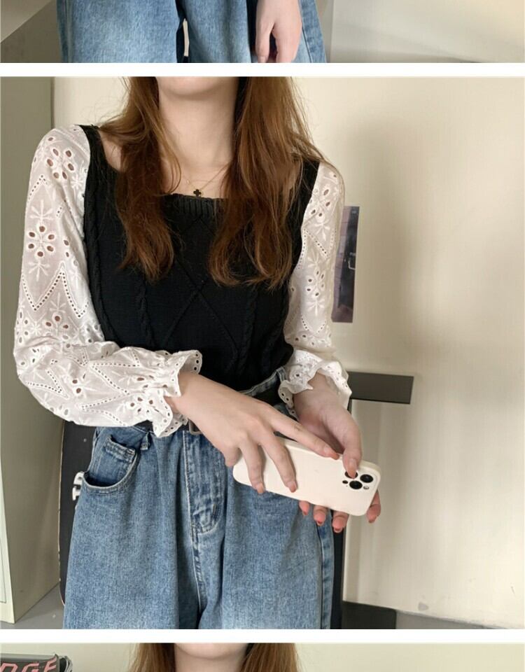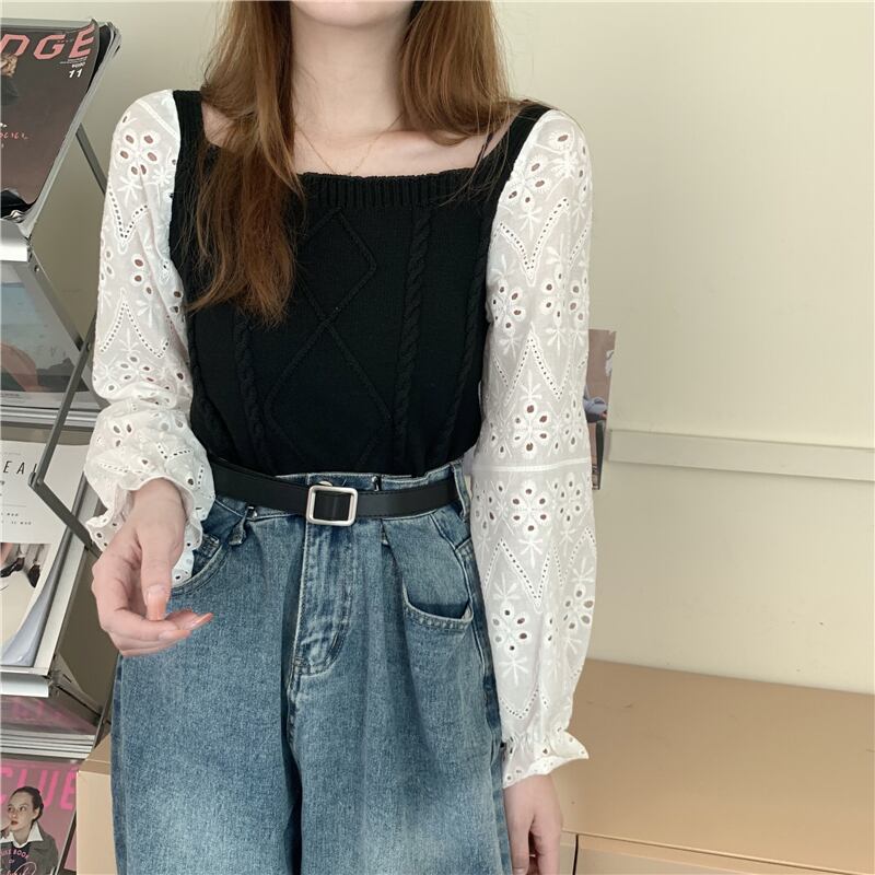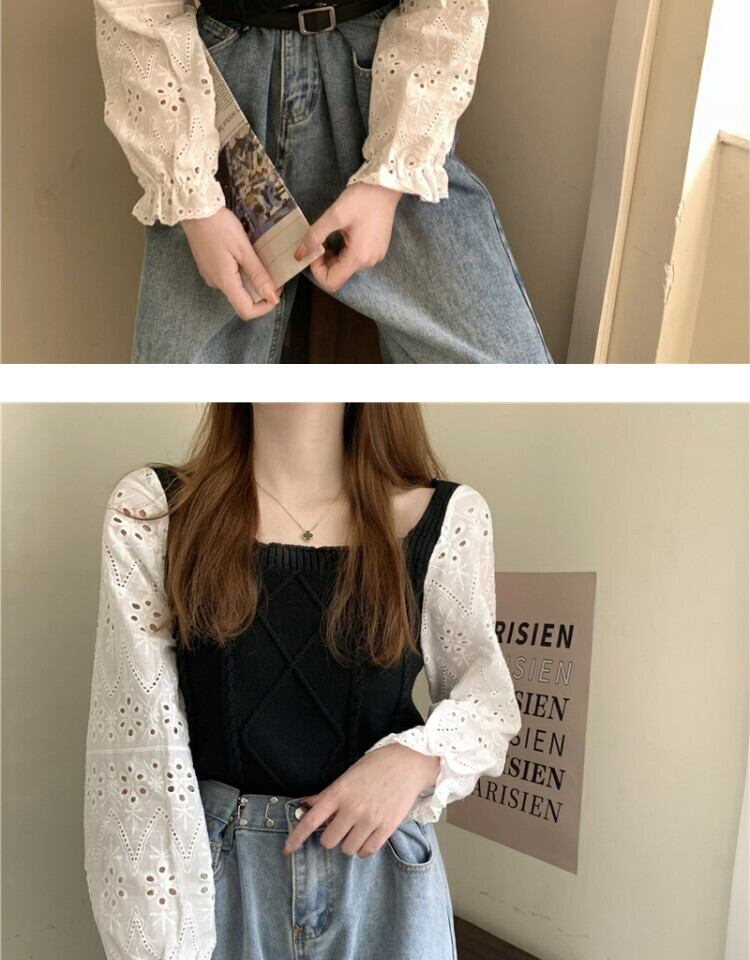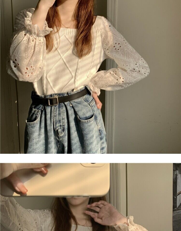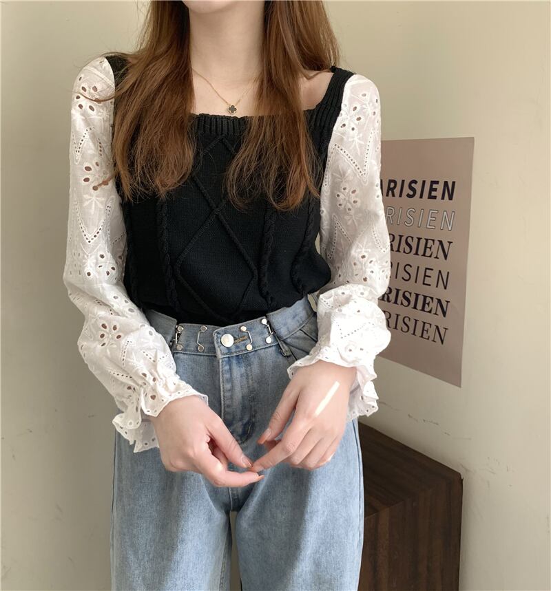 ニットトップス レディーススリムスプリングシャツ ロング 春物 ステッチ 萌量不足45092296825