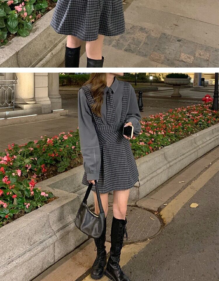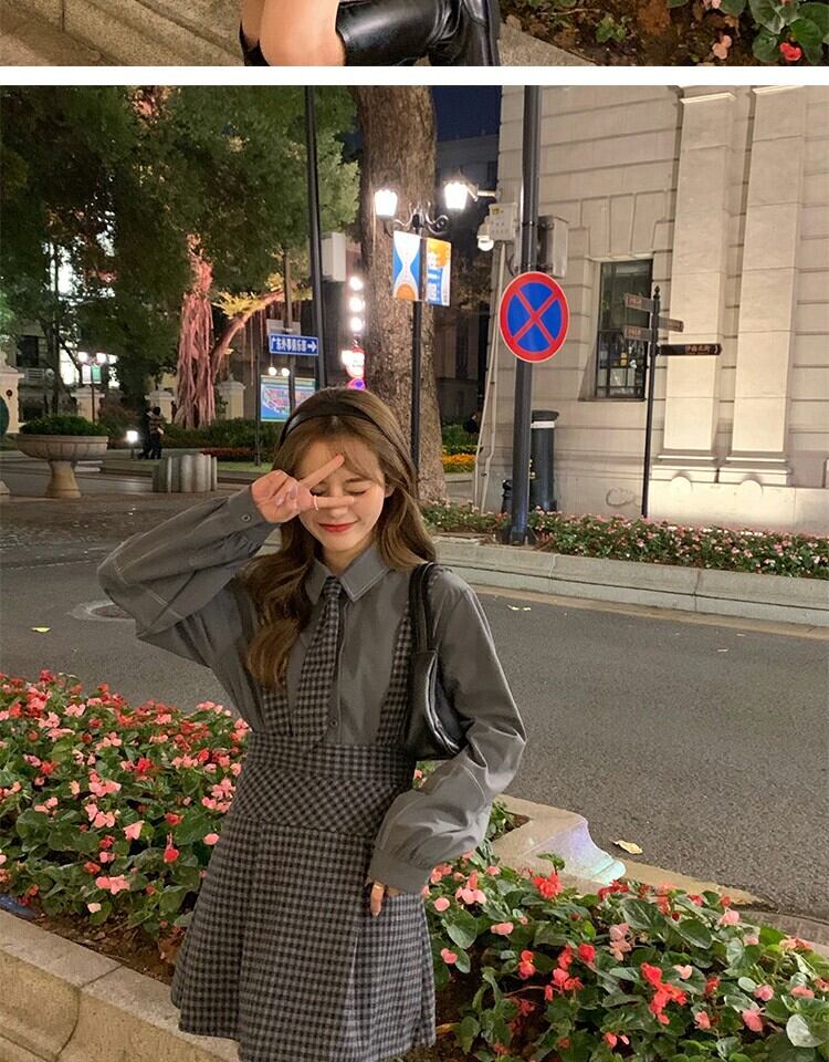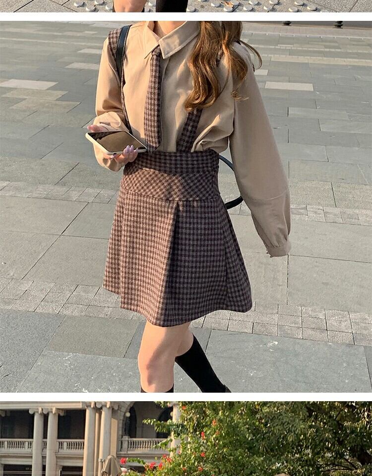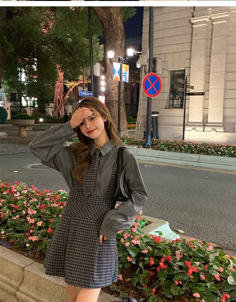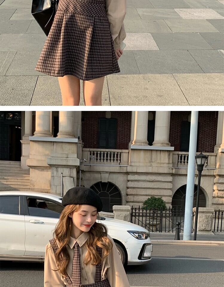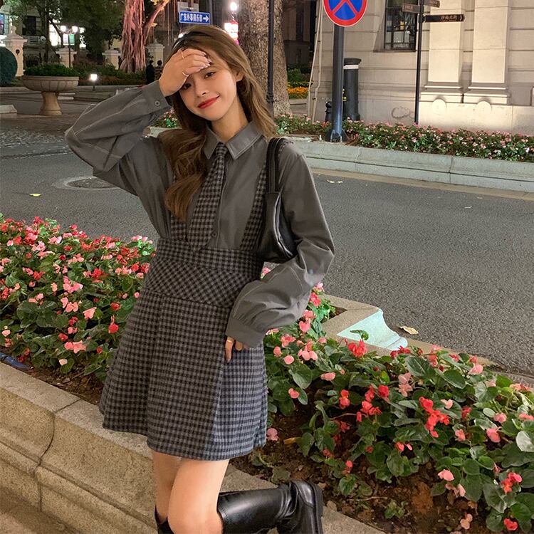 色:グレーチェックスカートワンピース,シングルディープカーキスカート,グレーのシャツワンピース,ディープカーキシャツワンピース