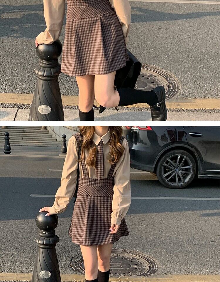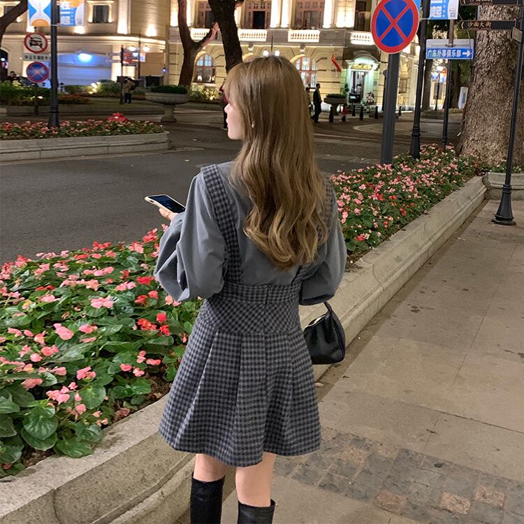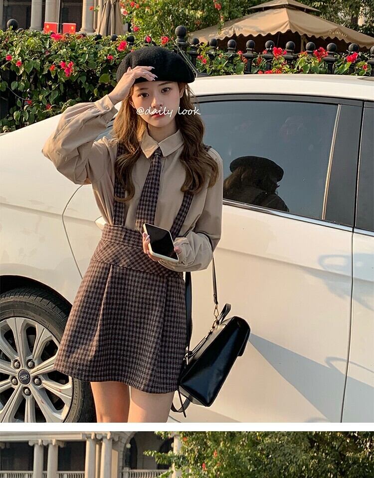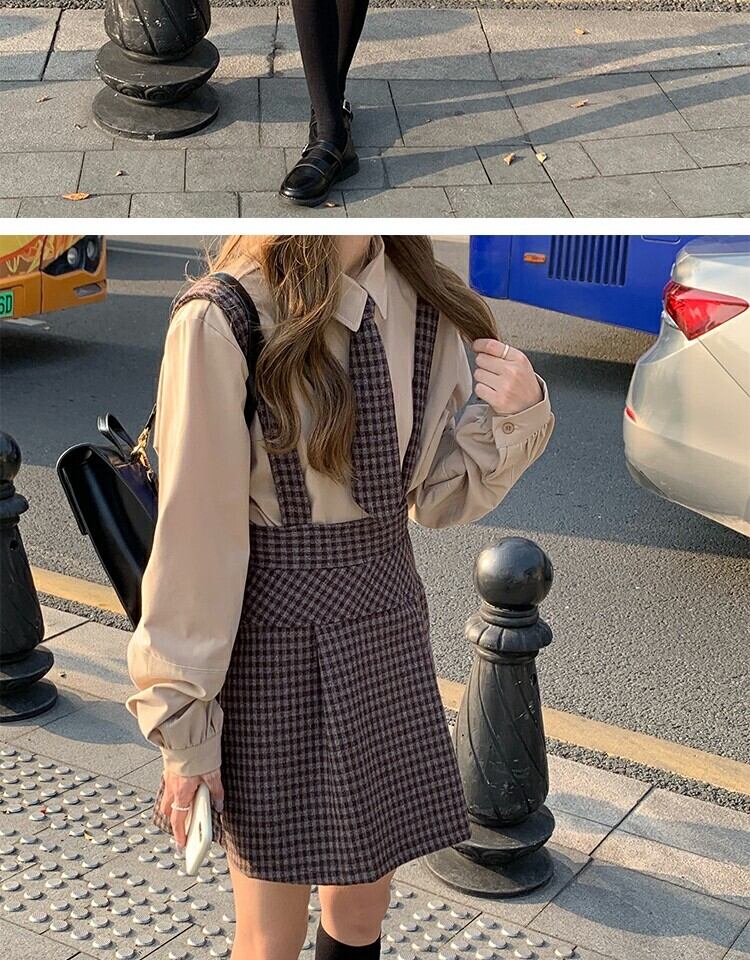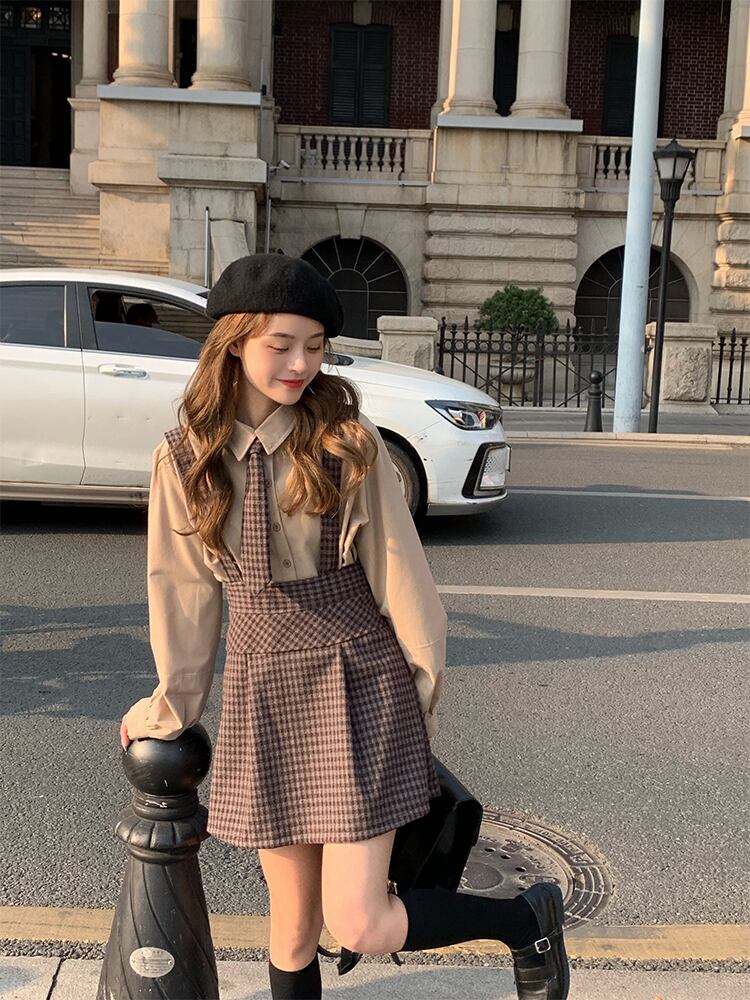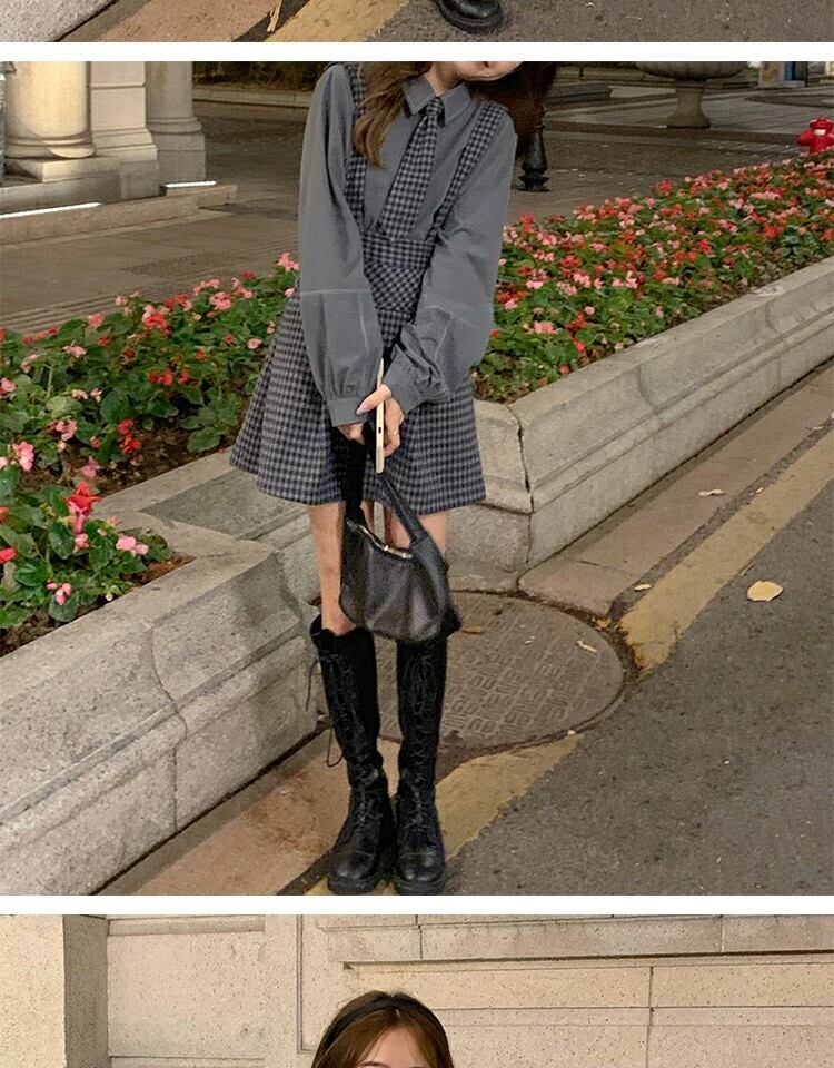色:グレーチェックスカートワンピース,シングルディープカーキスカート,グレーのシャツワンピース,ディープカーキシャツワンピース