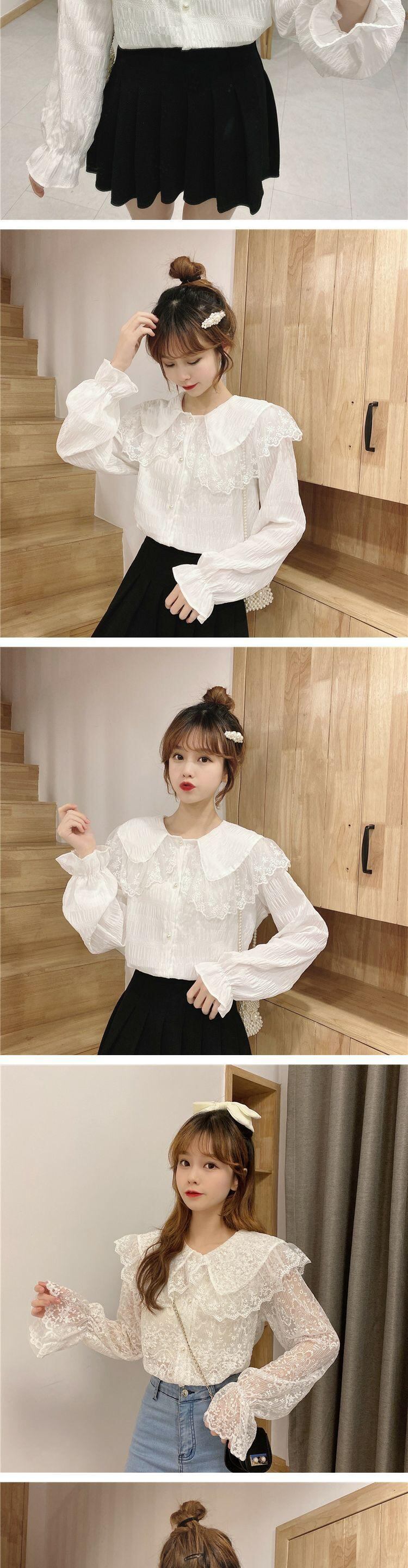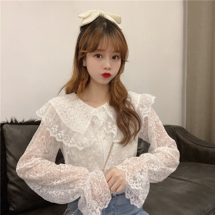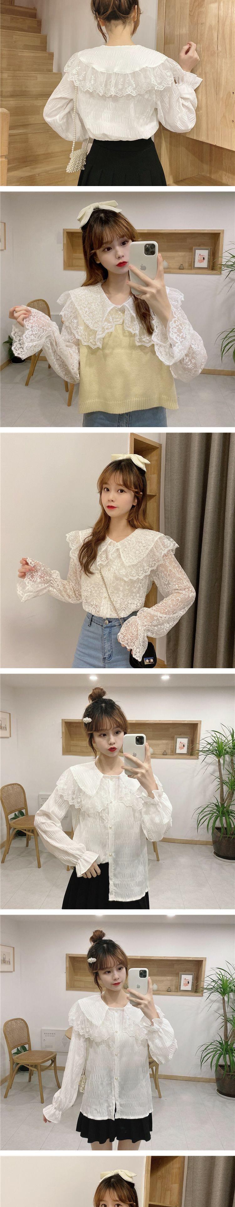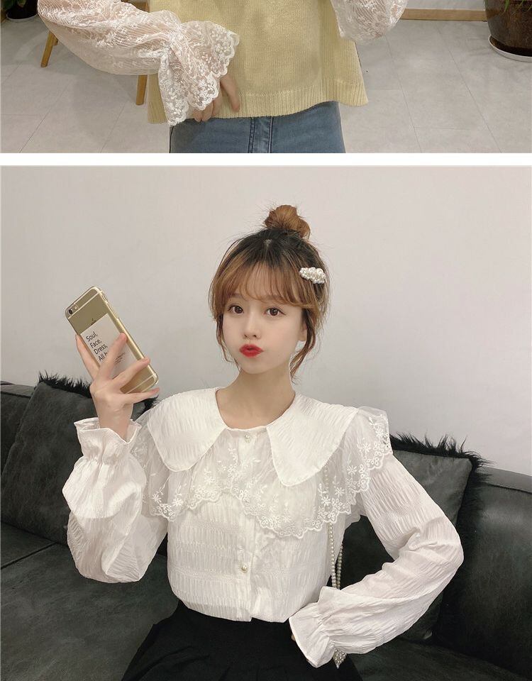 レースカラースプリング ブラウス 大人ガーリー スウィート キュート カジュアル 春物 萌量不足7730781779