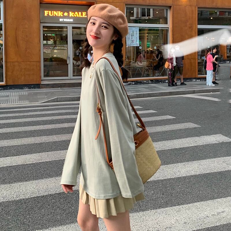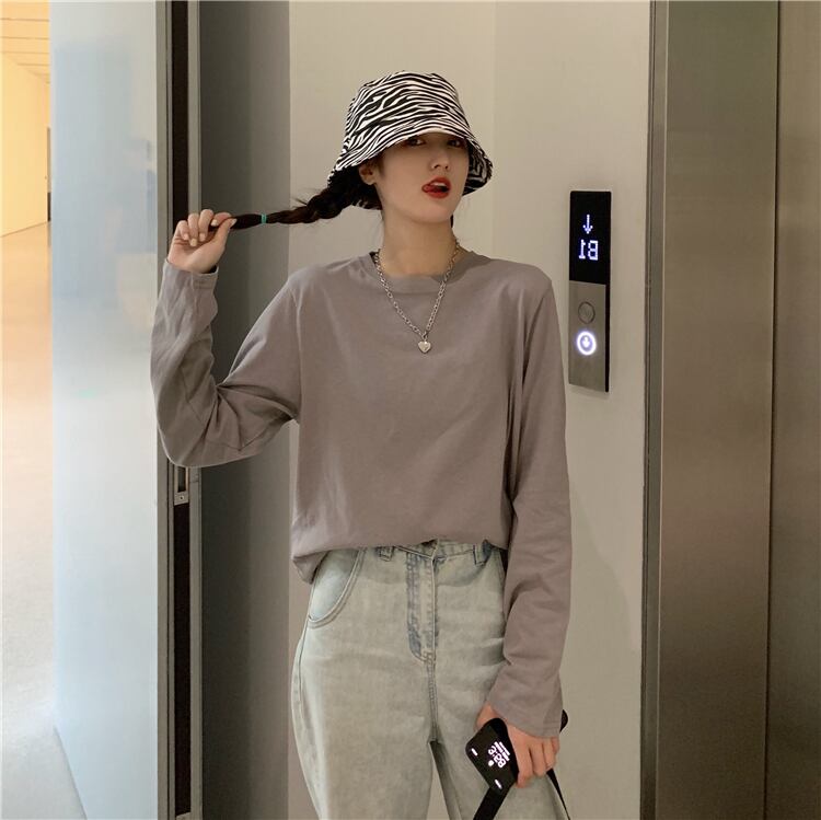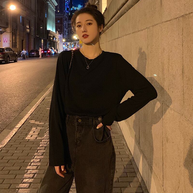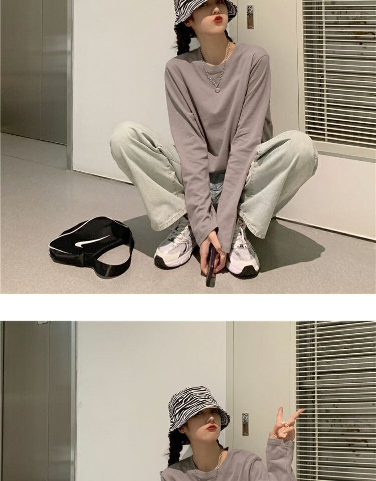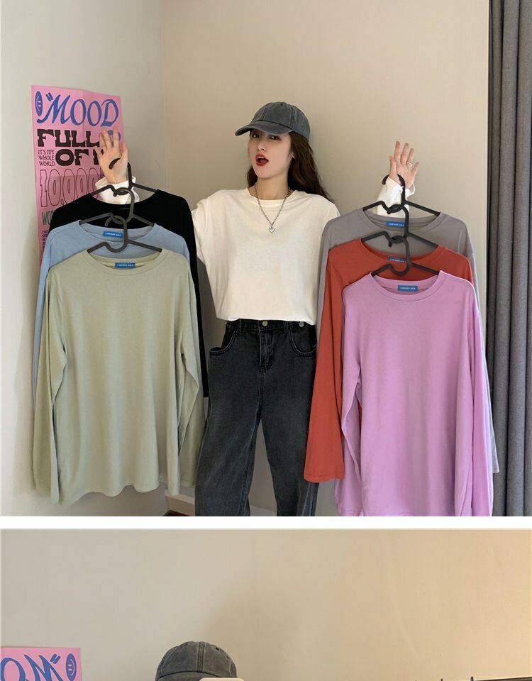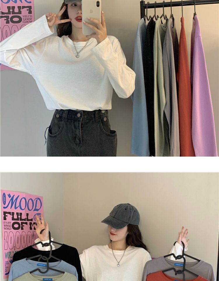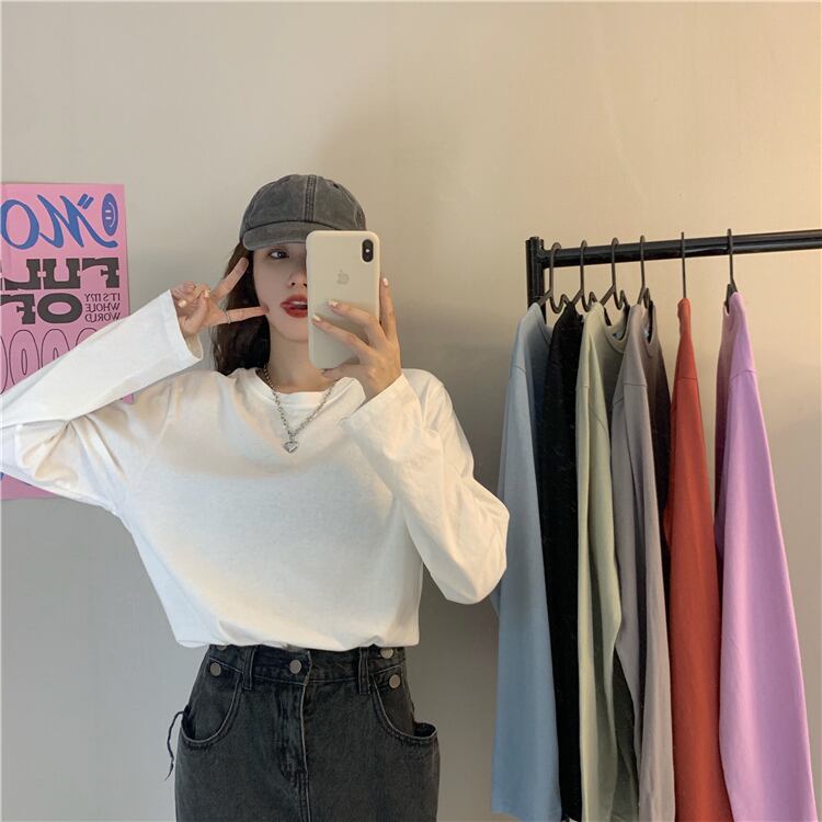 ホワイトTシャツ スプリングラウンドネックプルオーバー ルーズ薄手トップス ロング 春物 Oネック 萌量不足37969743085