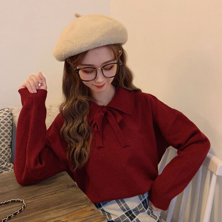 スタイルスタンダードセーター スプリングルーズ薄手レッド レトロ 春物 萌量不足45327655510