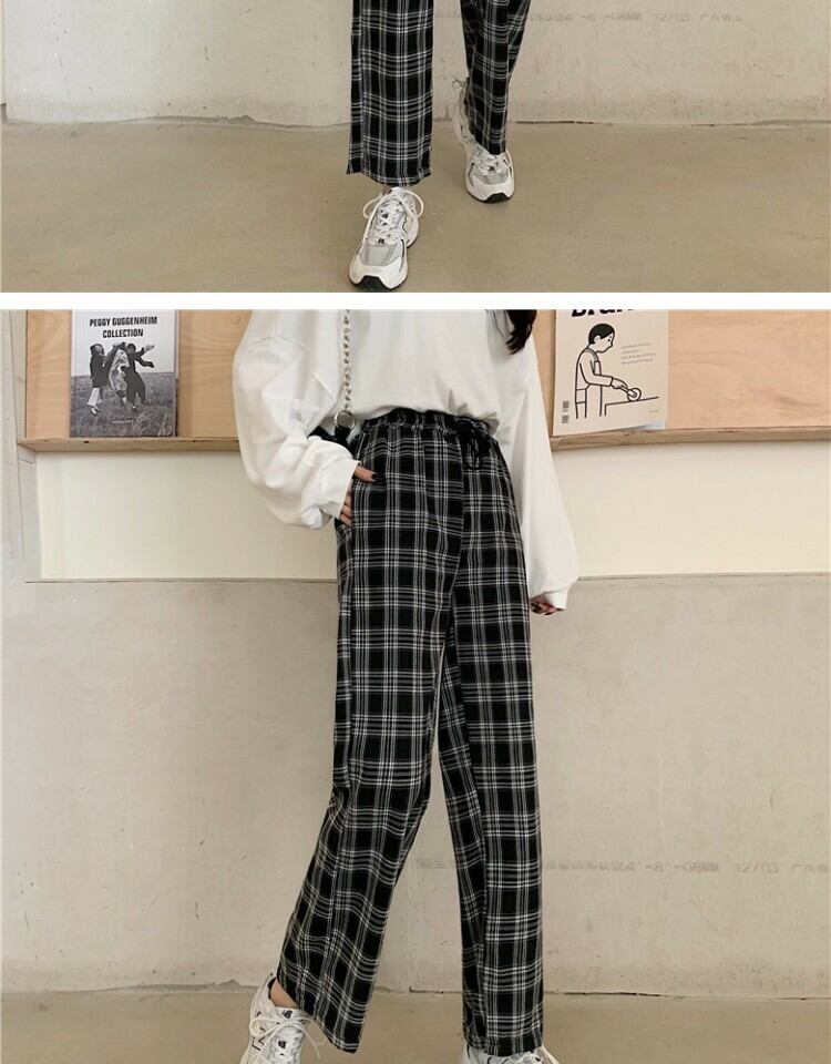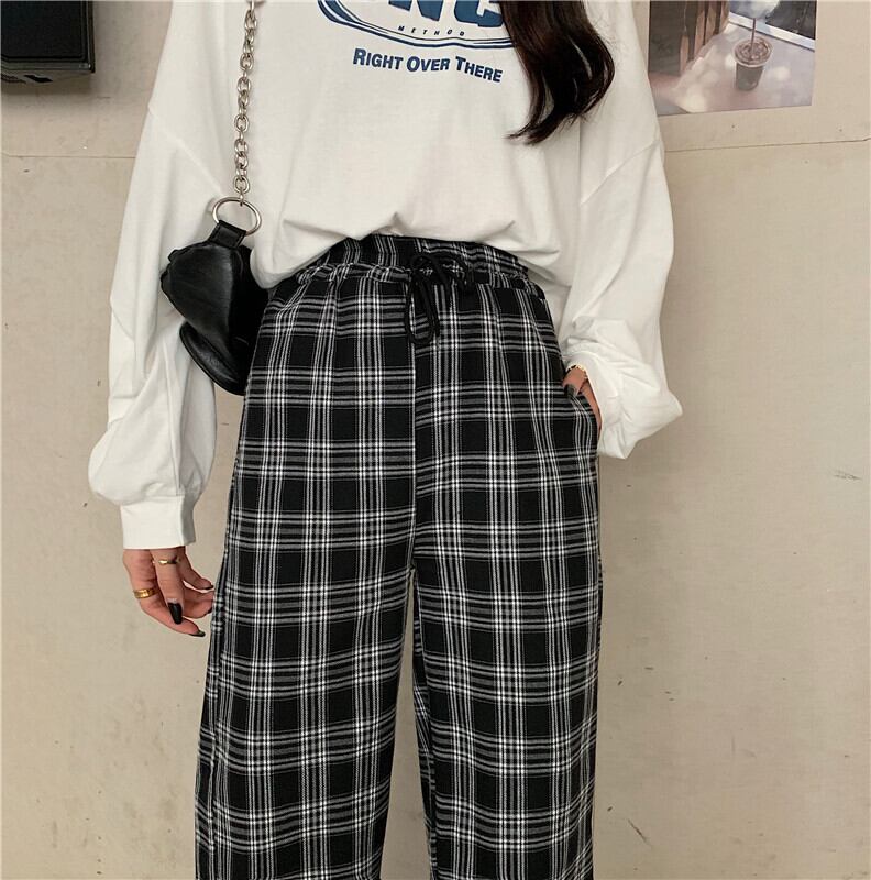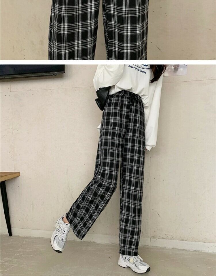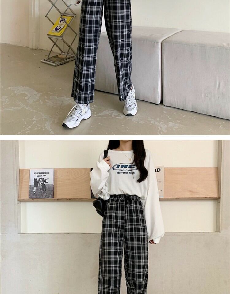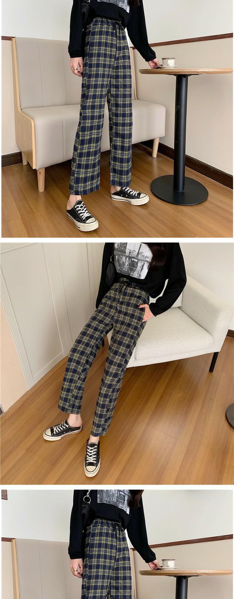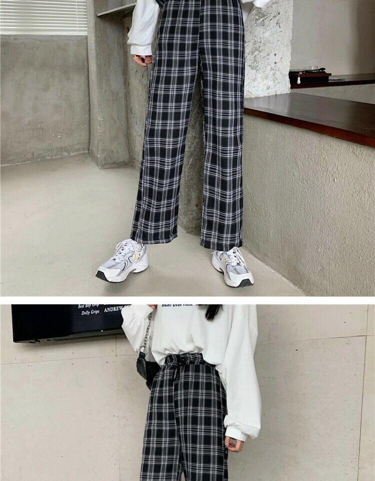 格子柄パンツ レディースルーズハイウェストウェストスリムスプリングカジュアル 春物 萌量不足71320491893