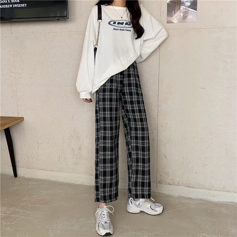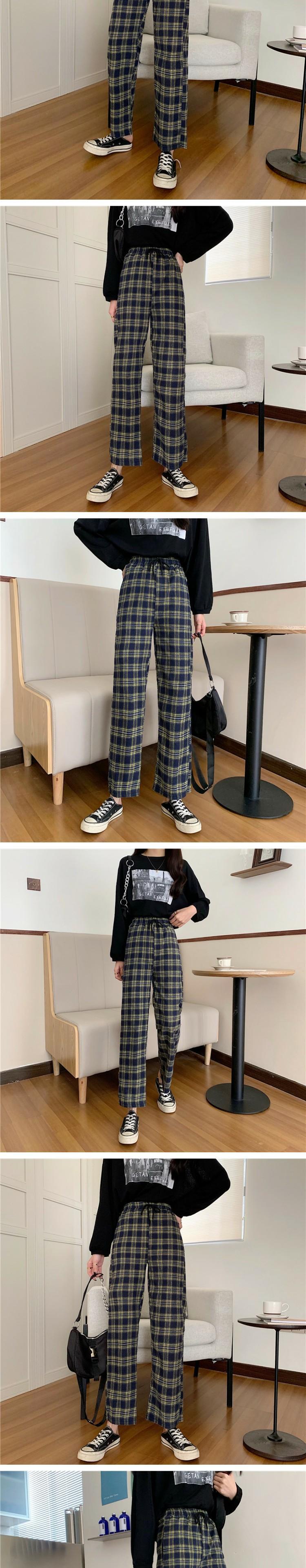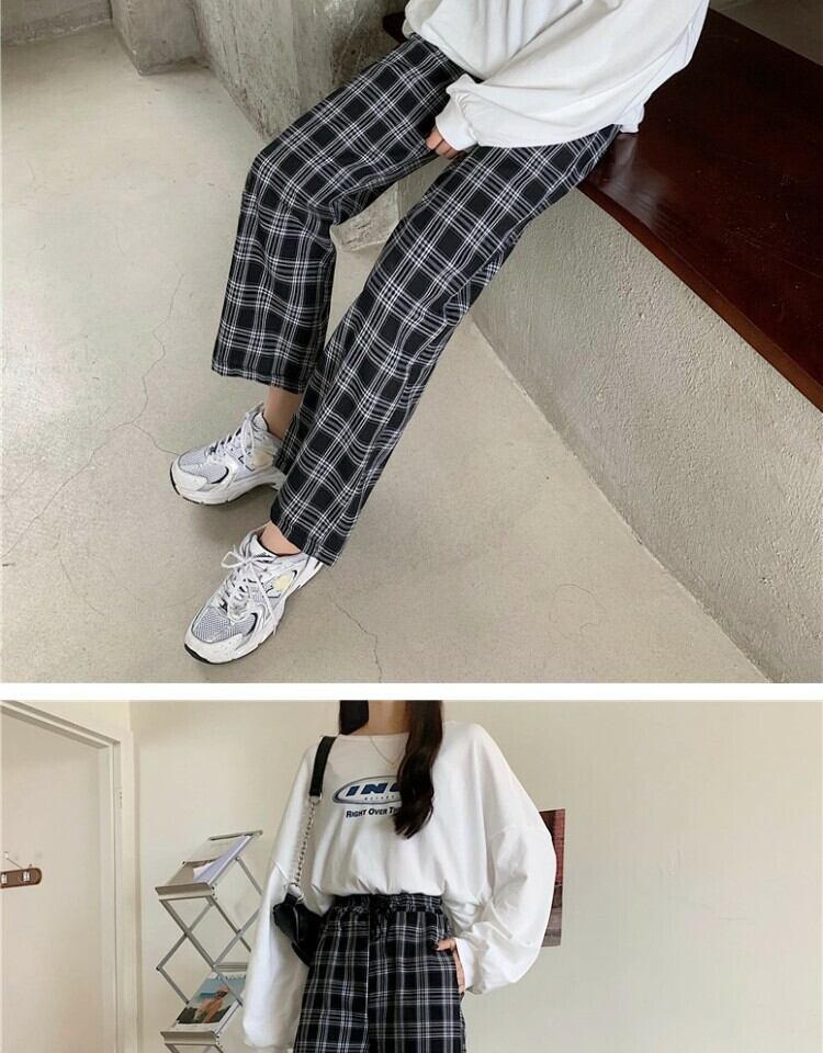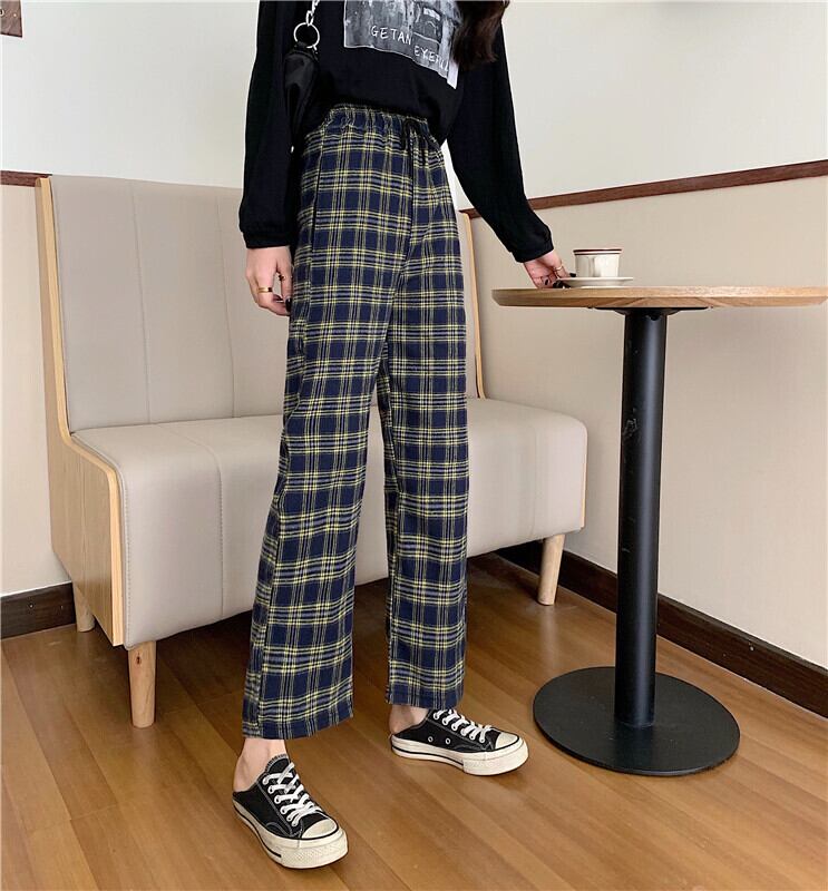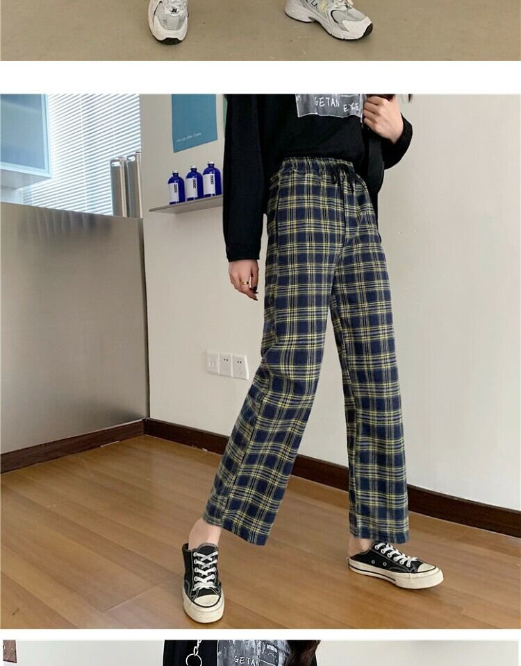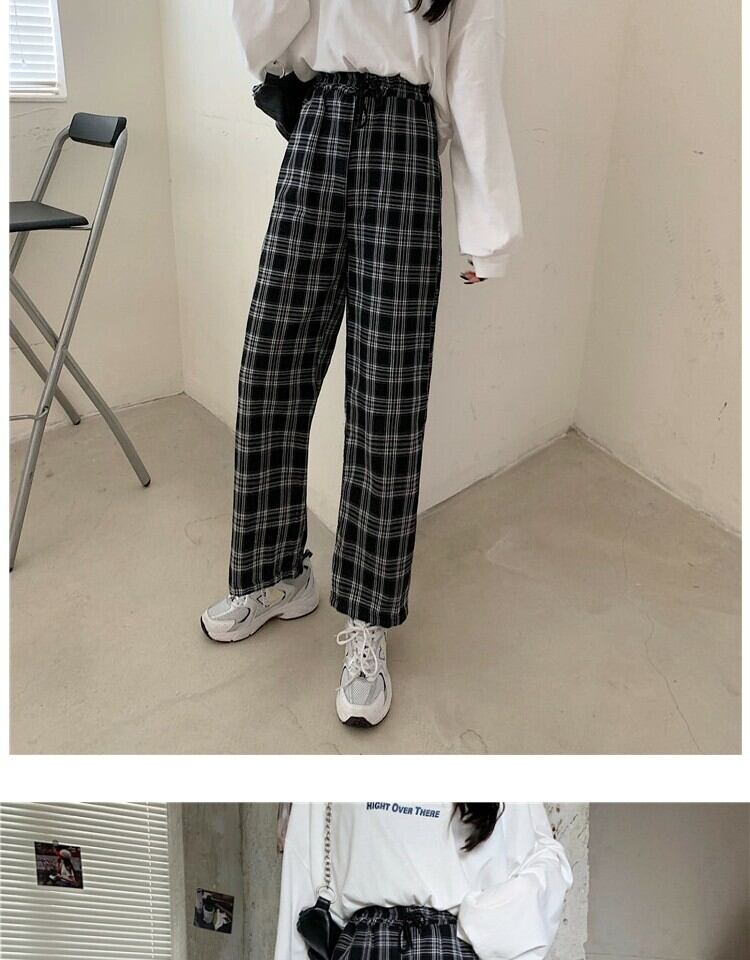 格子柄パンツ レディースルーズハイウェストウェストスリムスプリングカジュアル 春物 萌量不足71320491893