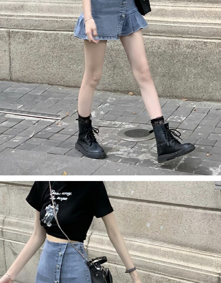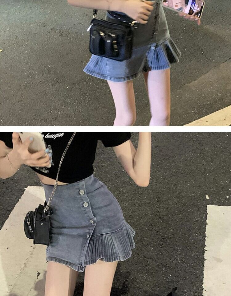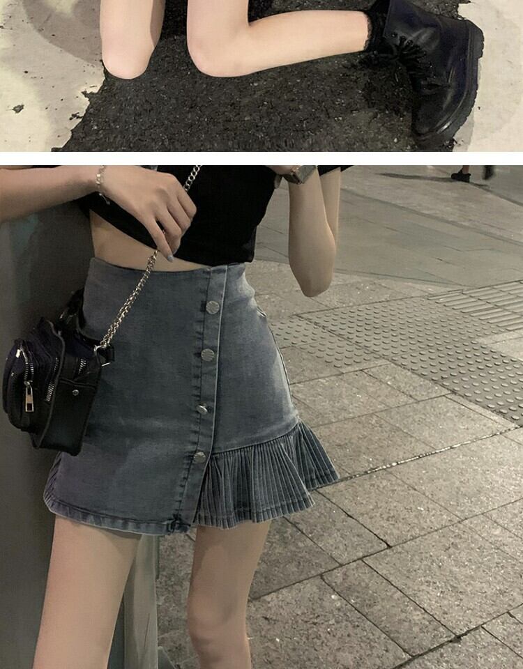 バックルプリーツスプリングスリム 春物 スカート 萌量不足3881595152