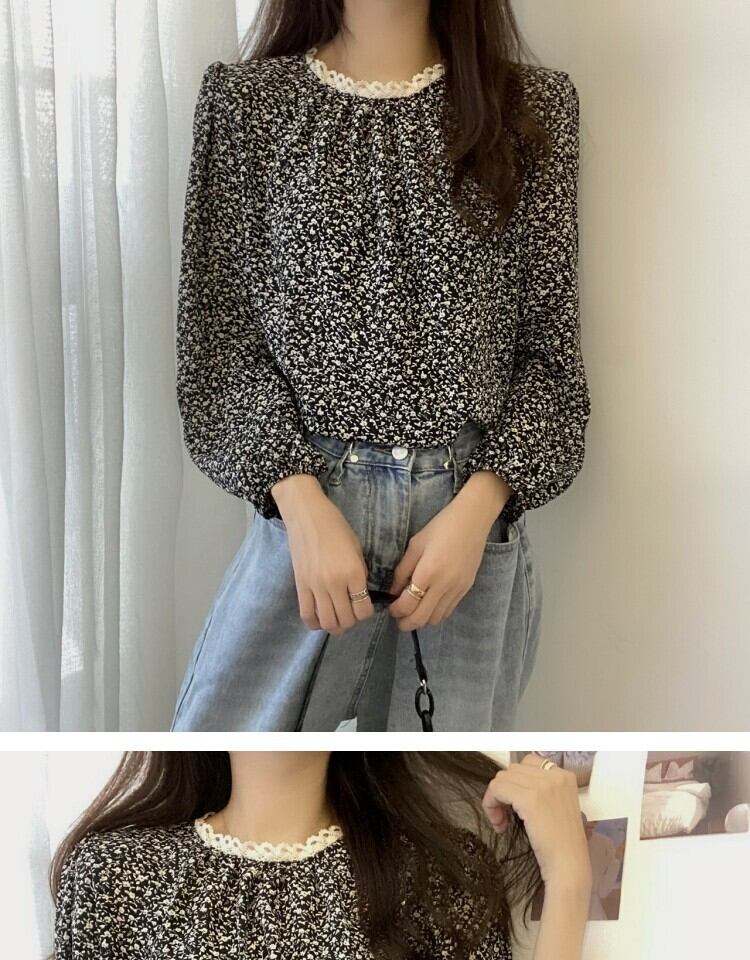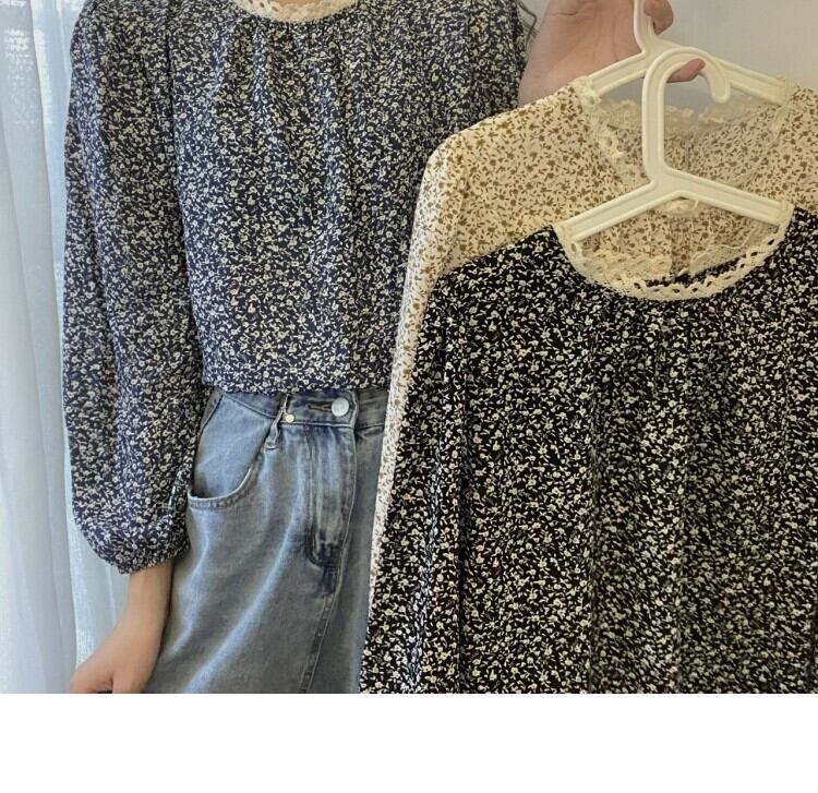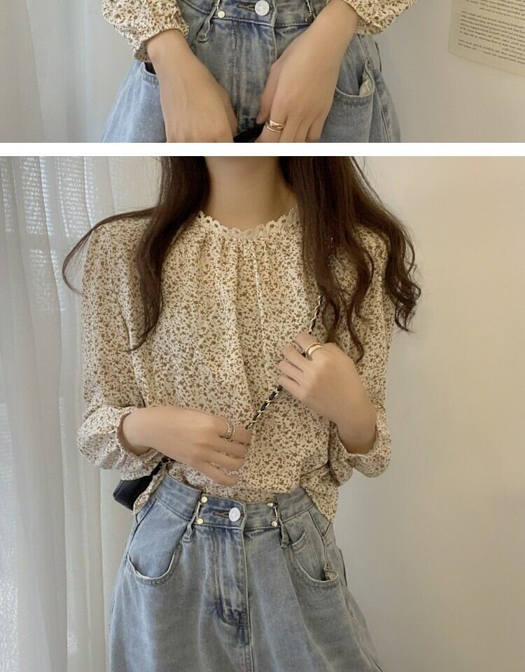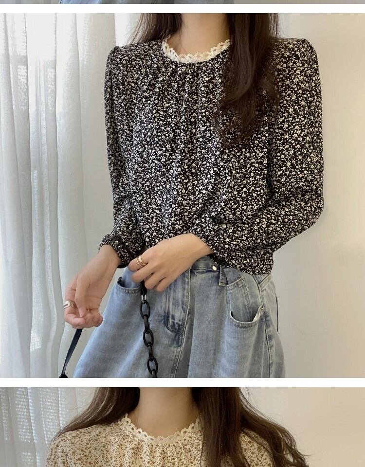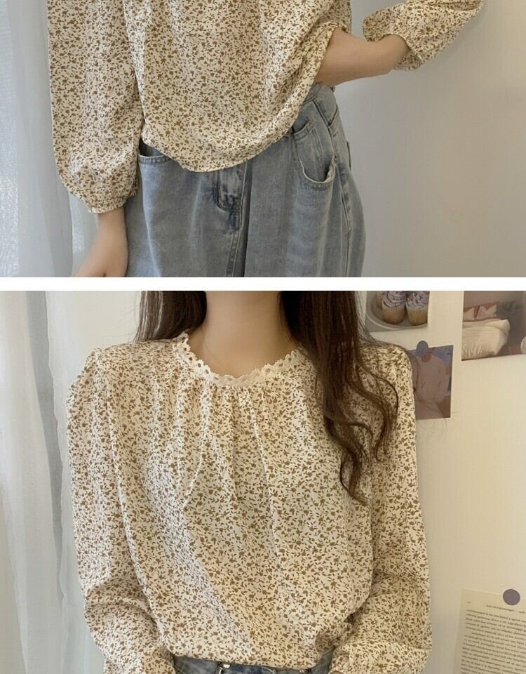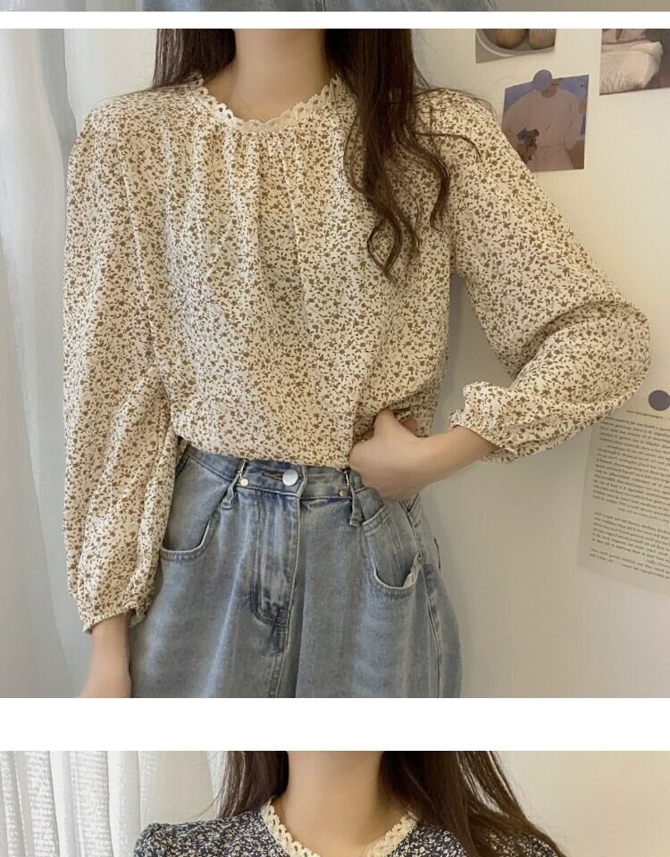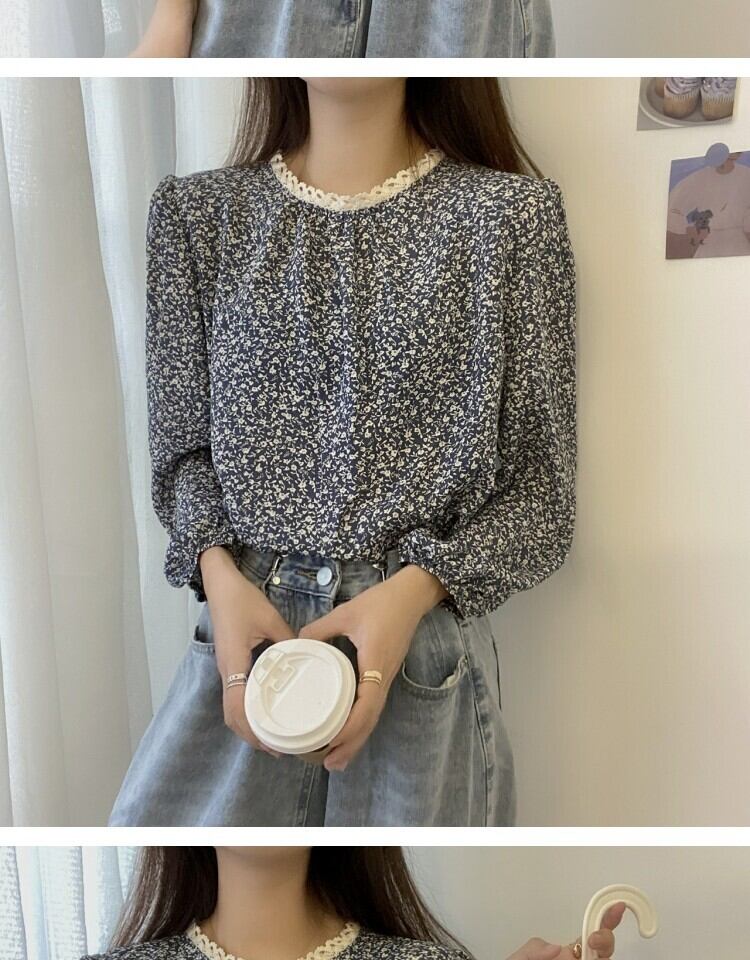 スタンダードレースフローラルシャツ スプリング ロング レトロ 春物 花柄 ステッチ 萌量不足13622374664