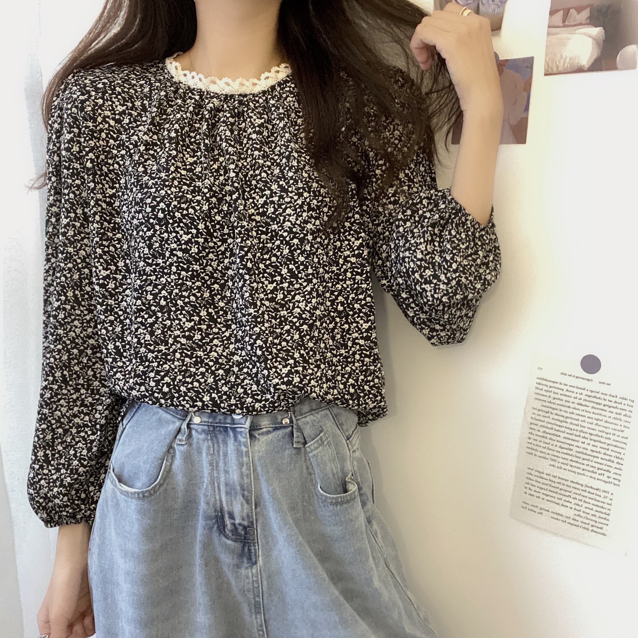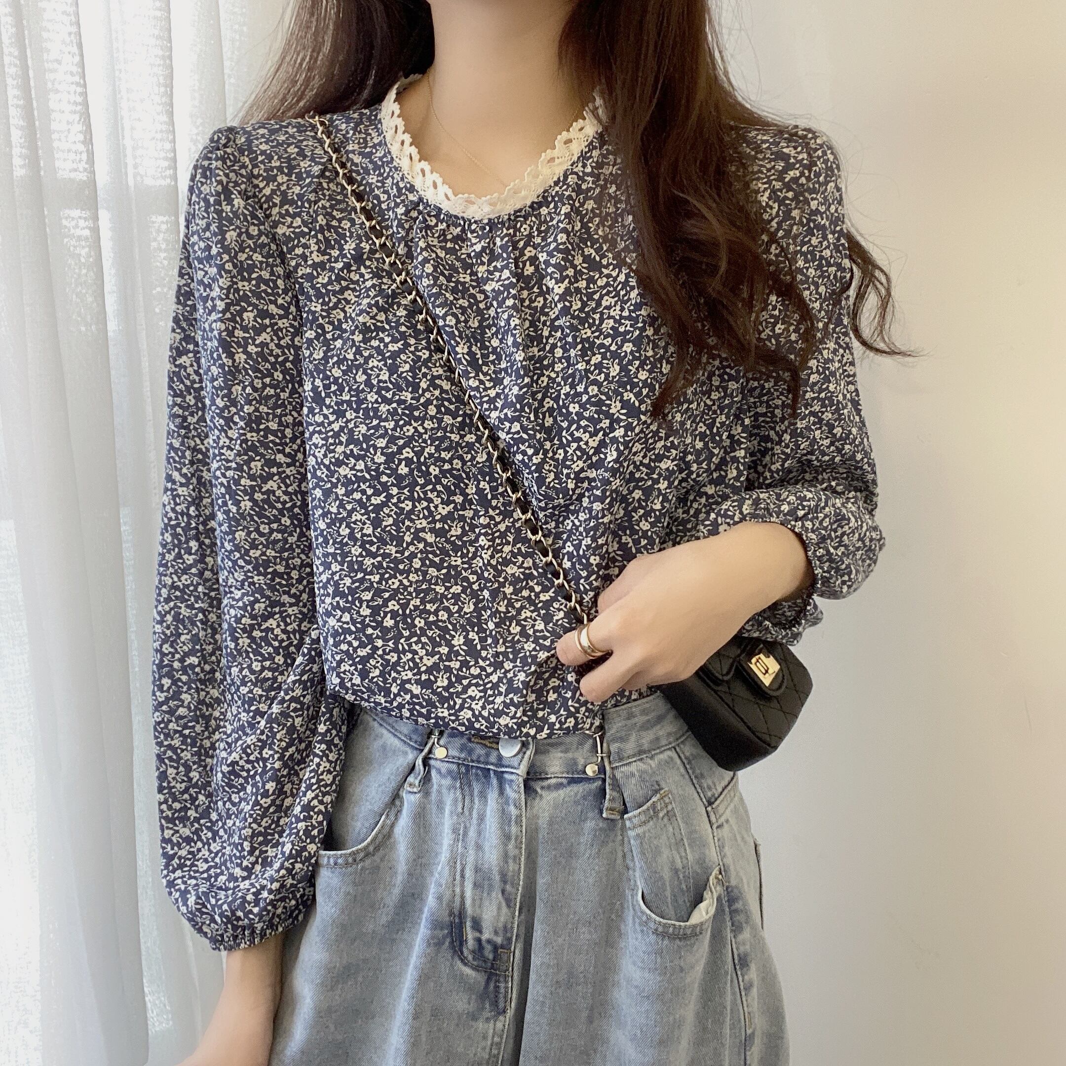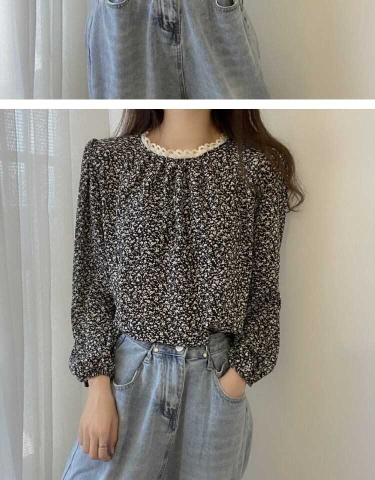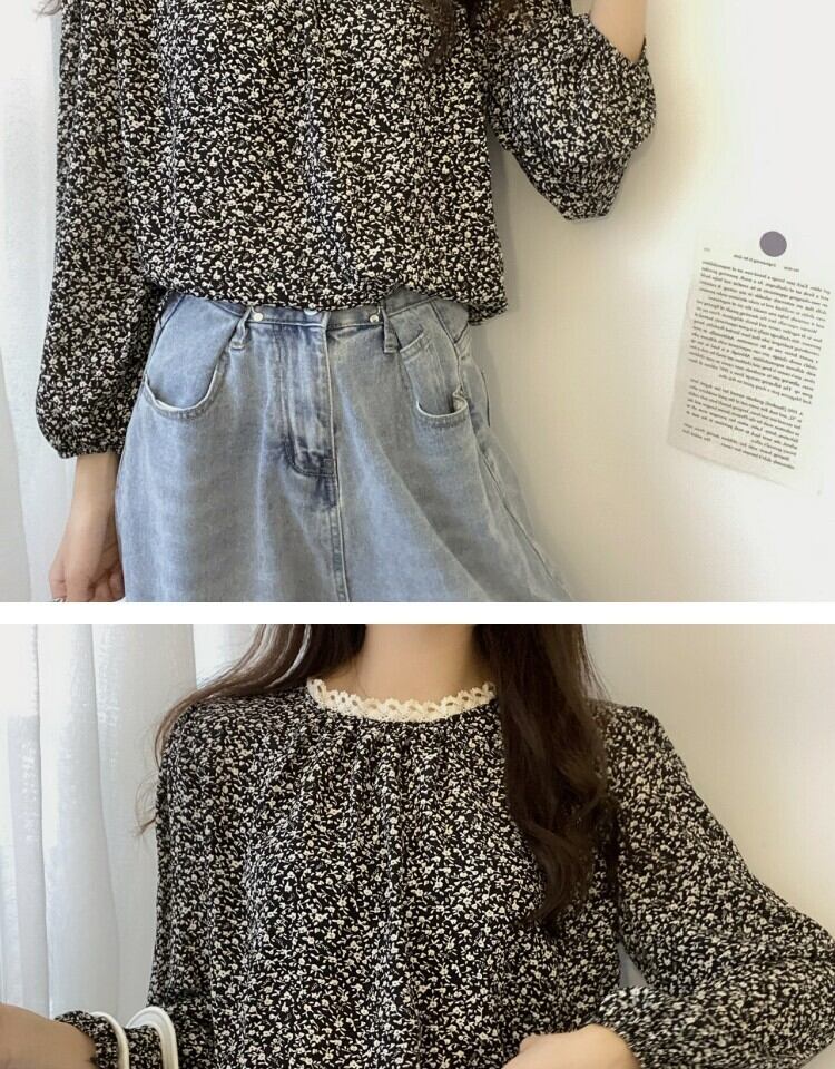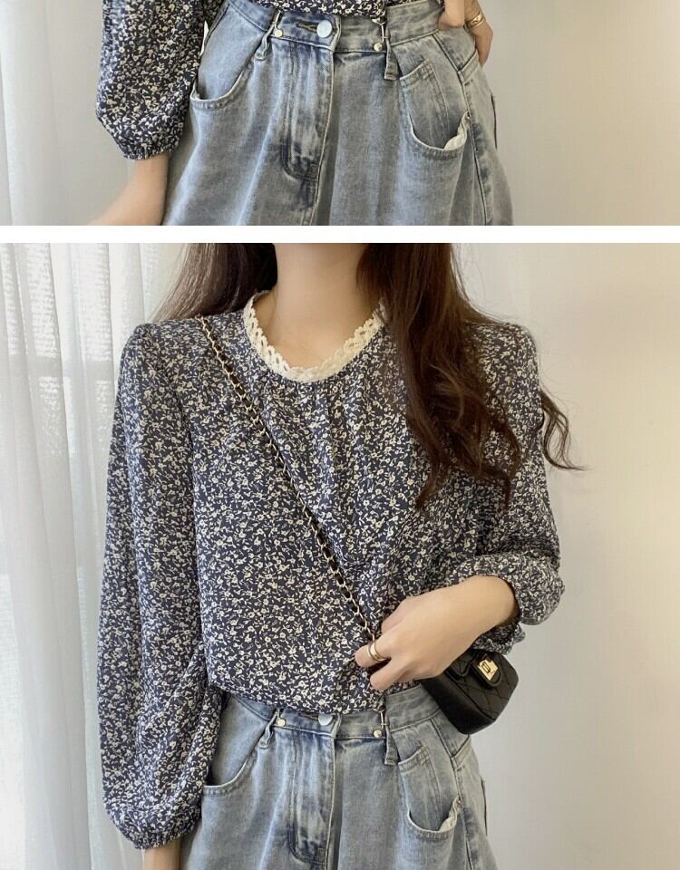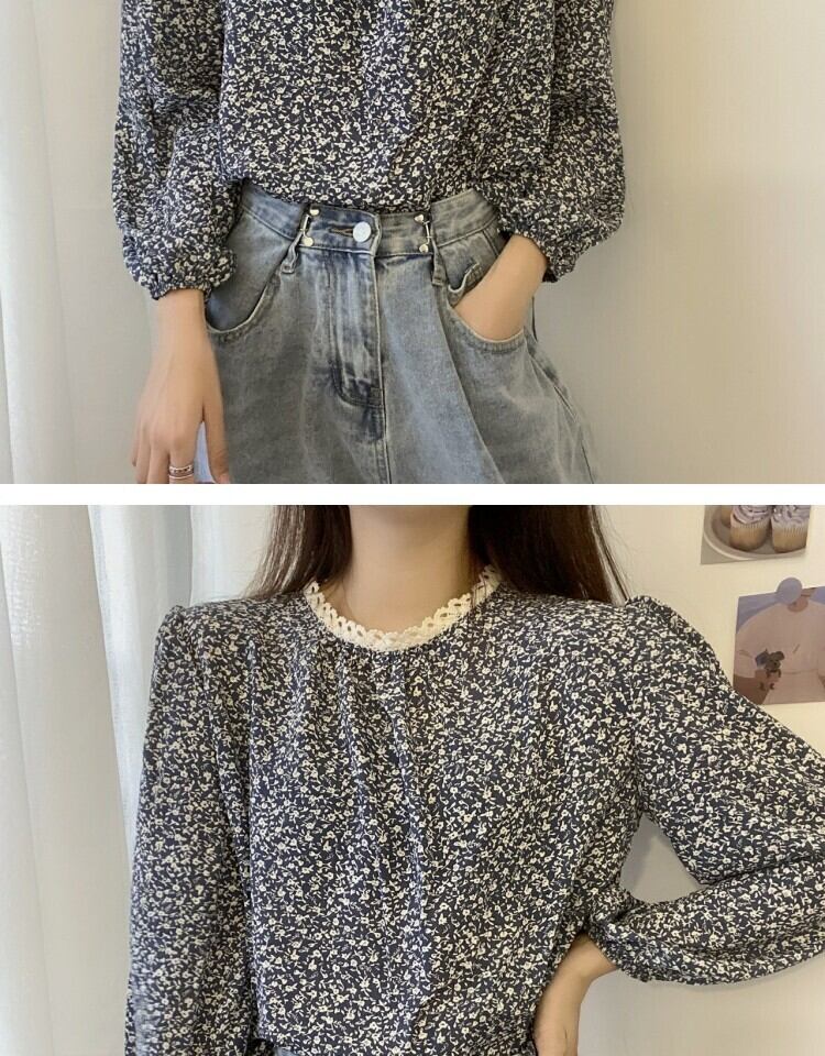 スタンダードレースフローラルシャツ スプリング ロング レトロ 春物 花柄 ステッチ 萌量不足13622374664