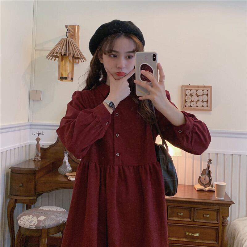 スタイルレッドドレス スプリングハイウェストウェストスリムスタンダードスカート レトロ 春物 萌量不足40109228074