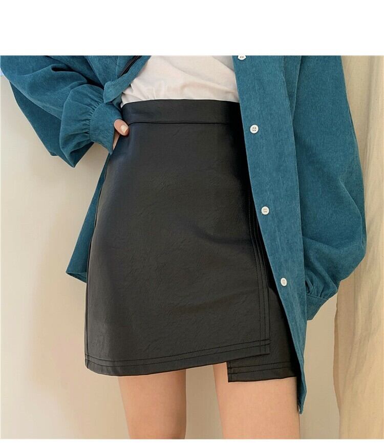レザースカート スプリングオータムハイウェストウェスト薄手ショート 春物 秋物 萌量不足99383518878