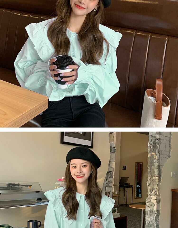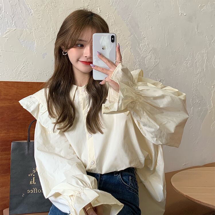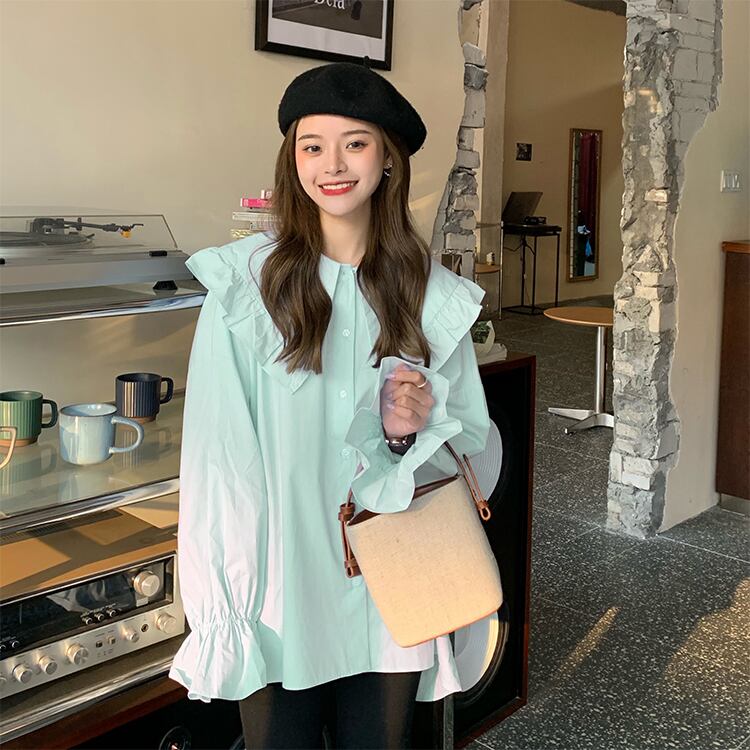 カラーシャツ ルーズ薄手スプリングソリッド トップス 春物 ソリッドカラー 萌量不足3348054847