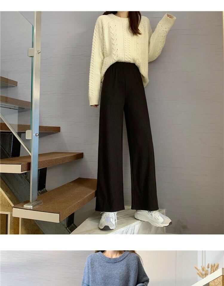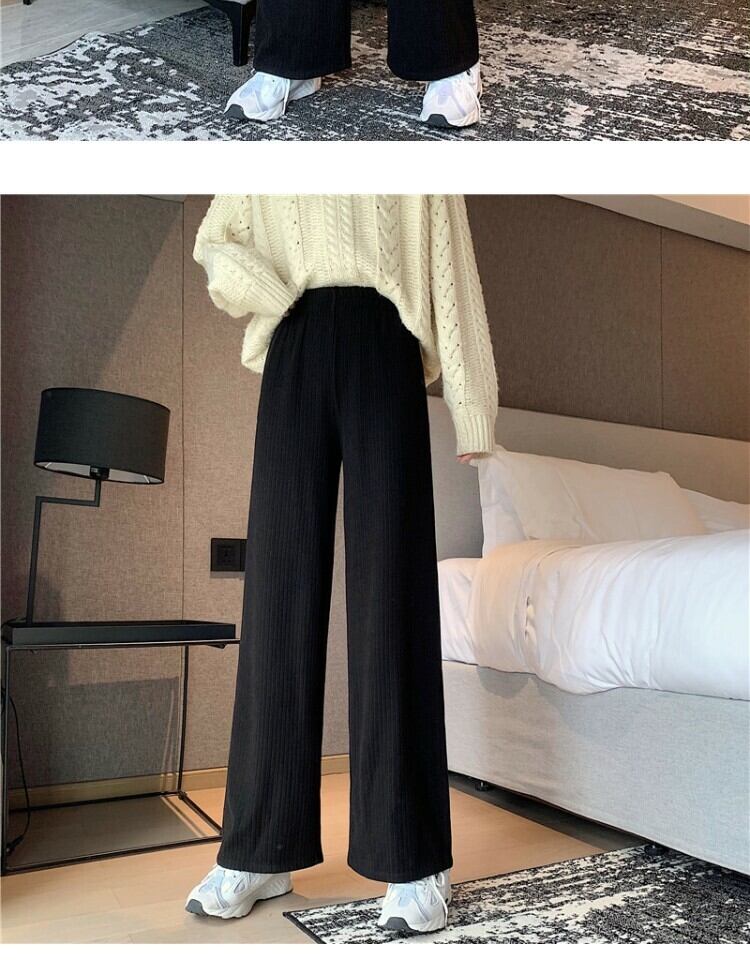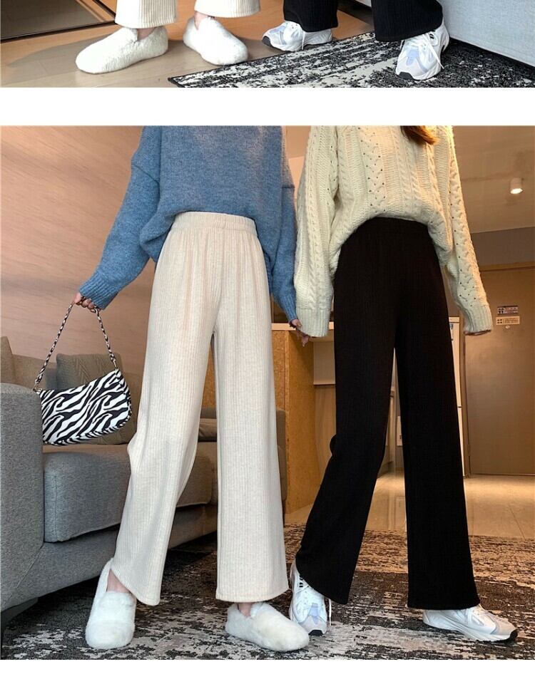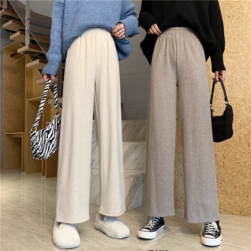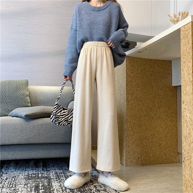 ワイドレッグパンツ スプリングストライプハイウェストウェストルーズカジュアル 春物 ワイドパンツ 萌量不足39406420271