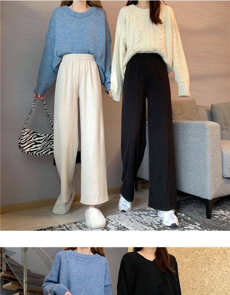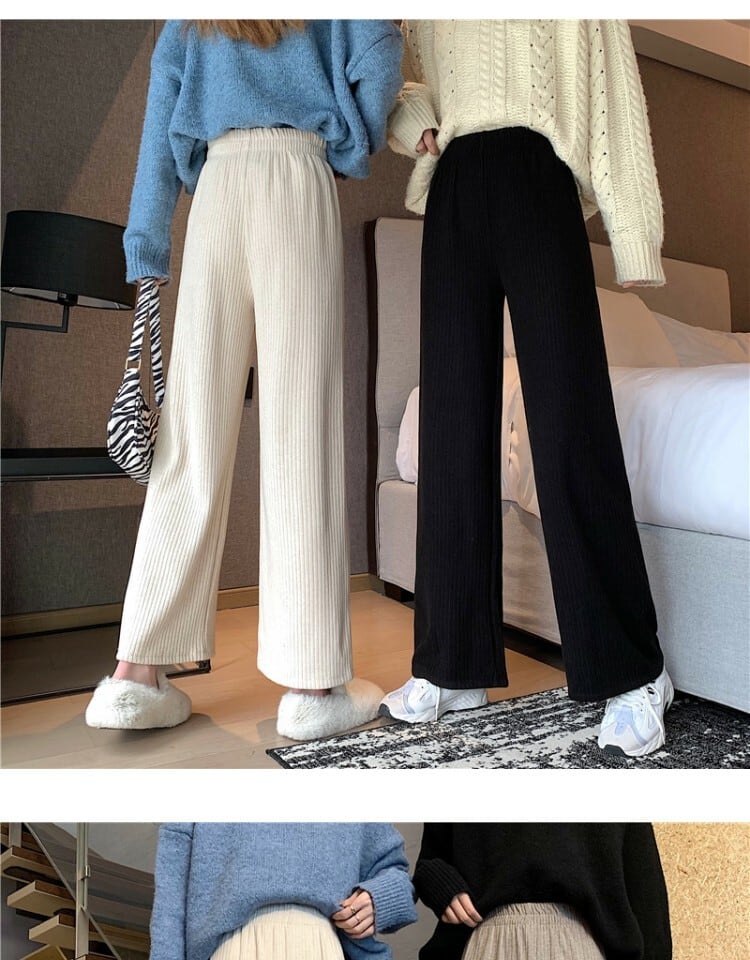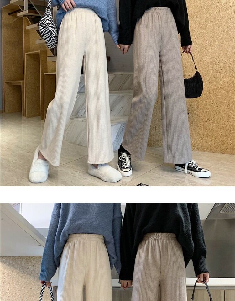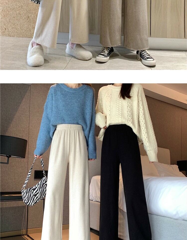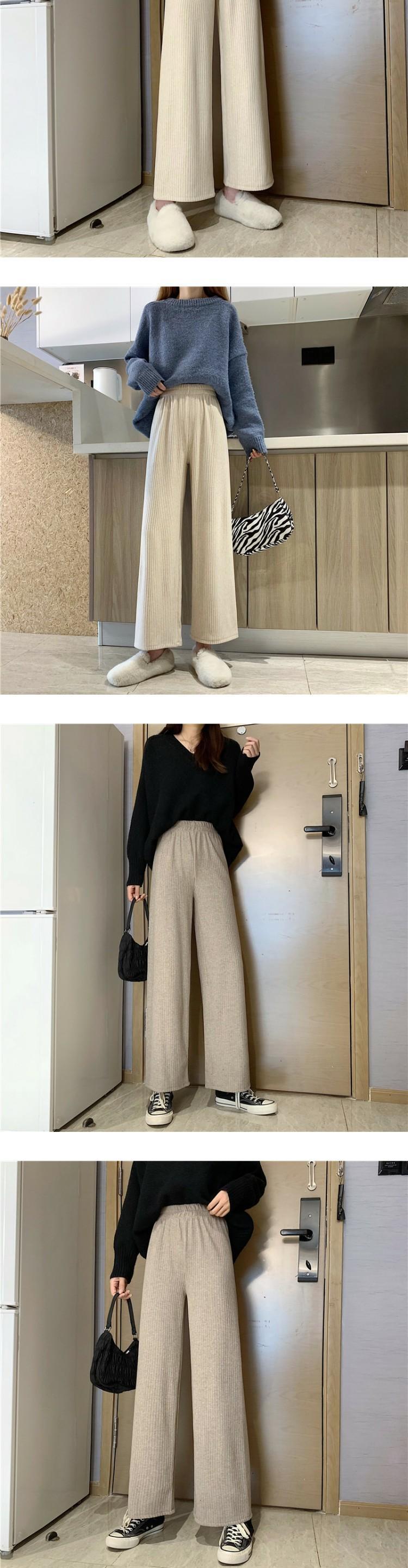 ワイドレッグパンツ スプリングストライプハイウェストウェストルーズカジュアル 春物 ワイドパンツ 萌量不足39406420271