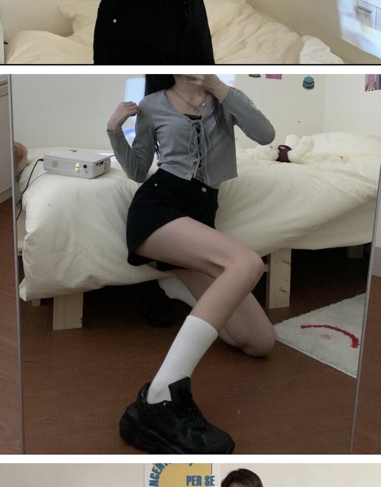 色:グレーのTシャツシングルピース,ブラックベストワンピース,ブラックショーツワンピース