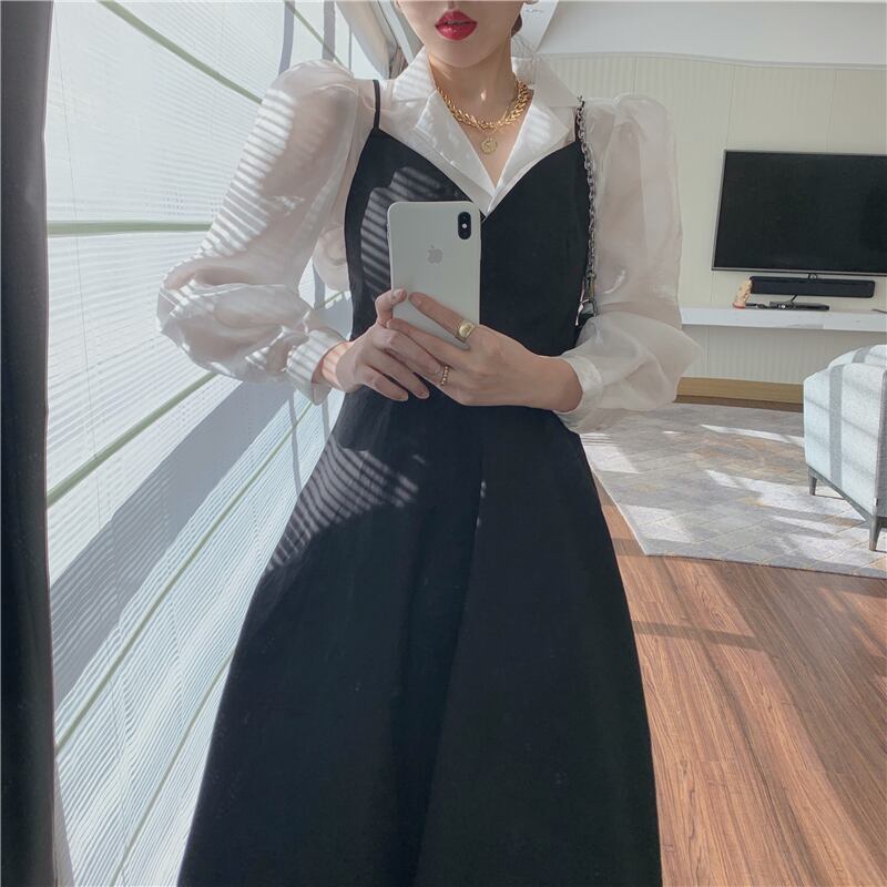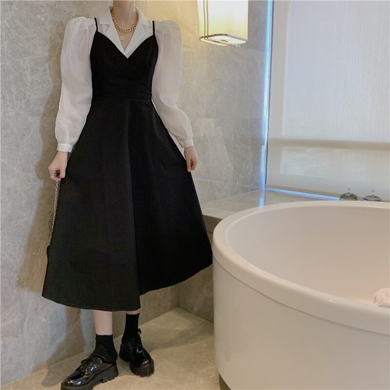 リボンスカート スタイルブラックドレス スプリングウェスト薄手 春物 萌量不足61869203060