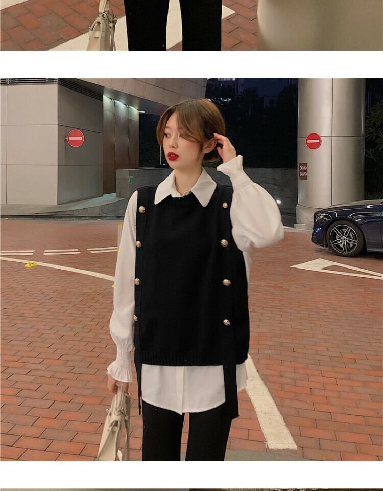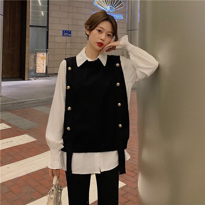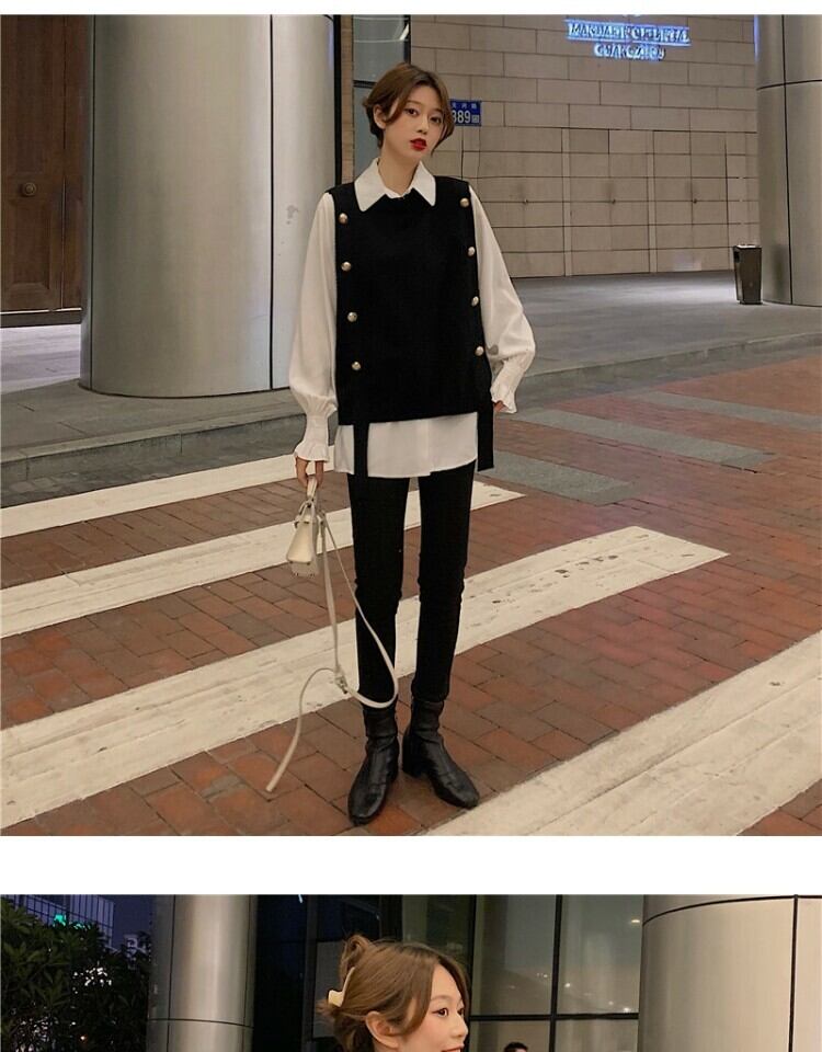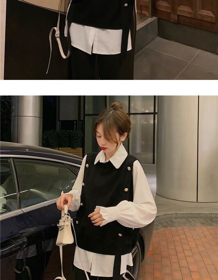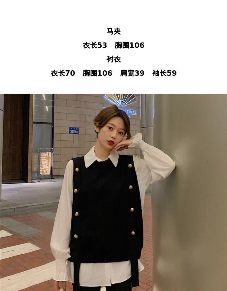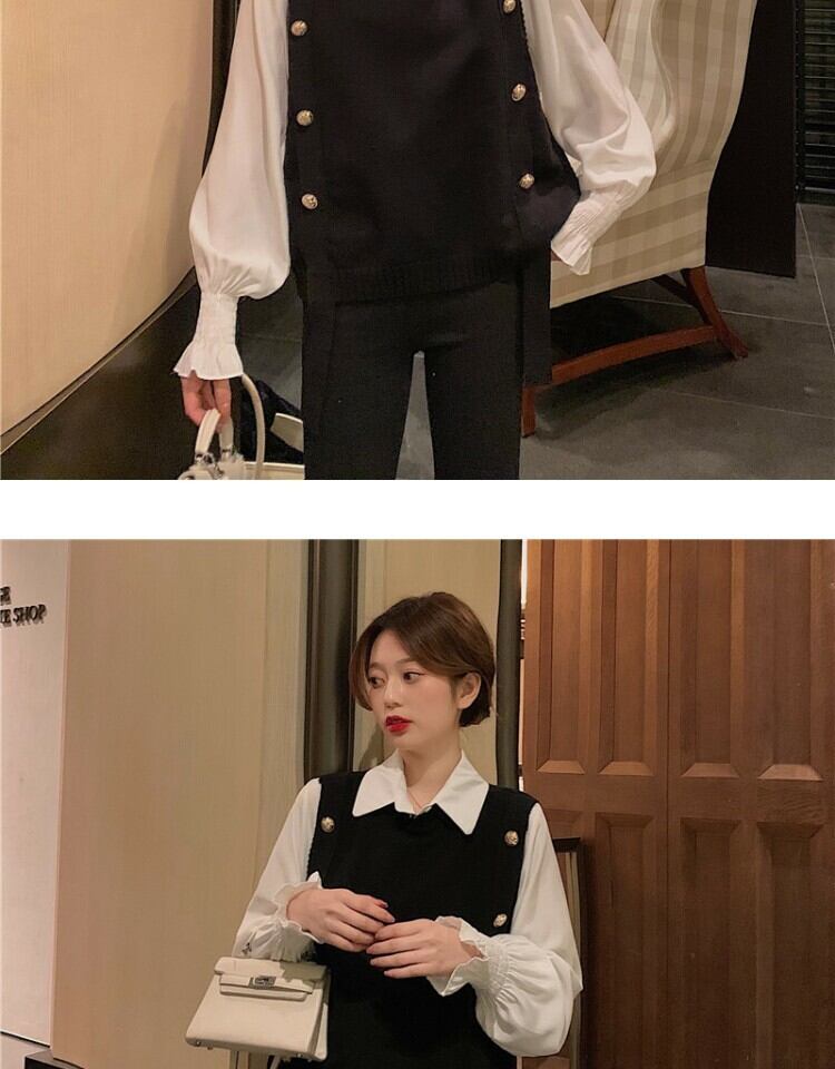 色:白いシャツのワンピース,ブラックベストワンピース,コーヒーカラーベストシングル