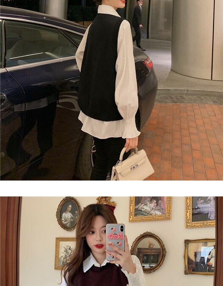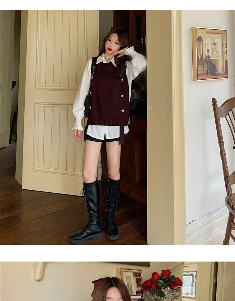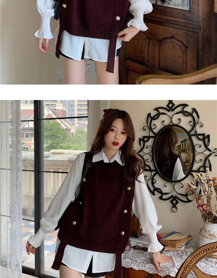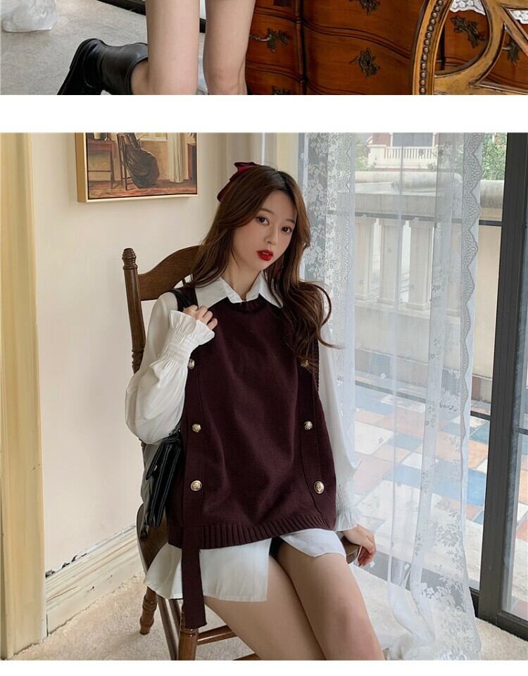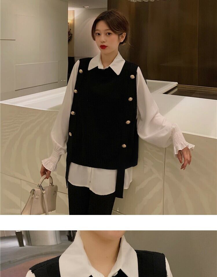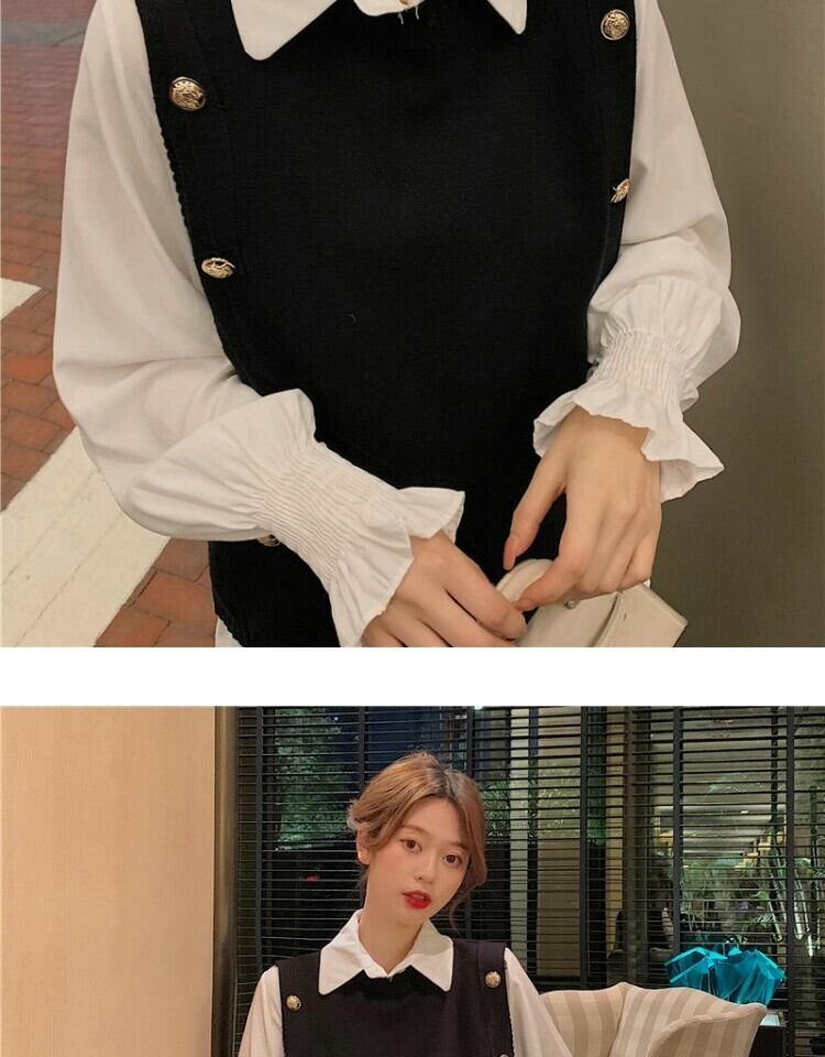 色:白いシャツのワンピース,ブラックベストワンピース,コーヒーカラーベストシングル