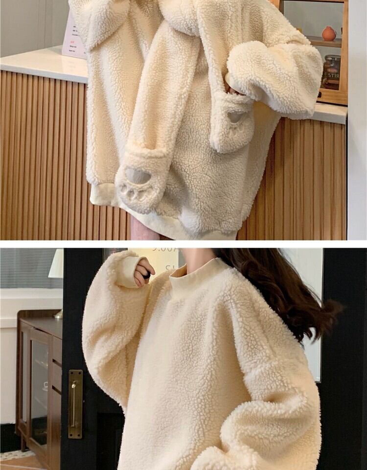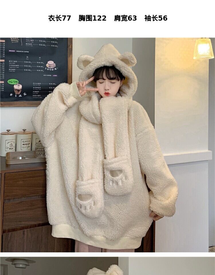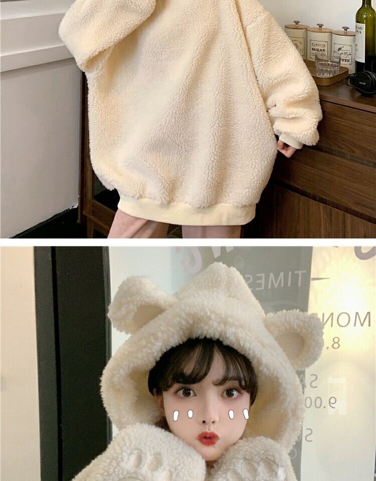 フードセーター レディースオータムウィンターベルベットルーズトップス 大人ガーリー スウィート キュート カジュアル 秋物 冬物 萌量不足97692610940