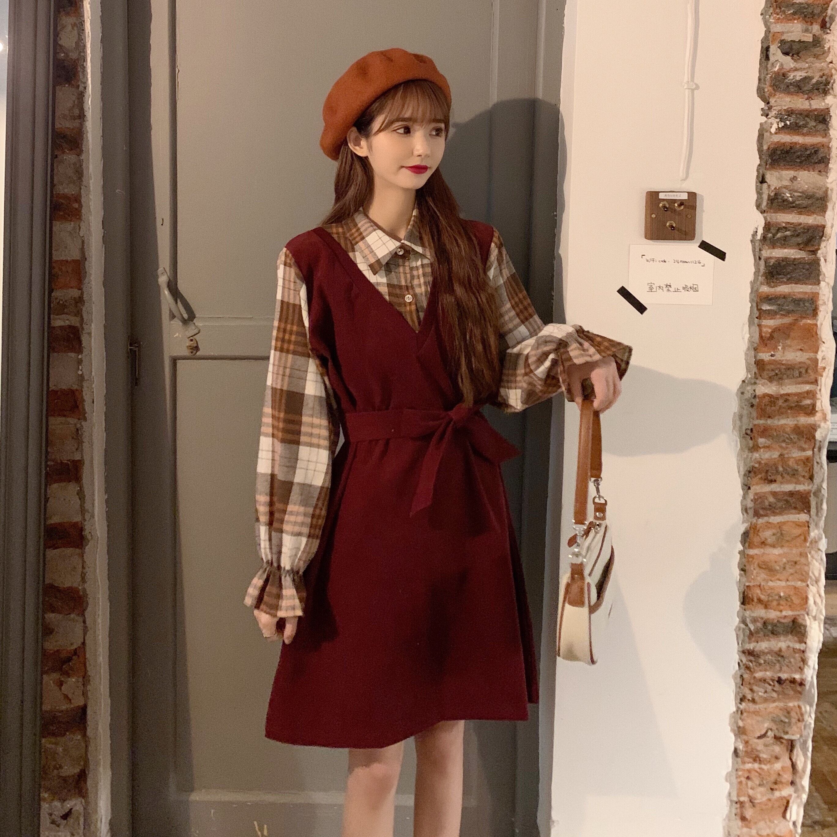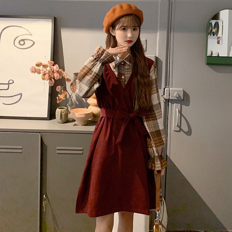 スタンダードスタイルカラースプリングウェストスリムスカート レトロ レース 春物 レースアップ 萌量不足72020142397