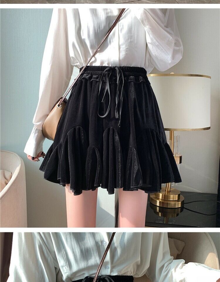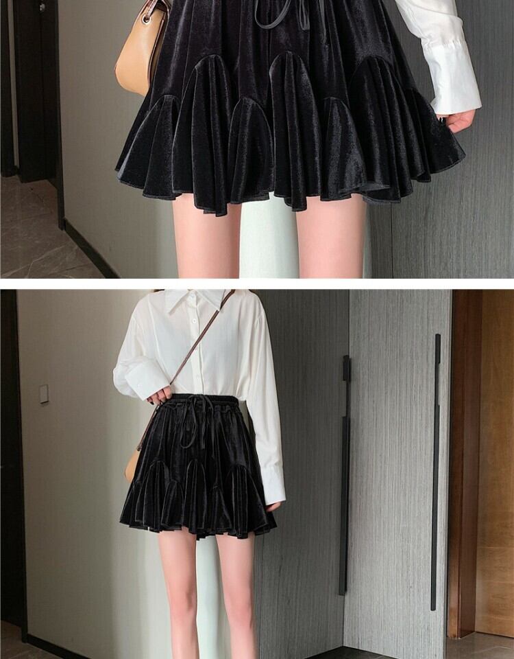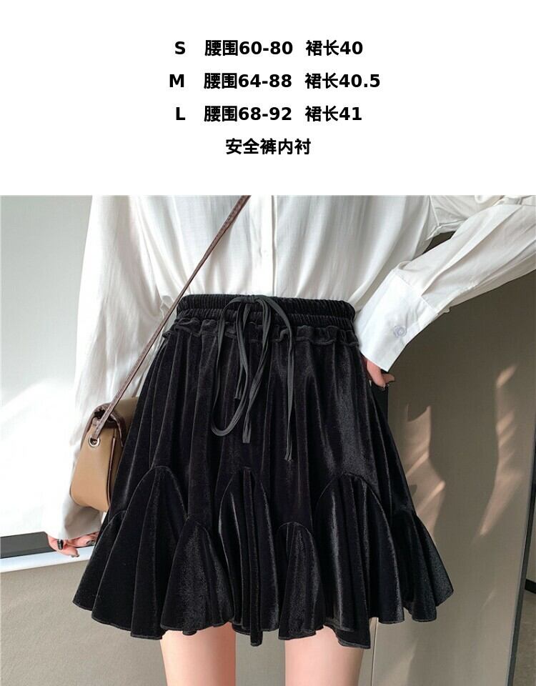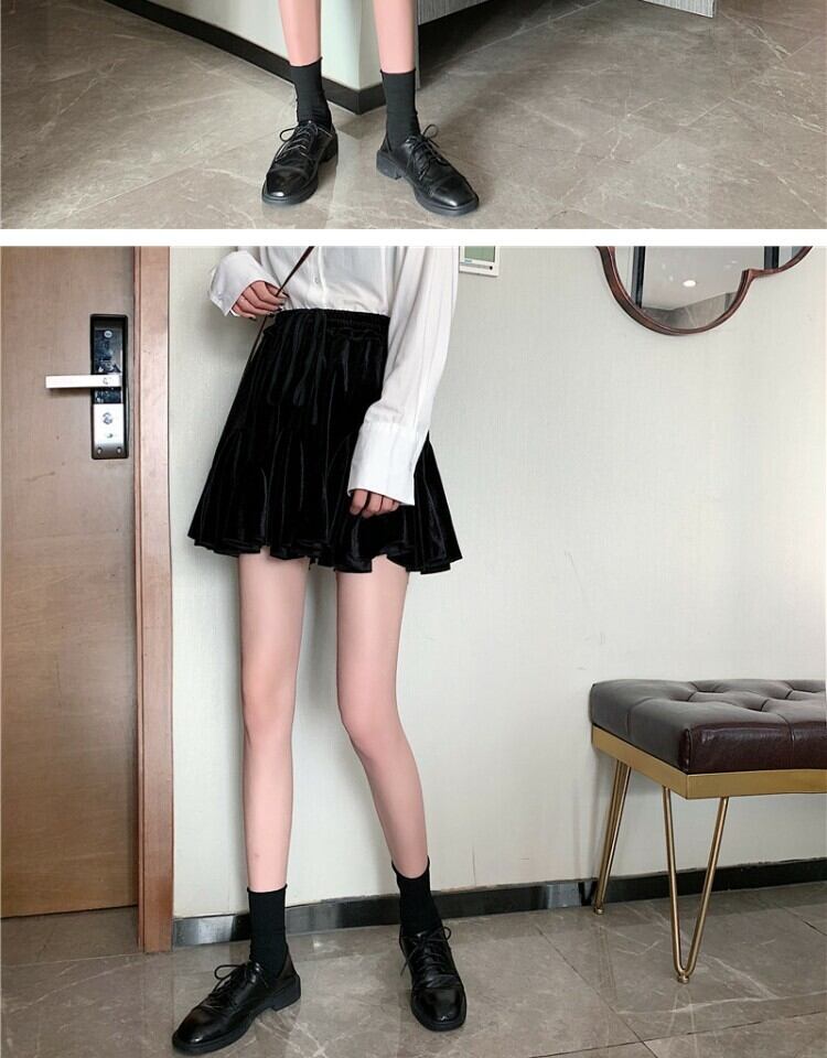 ショートスカート スプリング薄手プリーツAラインブラック 春物 萌量不足80414479830