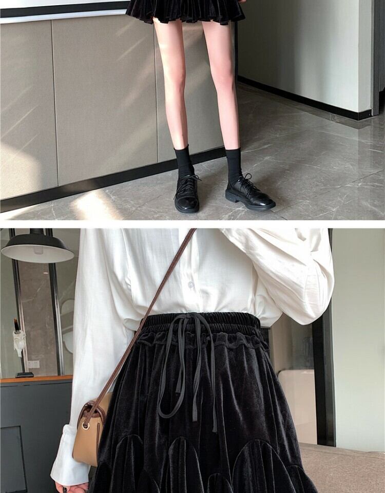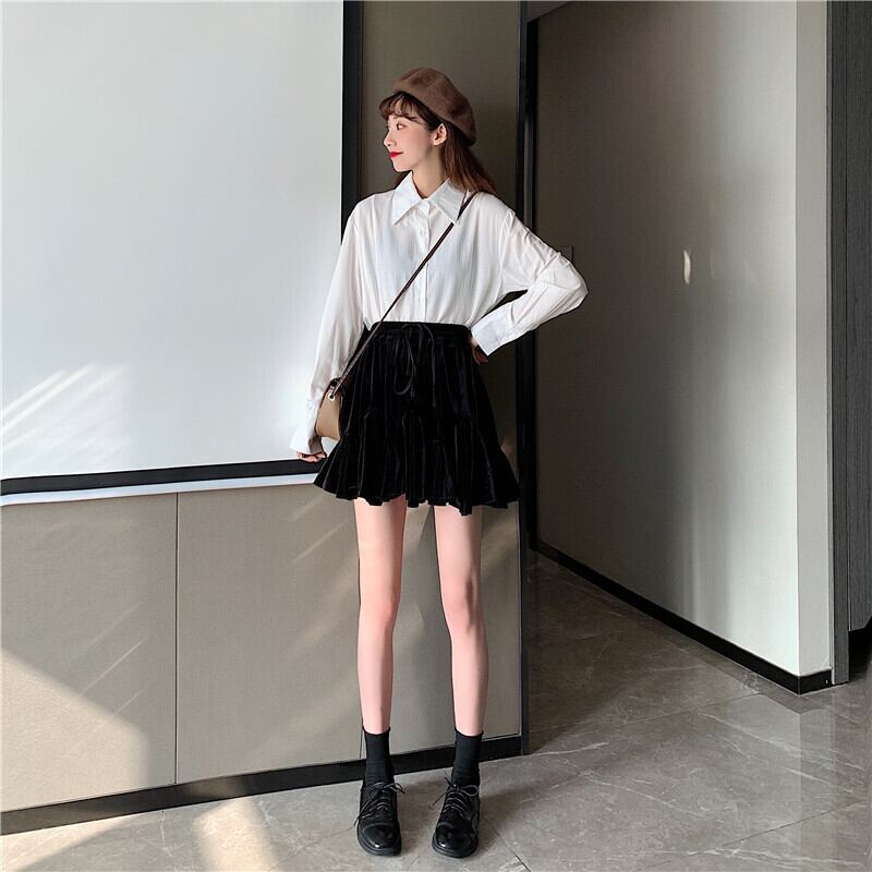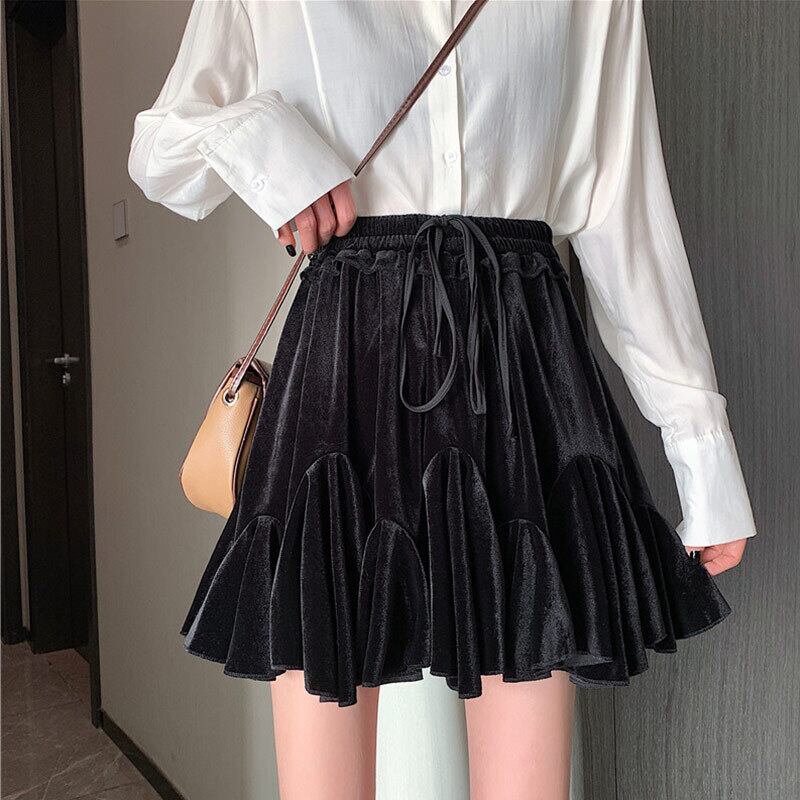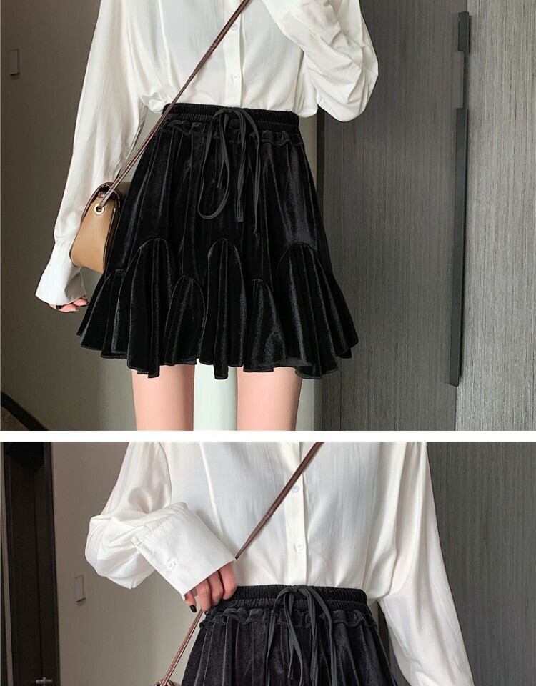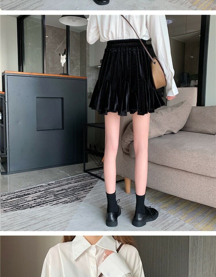 ショートスカート スプリング薄手プリーツAラインブラック 春物 萌量不足80414479830