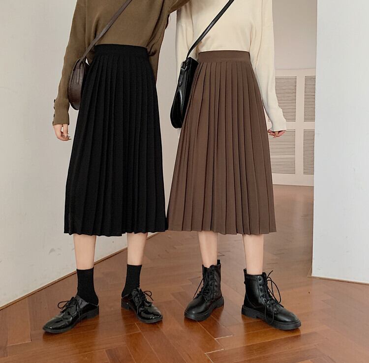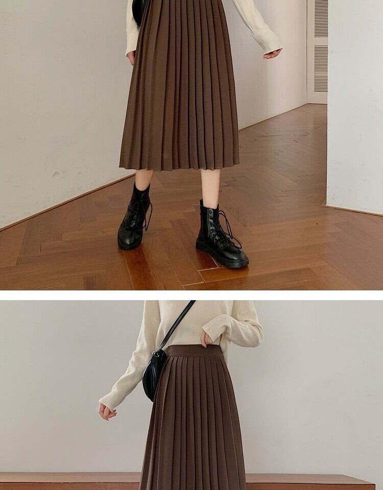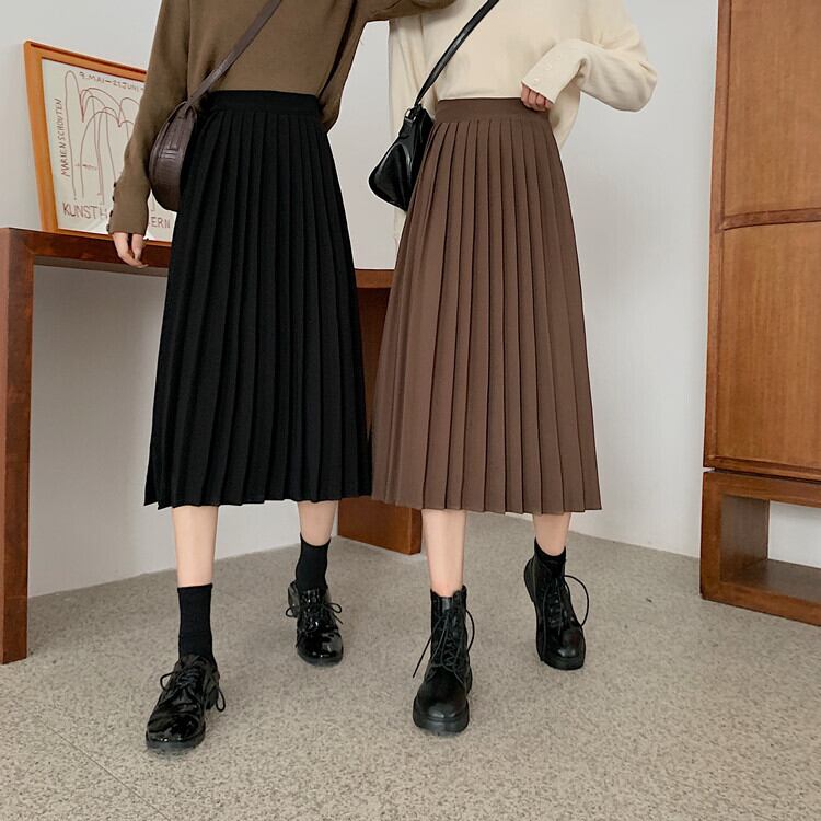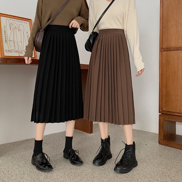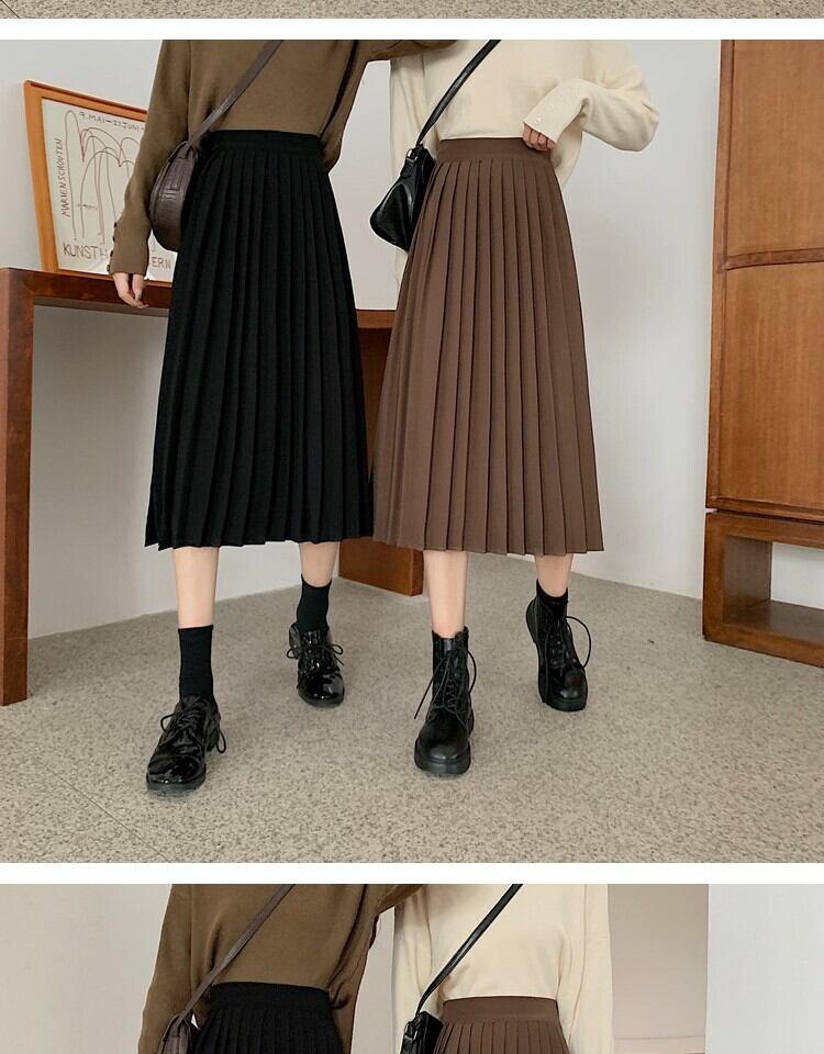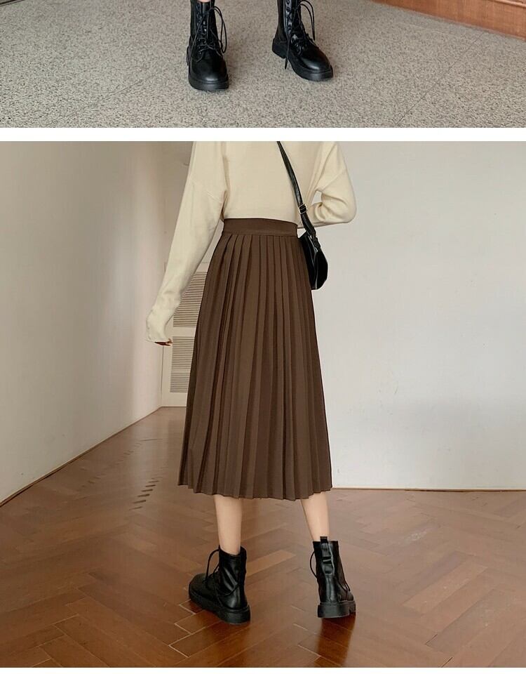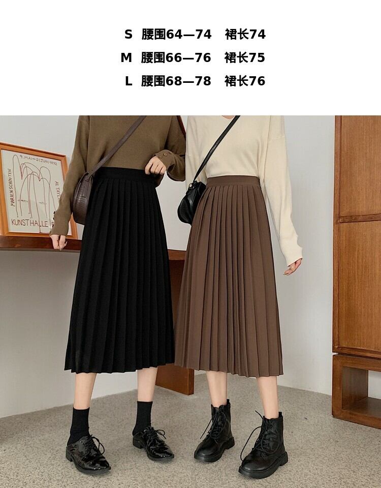 ソリッド カラーハイウェストウェスト薄手プリーツスカート スプリングAライン 春物 ソリッドカラー 萌量不足52378009536