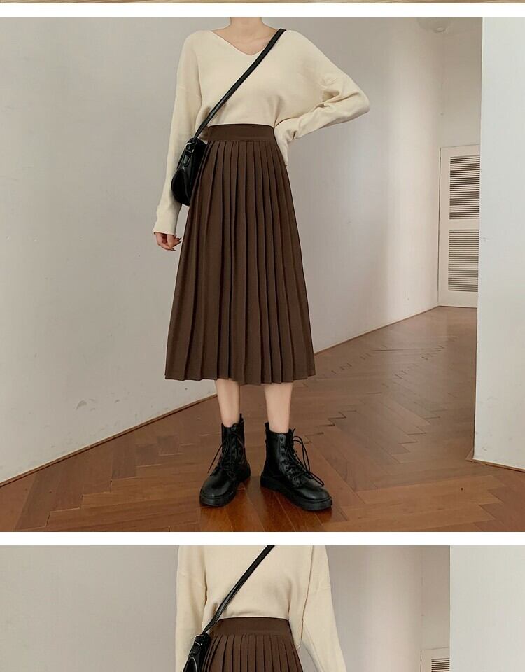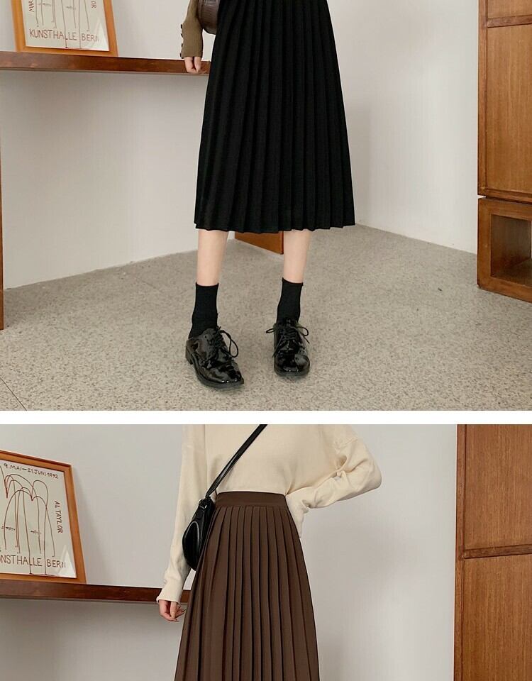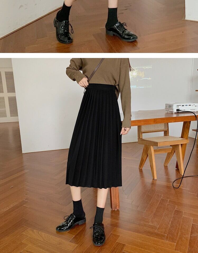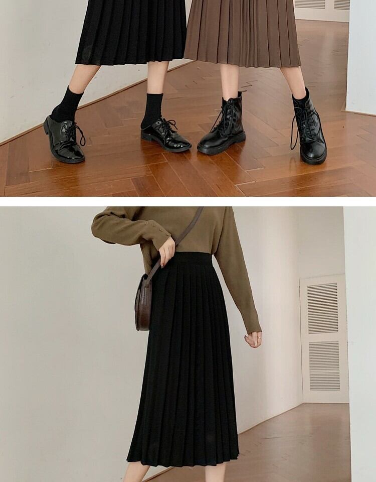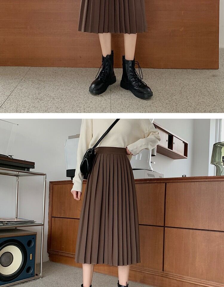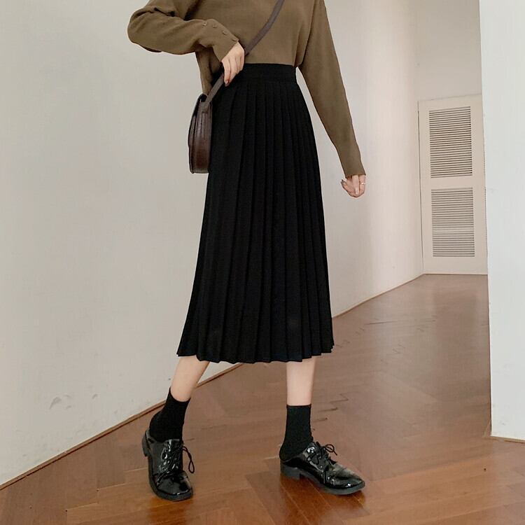 ソリッド カラーハイウェストウェスト薄手プリーツスカート スプリングAライン 春物 ソリッドカラー 萌量不足52378009536