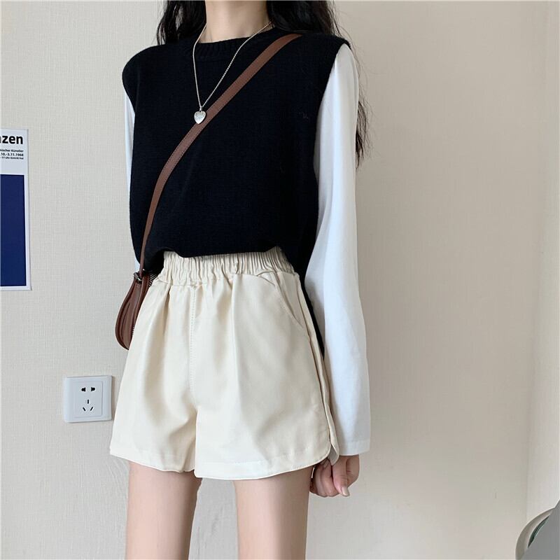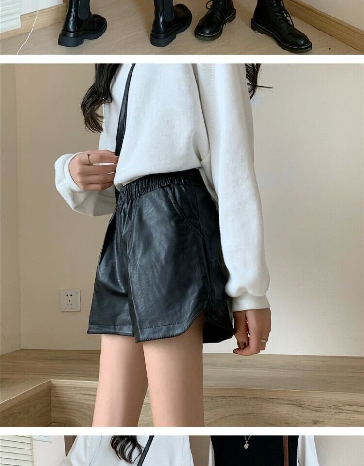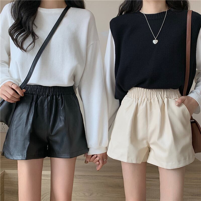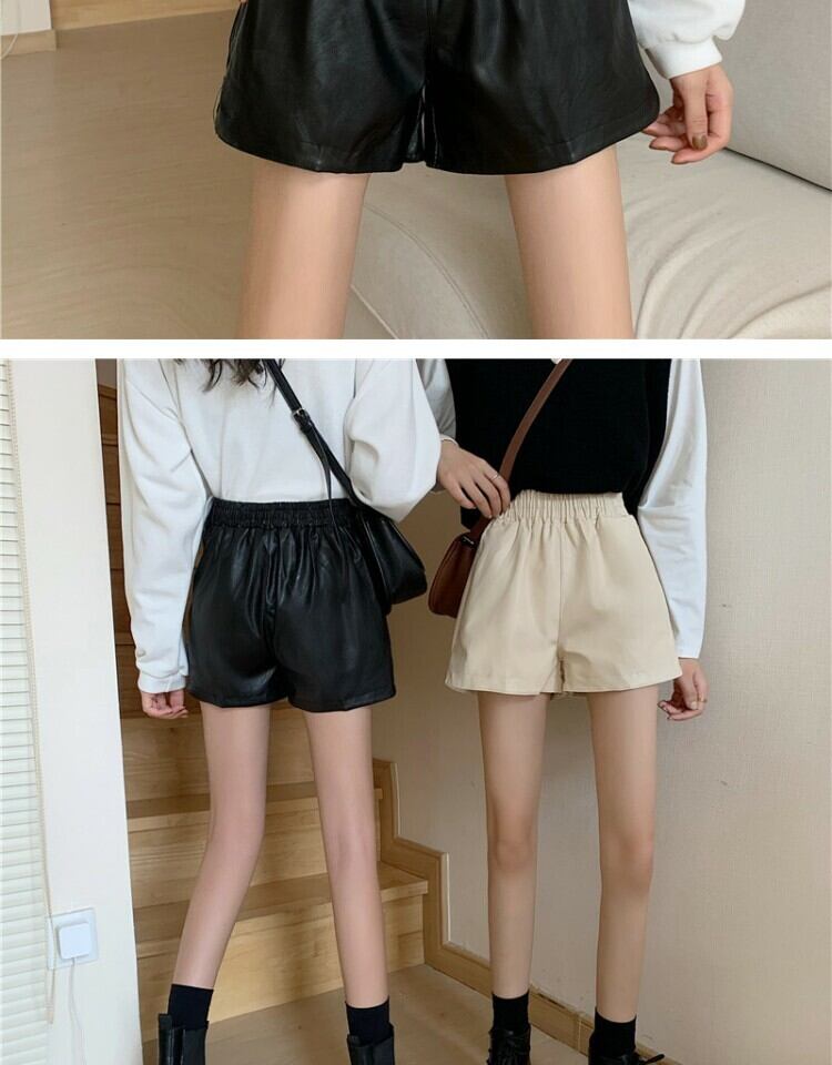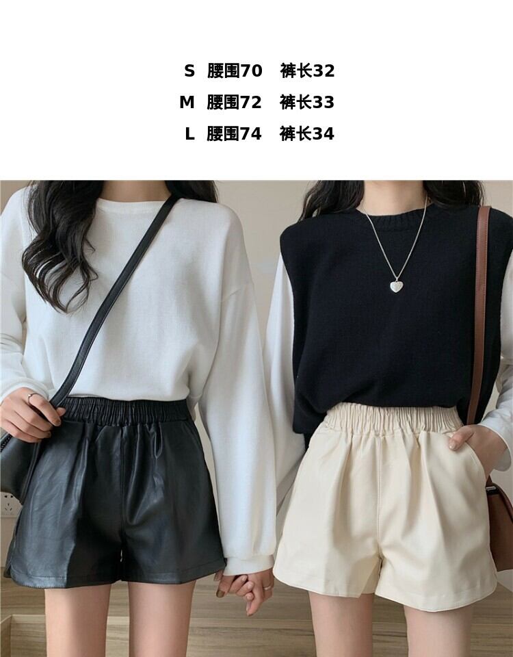 パンツ スプリングソリッド カラーショーツ ストレッチウェスト薄手Aラインレザーカジュアル エラスティック 伸縮 春物 ブルマー ソリッドカラー 萌量不足92643673180