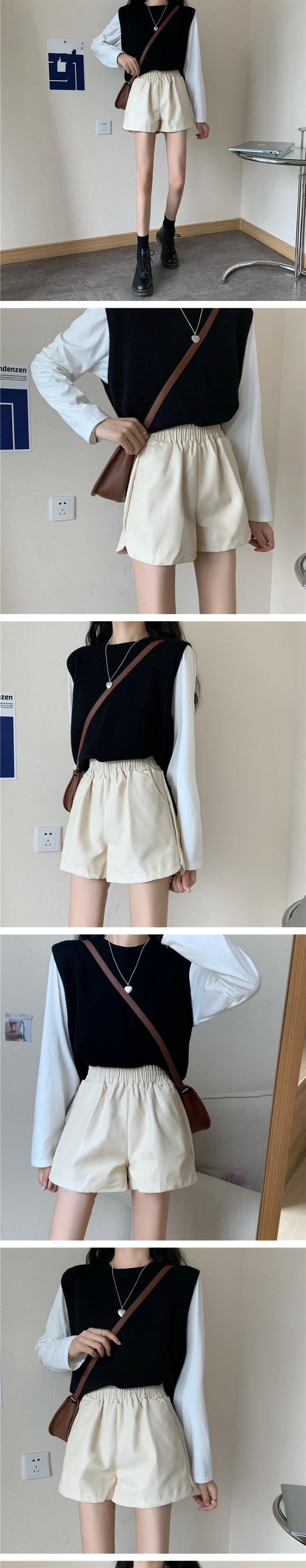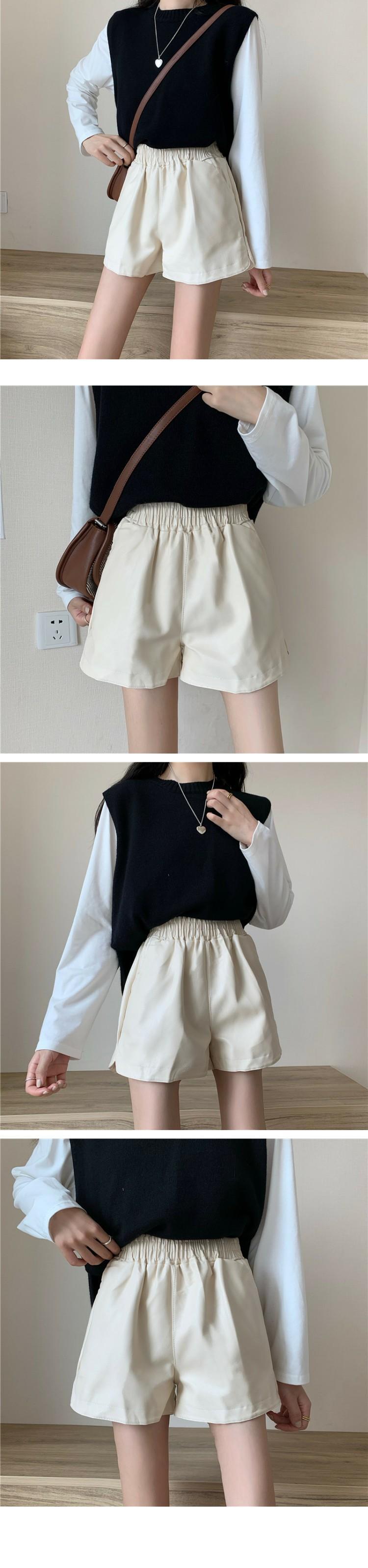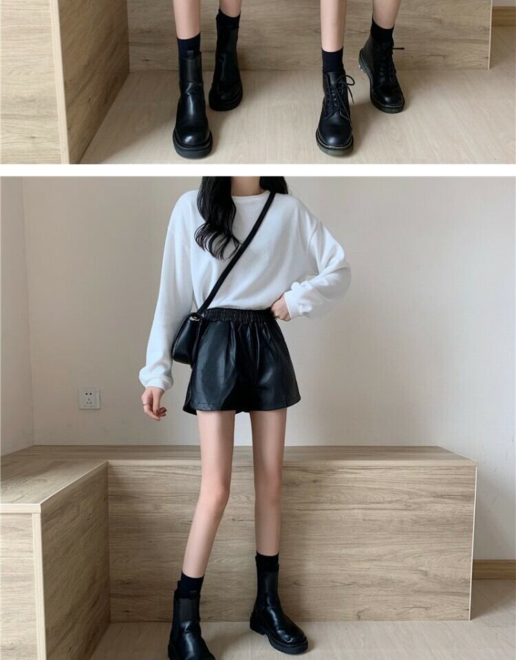 パンツ スプリングソリッド カラーショーツ ストレッチウェスト薄手Aラインレザーカジュアル エラスティック 伸縮 春物 ブルマー ソリッドカラー 萌量不足92643673180
