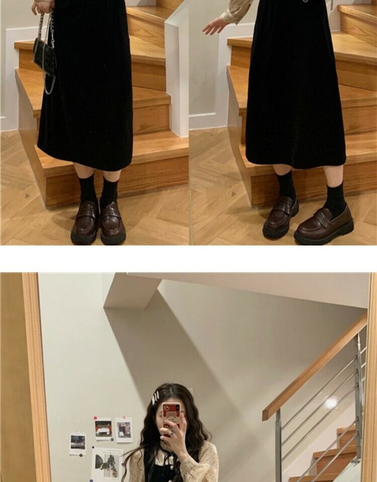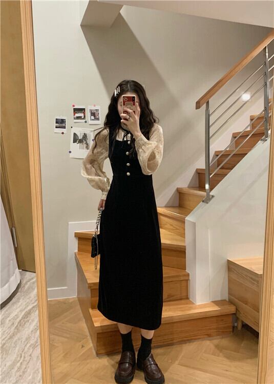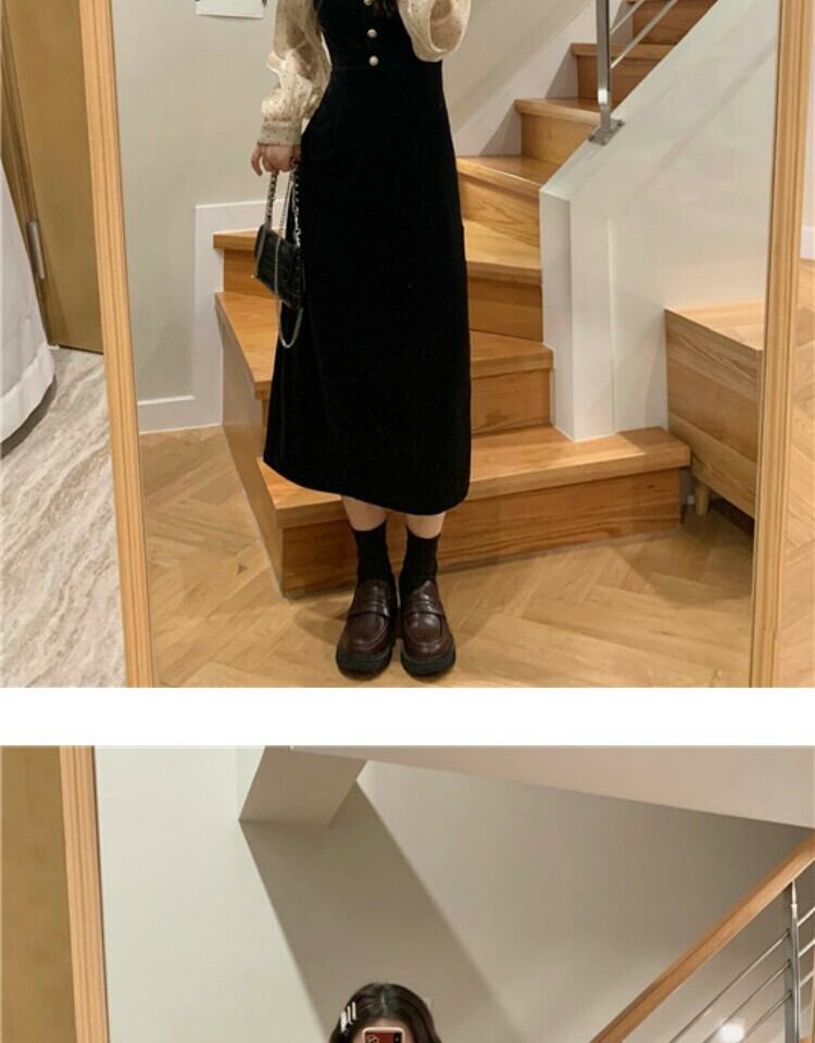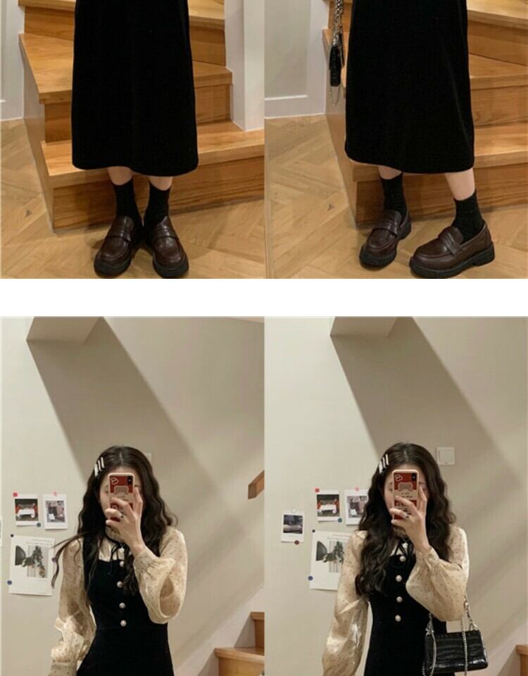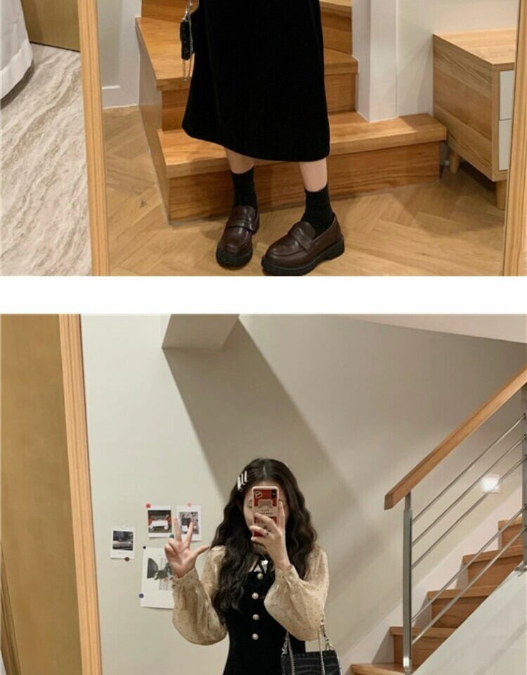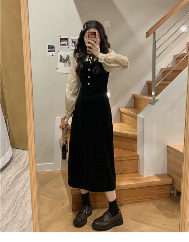 スタンダードスタイルメッシュ水玉スリーブドレス スプリングスカート レトロ 春物 ステッチ 萌量不足54252935213