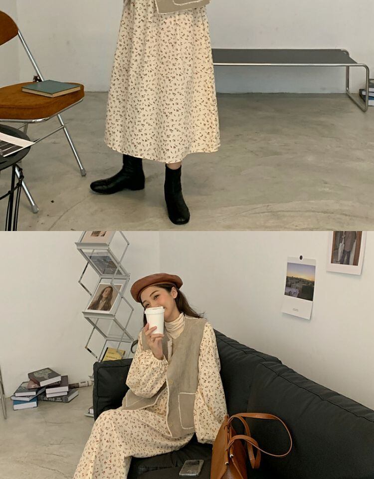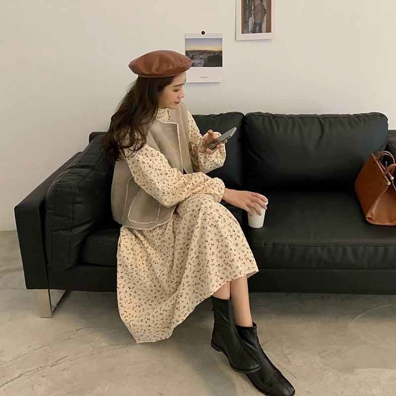 スタンダードスタイルフローラルドレス スプリング薄手スカート ロング レトロ 春物 花柄 萌量不足82766543279