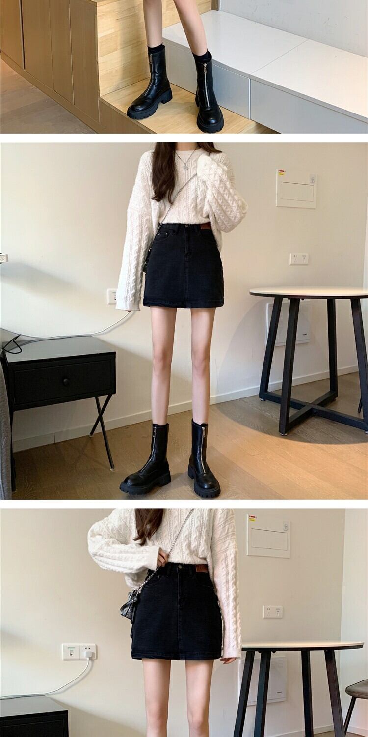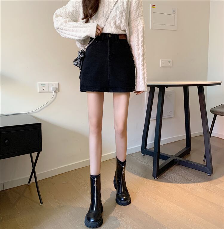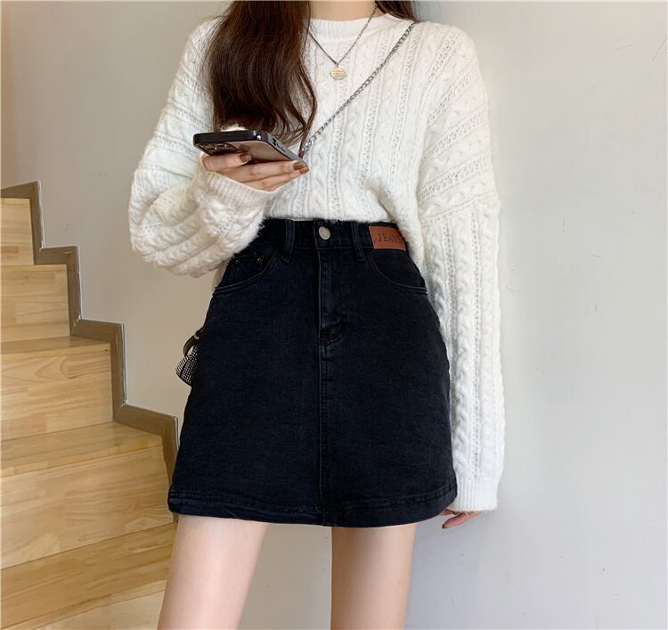 スカート スプリングハイウェストブラックAライン 春物 萌量不足23270351751