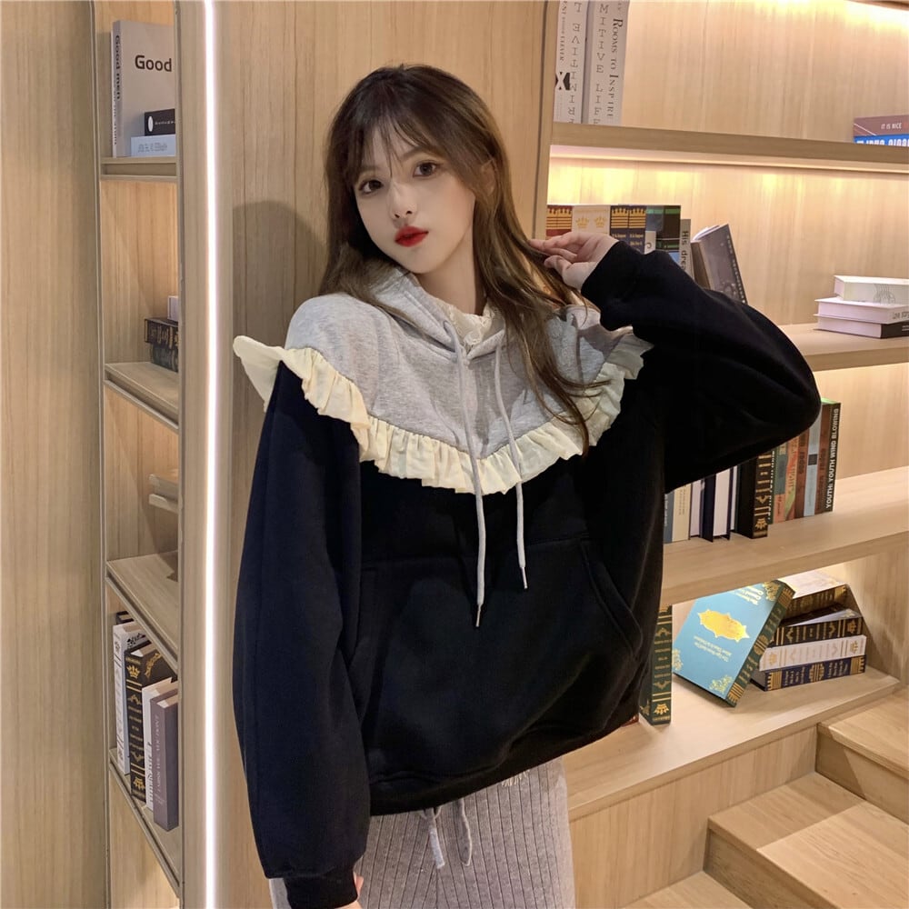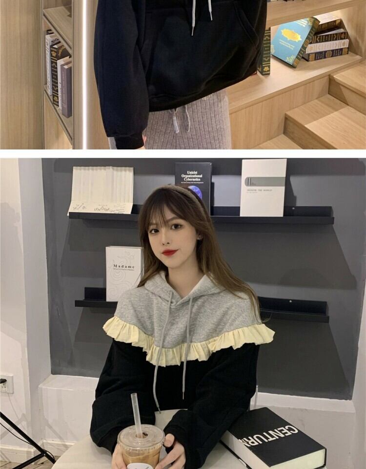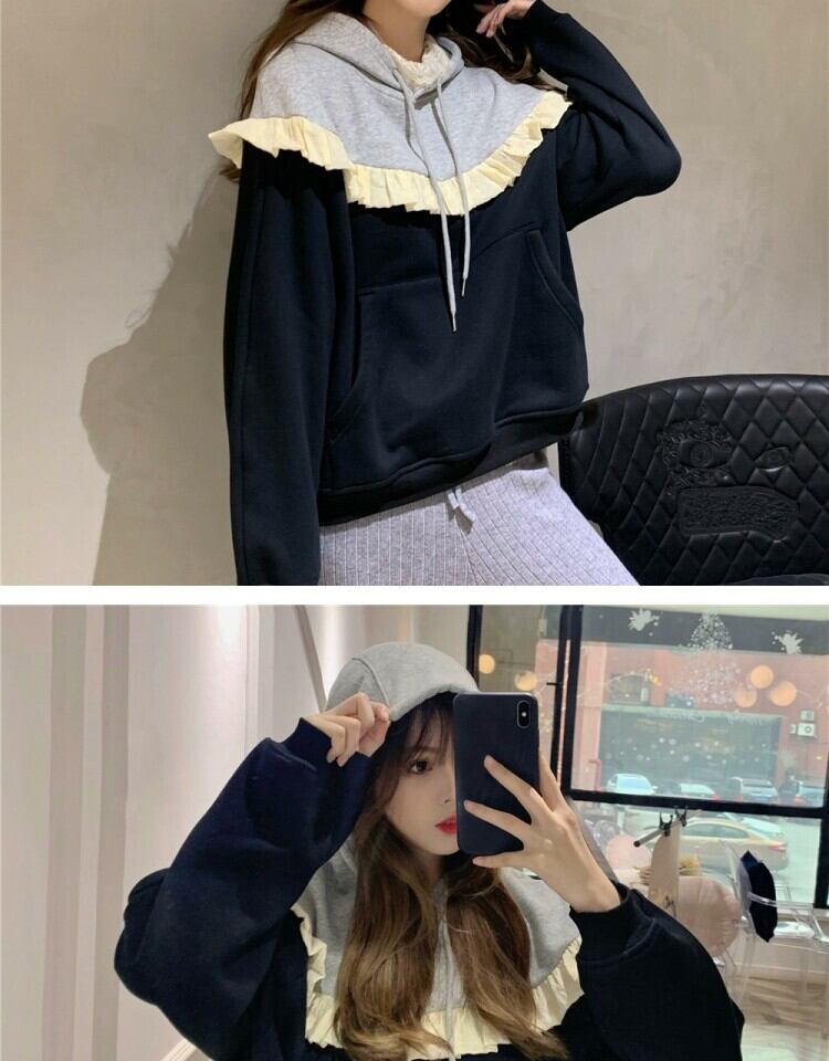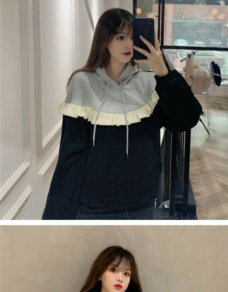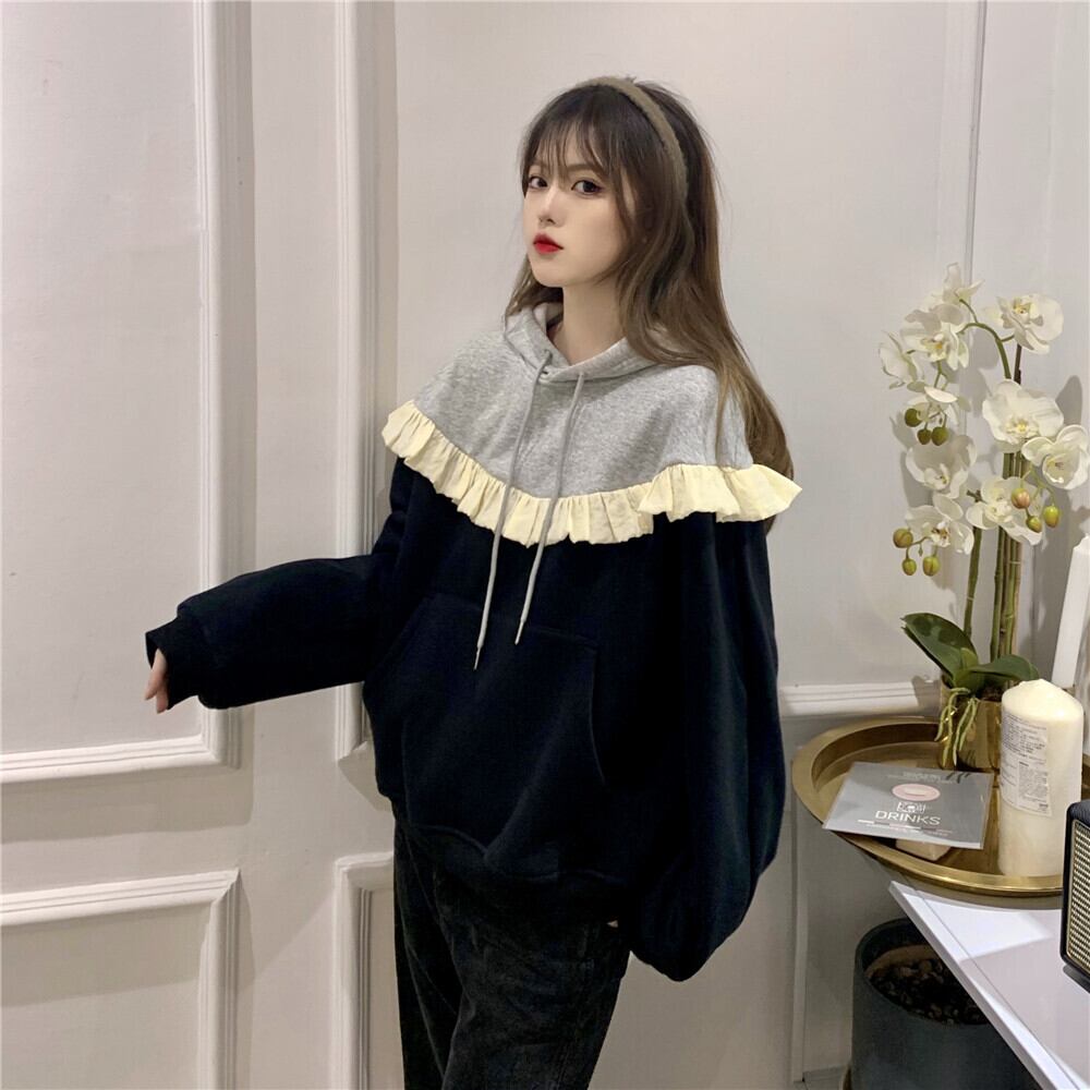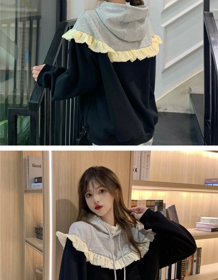 ラッフルカラールーズ薄手セーター オータムウィンタージャケット 秋物 冬物 ステッチ 萌量不足97601888519