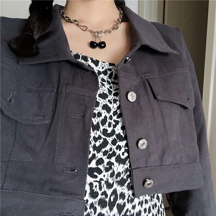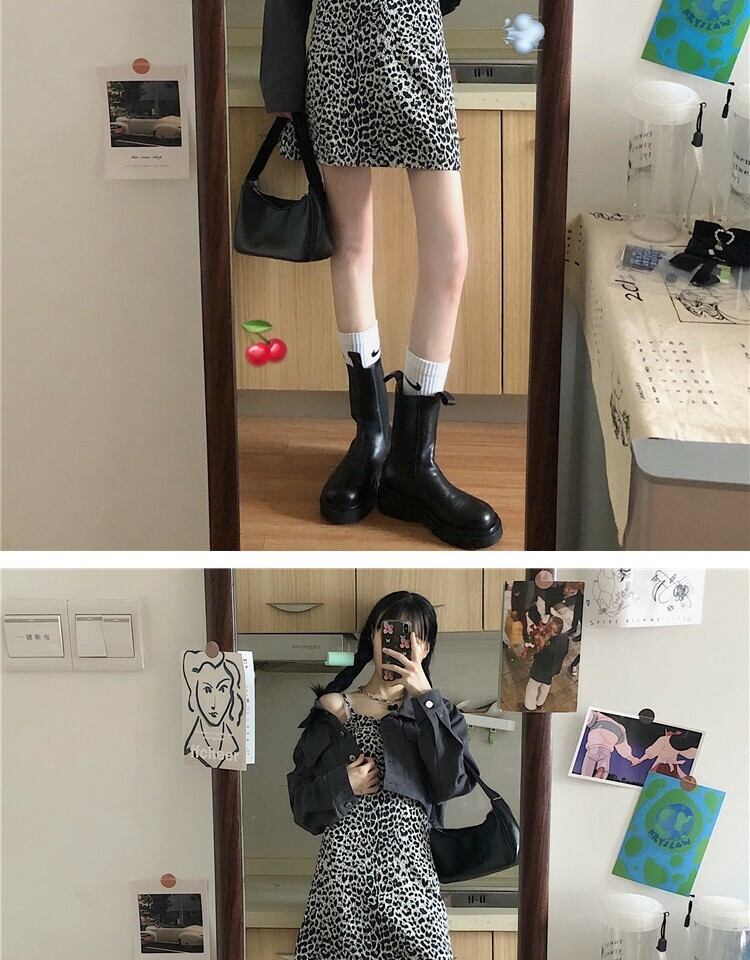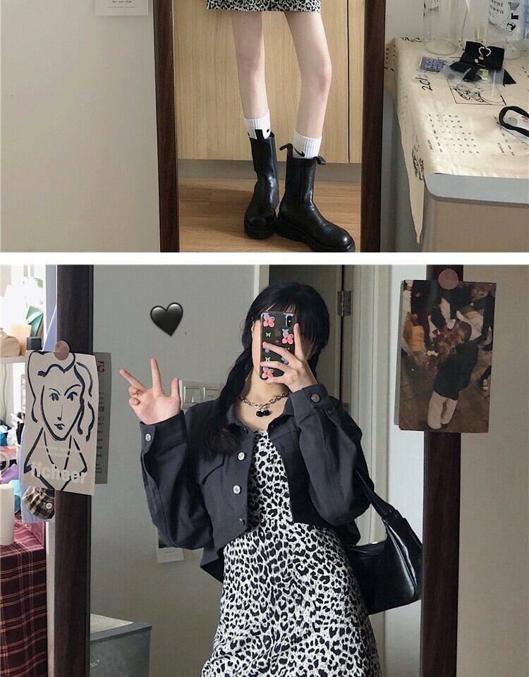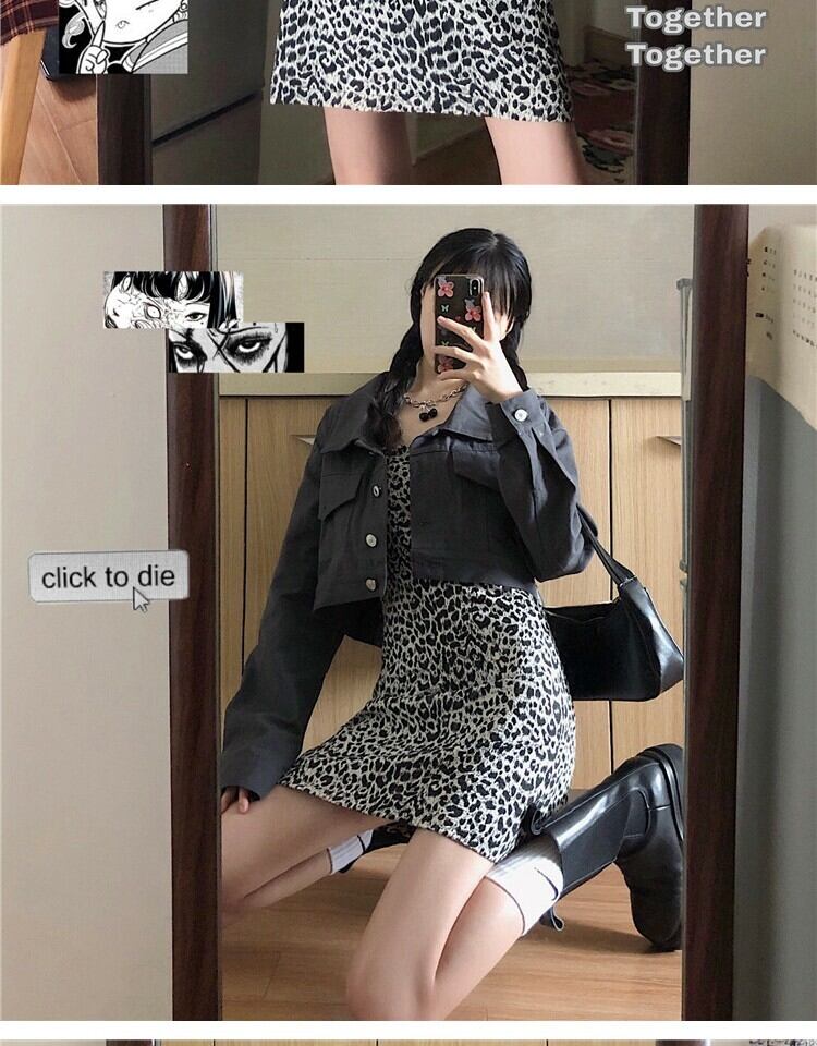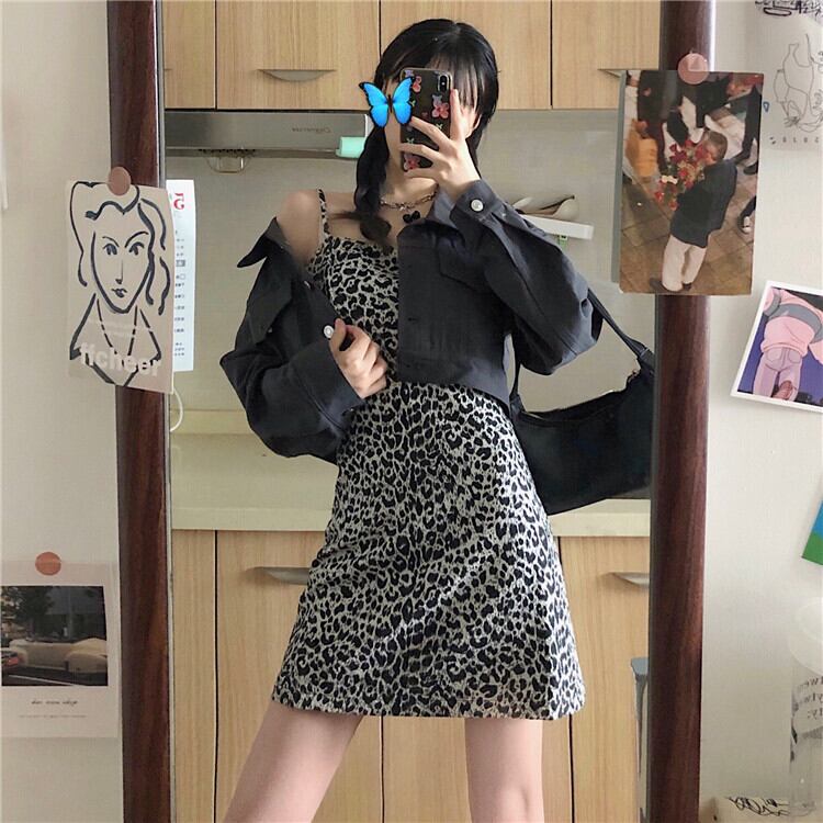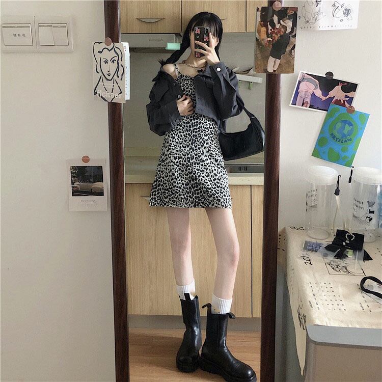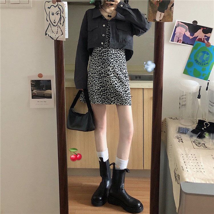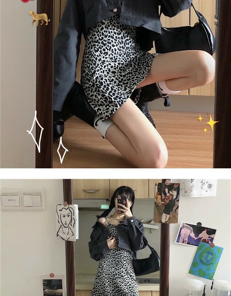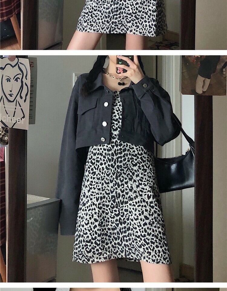 スタンダードスタイルレオパードプリント柄ドレス スプリングウェスト薄手Aラインスカート レトロ 春物 萌量不足66561399083