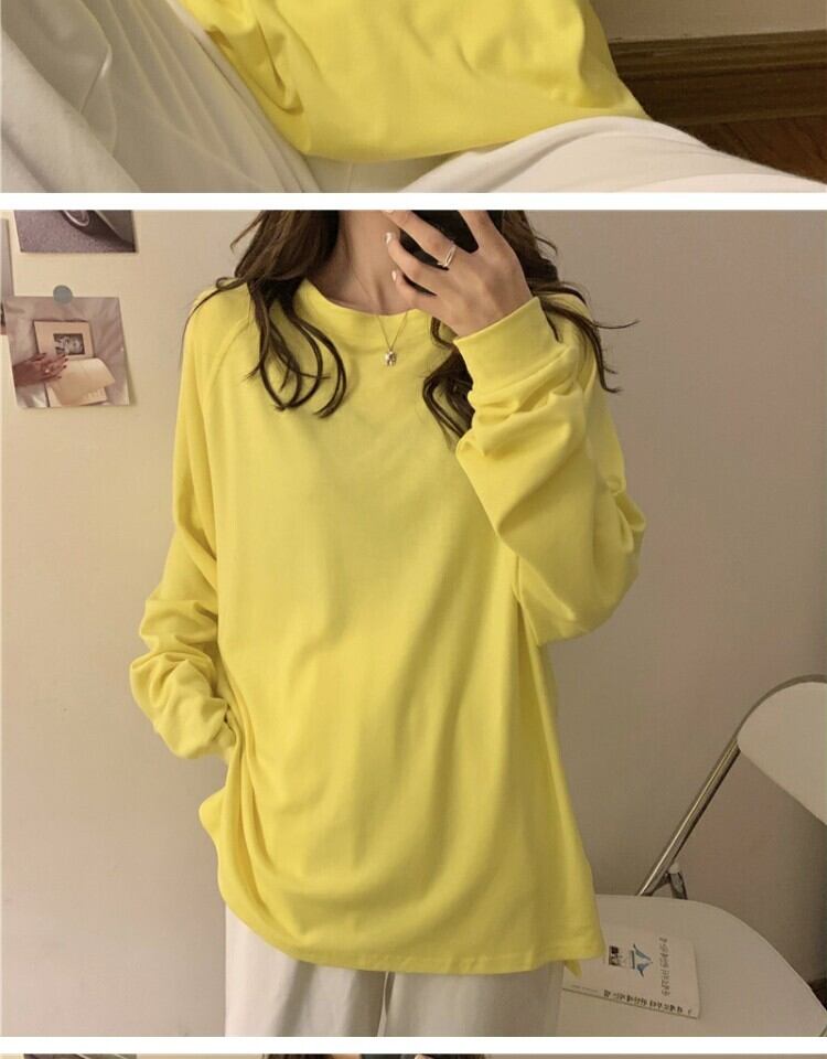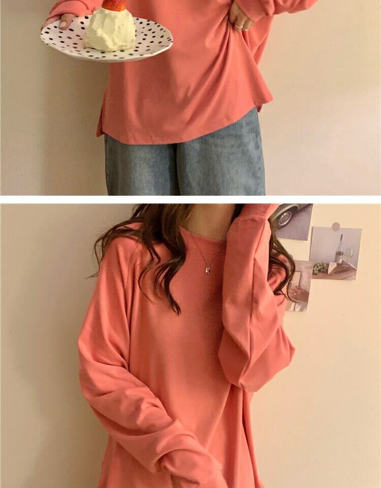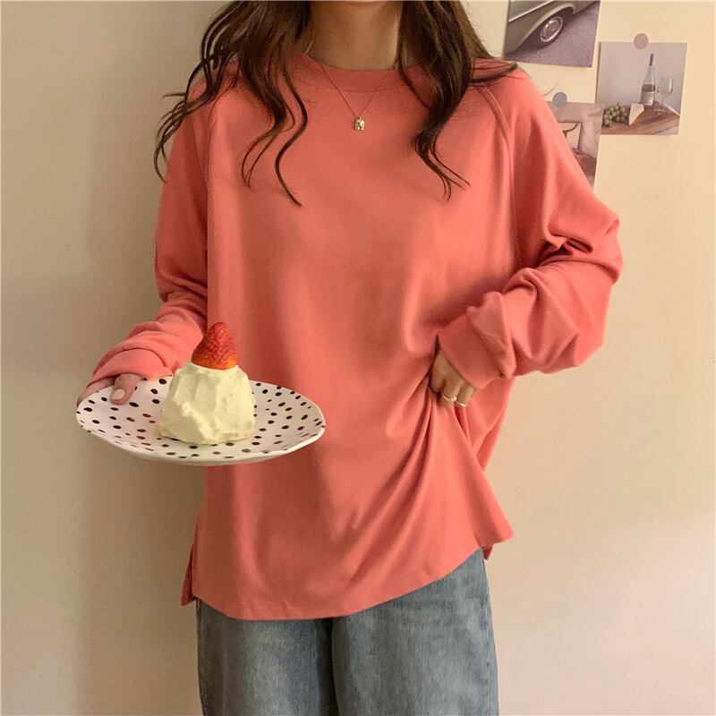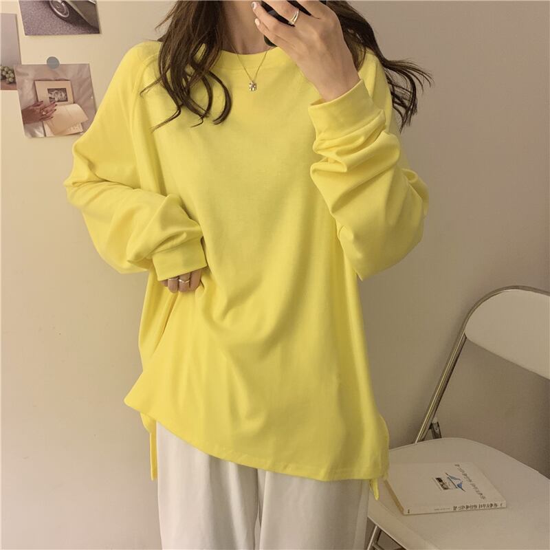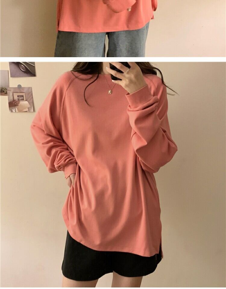 シャツ スプリングルーズ薄手ラウンドネックTシャツ ロング 春物 Oネック 萌量不足13133833181