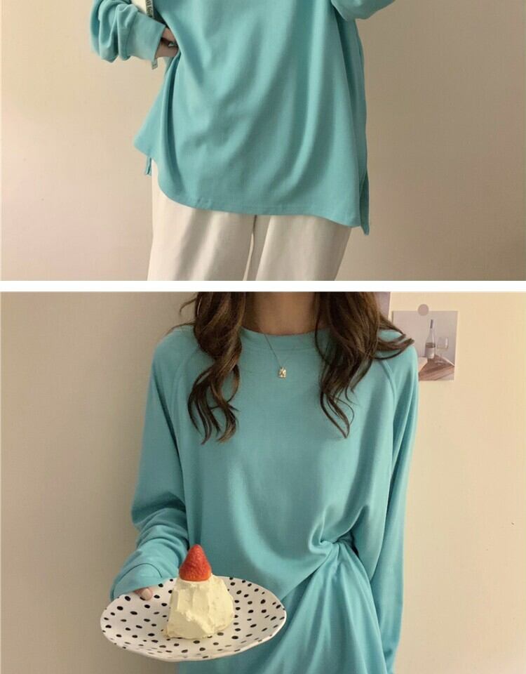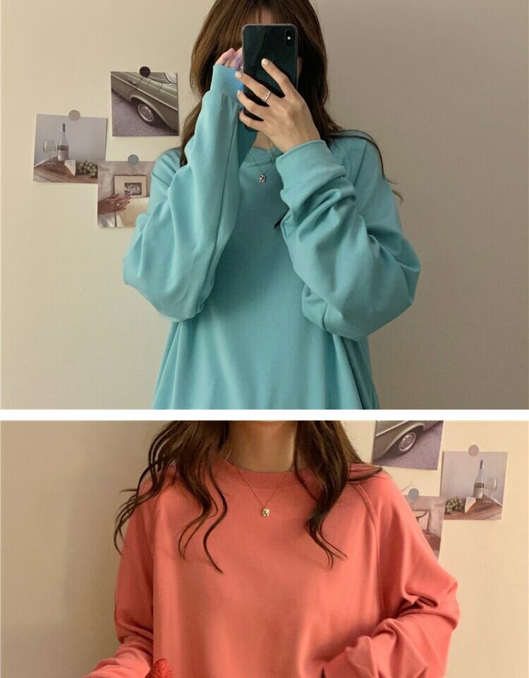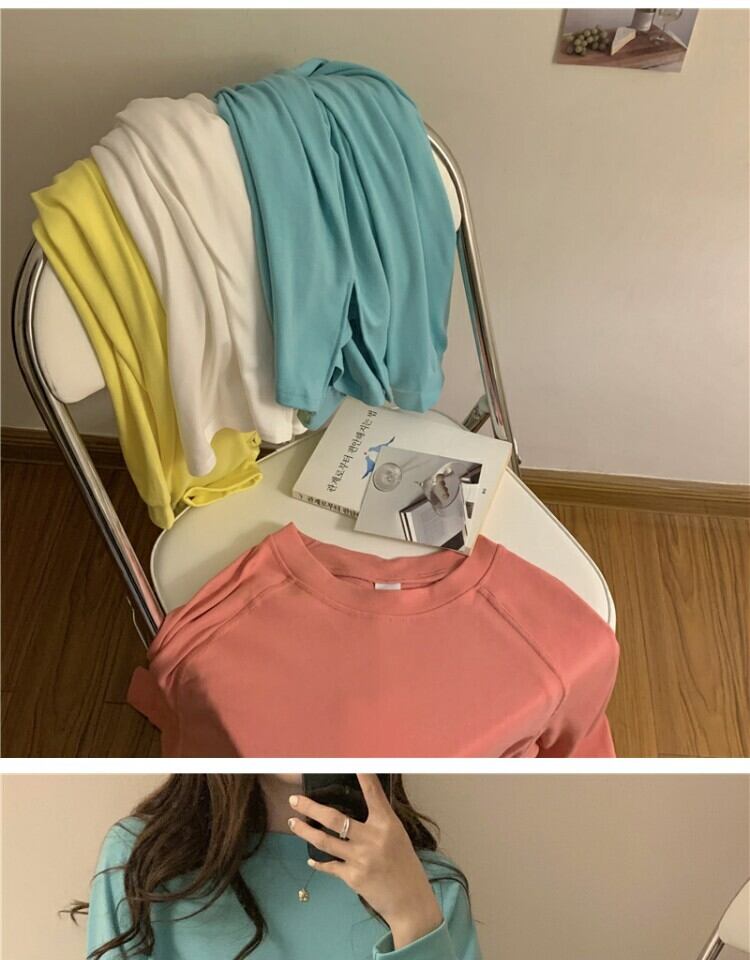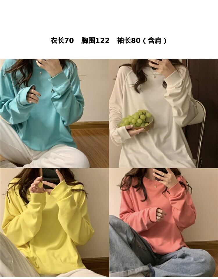 シャツ スプリングルーズ薄手ラウンドネックTシャツ ロング 春物 Oネック 萌量不足13133833181