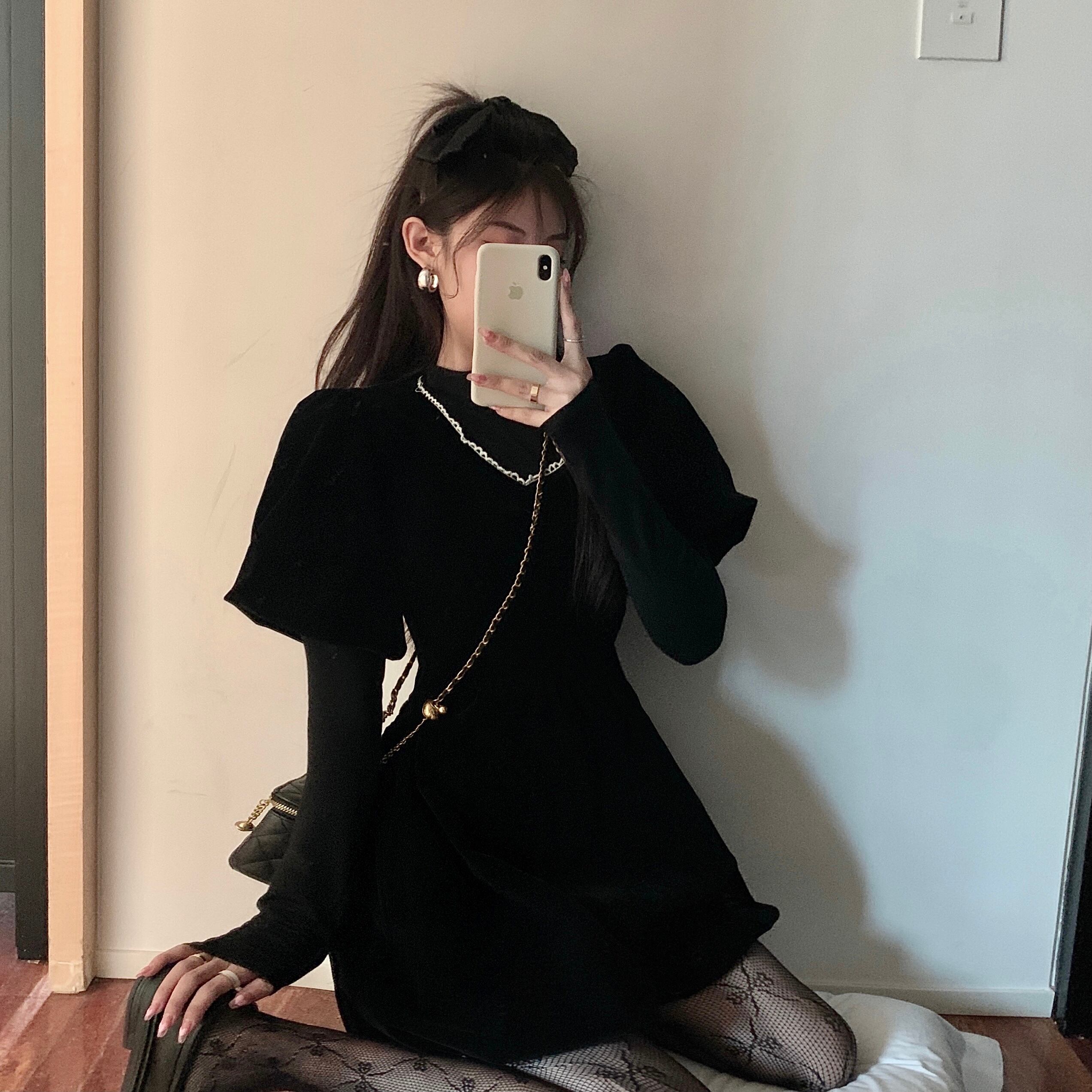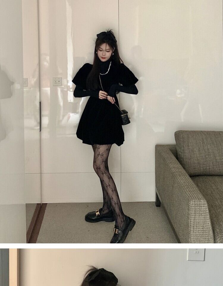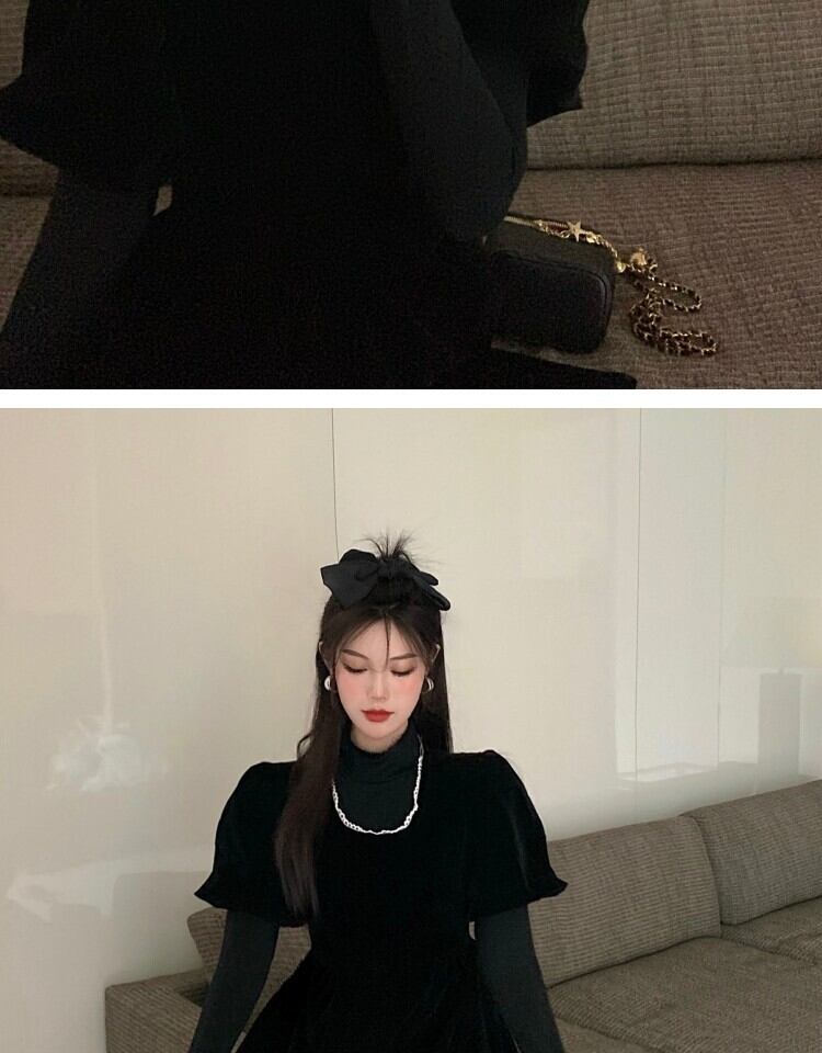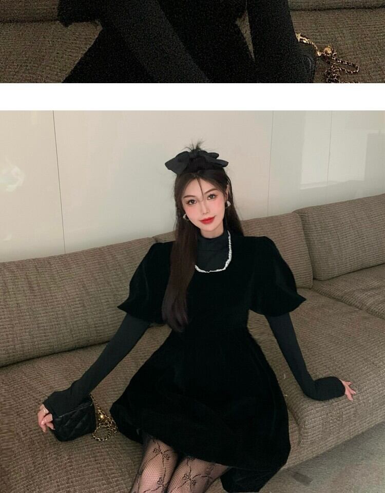 ベルベットドレス スプリングウェストブラックスカート 大人ガーリー スウィート キュート カジュアル 春物 萌量不足28090685957